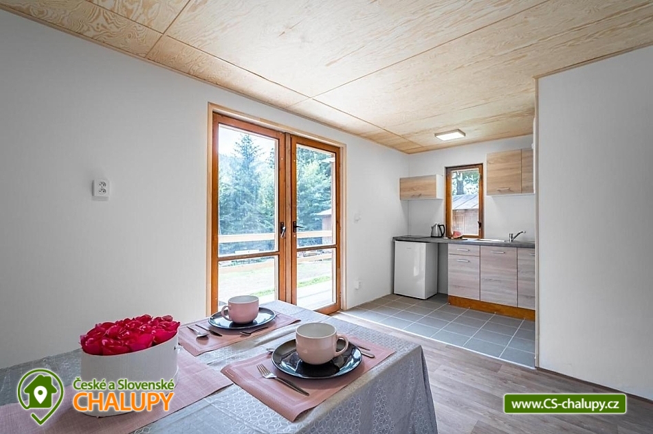 Dvě Chaty v oblasti Chráněné krajinné oblasti Lužické hory v blízkosti NP České Švýcarsko. Pronajímáme 2 samostatné dvoupatrové chaty - každá chata s kapacitou do 7 osob (5 lůžek + 2 přistýlky) zahrnuje: vlastní vybavenou kuchyň (mikrovlnka, varná konvice, nádobí, lednice, varná deska), koupelnu, toaletu, společenskou místnost, ložnici, terasu. Není zde TV, užijete si pohodu a klid v přírodě. Venkovní posezení přímo u chaty. Každá chata má v patře samostatnou ložnici pro 3 osoby (3x jednolůžko 90x200) a spaní nad schody pro 2 - 3 osoby (1x jednolůžko 90x200 a 1x dvoulůžko 140x200), kudy se prochází do ložnice. V obývací místnosti možnost spaní pro 1 osobu (jednolůžko, které slouží jako pohovka). Sociální zařízení: Každá chata má vlastní koupelnu se sprchovým koutem a oddělenou toaletu. Vytápění: Krbová kamna (dřevo je k dispozici pouze pro vytápění chaty) a v případě potřeby elektrické přímotopy. Parkování přímo u chaty. Vedle chat nabízíme ubytování ve vagónu ve dvou samostatných pokojích s vlastním vchodem (každý s vlastní koupelnou wc) a společnou kuchyňkou uprostřed vagónu. Zatím k dispozici pouze jeden pokoj pro 2 osoby + kuchyňka uprostřed, druhý pokoj připravujeme. V okolí: Chřibská přehrada a Adrenalin park Jedlová 2,5 km = OBŘÍ HOUPAČKA: Unikátní adrenalinová specialita. Jedná se o velkou houpačku pro dvě osoby se kterou prožijte volný pád, přetížení i stav beztíže během pár vteřin! Dále na vrcholu Jedlové hory = PŮJČOVNA KOLOBĚŽEK, LANOVÝ PARK. Přímo v obci se nachází rozhledna Jedlová, zřícenina hradu Tolštejn, stříbrná štola, Křížová cesta a další. Jsme jen kousek od NP České Švýcarsko (Pravčická brána, lodičky Hřensko a spousty zajímavých a turisticky atraktivních míst). Těšíme se na Vás u nás.