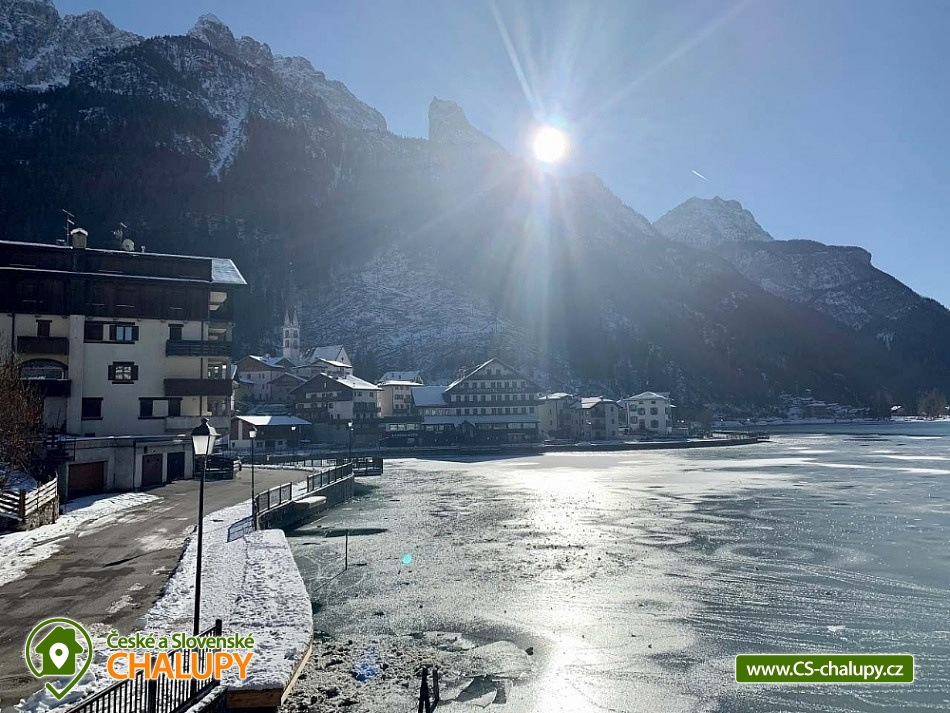 Itálie - Exkluzivní apartmán v Dolomitech s dechberoucím výhledem na impozantní stěnu Monte Civetta sahající do výšky 3220 m. n. m. se nachází v Itálii v malebném městečku Alleghe ležícího u blankytného jezera v jižní části Dolomit. Městečko je vstupní branou do lyžařského areálu Ski Civetta nabízejícího 80 km širokých sjezdovek s úchvatnými výhledy i na masiv Monte Pelmo. Prostřední stanice lanovky vedoucí do lyžařského areálu Civetta je od apartmánu vzdálena 1,2 km. Apartmán Dolomiti poskytuje ubytování pro 6 osob ve 2 ložnicích, celkem je k dispozici 2x dvoulůžková postel a na zvýšeném patře jsou 2 nové matrace sloužící jako přistýlky. Luxusní apartmán v nedávno postaveném domě nabízí na ploše 80 m² obývací pokoj s krbem, TV a pohodlnými sedačkami. Součástí obývacího pokoje je jídelní zóna s nadstandardně vybavenou moderní kuchyňskou linkou (horkovzdušná trouba, gril, pákový kávovar a rychlovarná konvice) a velkým jídelním stolem. Nová TV umožňuje připojení na Netflix (zatím přes vlastní data, brzy bude zprovozněna Wi - Fi). Sociální zařízení zahrnuje 2 koupelny se sprchou a vanou, s WC a bidetem. K dispozici je fén. Na balkónové terase s posezením se můžete kochat z bezprostřední blízkosti Soví horou (Monte Civetta) a výhledem na jezero Alleghe. Parkovat lze přímo u objektu. V okolí apartmánu možnost turistiky, cykloturistiky, koupání, rybaření a lyžování. V Alleghe a okolí se nachází několik volně přístupných dětských hřišť. Blízký lyžařský areál Ski Civetta je impozantní díky kulisám ohromného masivu Monte Civetta a z druhé strany tyčícímu se Monte Pelmo, trůnu bohů. Sjezdovky v přívětivém modro - červeném rytmu obtékají okolní dvoutisícové pahorky ze všech stran a propojují se do rozlehlé výletní sítě. Hlavní tahy jsou obsloužené zpravidla expresními sedačkovými lanovkami nebo kabinkami. Na severozápadě se špičatí vrchol Marmolady (autem za 22 min), kde díky ledovci je lyžování možné do pozdního jara. Areál Arabba (35 min. autem) je již součástí Sella Rondy čítající 400 km sjezdovek a další areál San Pelegrino zvedající se nad Falcade je v dojezdové vzdálenost 25 min. Všechny okolní lyžařské areály jsou zahrnuty ve skipasu Dolomiti Superski. V městečku Alleghe lze vyrazit na bruslení do rozlehlé arény. Na jezeře Lago Di Alleghe si lze užívat projížďky na lodičkách a šlapadlech nebo sportovní rybaření. Podél jezera vede pak nádherná stezka, která je pro milovníky pohodového trekkingu a celé jezero je možné obejít za 2 hodiny. Milovníci adrenalinu mohou vyzkoušet ZIP line – San Tomaso Agordine (nejvyšší v celých Dolomitech) - jízda na laně ve výšce až 160 m nad zemí s délkou 1,6 km. V okolí Alleghe naleznete také mnoho tras k procházkám se zajímavou tématikou, např. Passeggiata - Cascata Ru de Rialt (Alleghe) – krátká procházka k místním vodopádům. Těšíme se na Vás u nás.