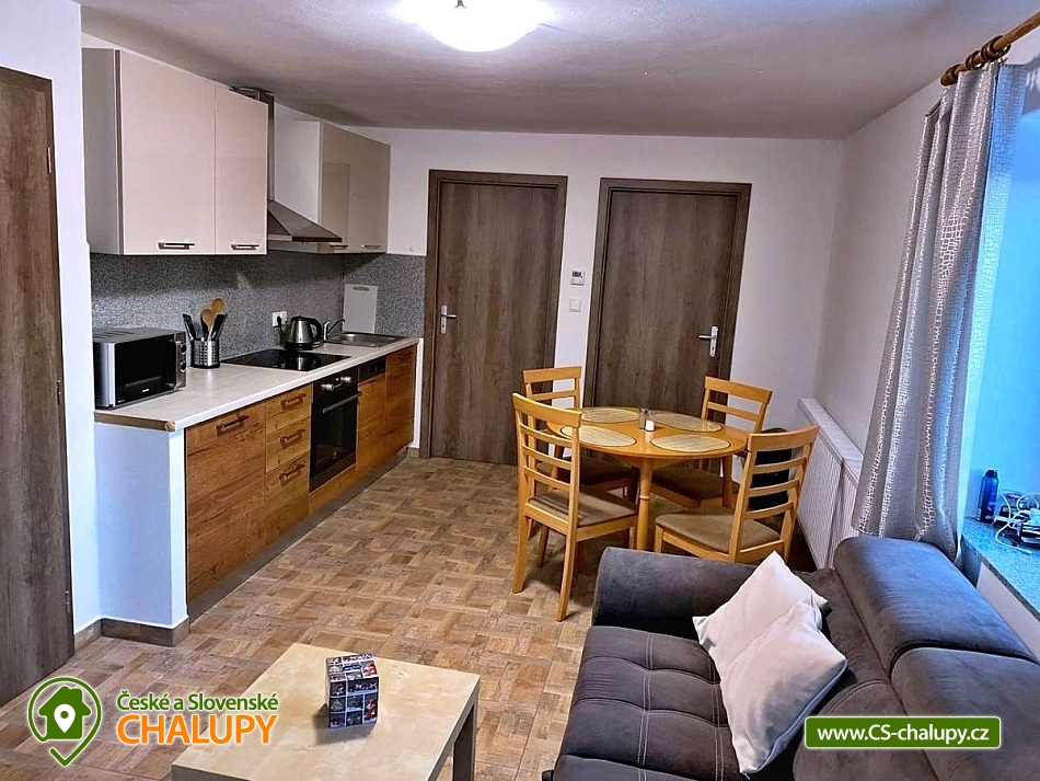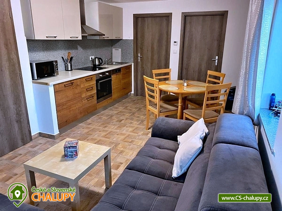 Apartmány Míra - recreational facility in a quiet part of the village, recreational area of Šumava and South Bohemia - private accommodation near the Lipno Reservoir, Hochficht ski area, excellent location for summer and winter sports, nature lovers will also enjoy themselves. DESCRIPTION: All apartments have their own entrance, soc. equipment, a sitting area with a sofa bed and a fully equipped kitchen including kitchen appliances (fridge, dishwasher, oven and microwave). Some apartments have a balcony or patio with mountain or garden views. APARTMENTS: Apartment No. 1 with 2 bedrooms - Bedroom No. 1: 1 double bed, Bedroom No. 2: 2 single beds, Living room: 1 sofa bed, Terrace with garden view and barbecue. Apartment No. 2: Bedroom No. 1: 1 large double bed, Bedroom No. 2: 2 single beds, Living room: 1 sofa bed, Terrace with garden view and barbecue. Apartment No. 3 on the ground floor: Bedroom No. 1: 2 single beds, Bedroom No. 2: 1 large double bed, Living room: 1 sofa bed, fireplace and garden view. In the surrounding area, there are many cycle paths, hiking trails (Medvědí stezka, navigation channel, Plešné lake, Plechý, educational trails), possibility of fishing - Lipno reservoir, swimming in summer, water park accessible all year round and Treetop Trail. Winter sports: the white trail connecting to the Šumava highway, the Lipno winter resort and the Hochficht ski resort approx. 22 km away. We look forward to seeing you here.