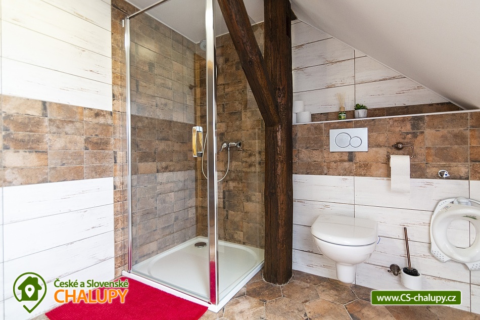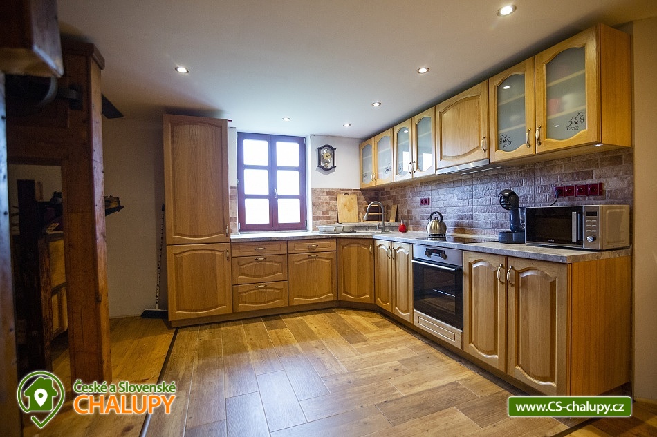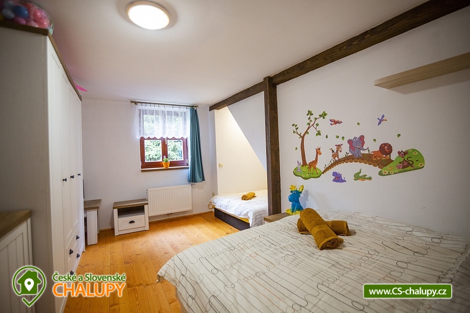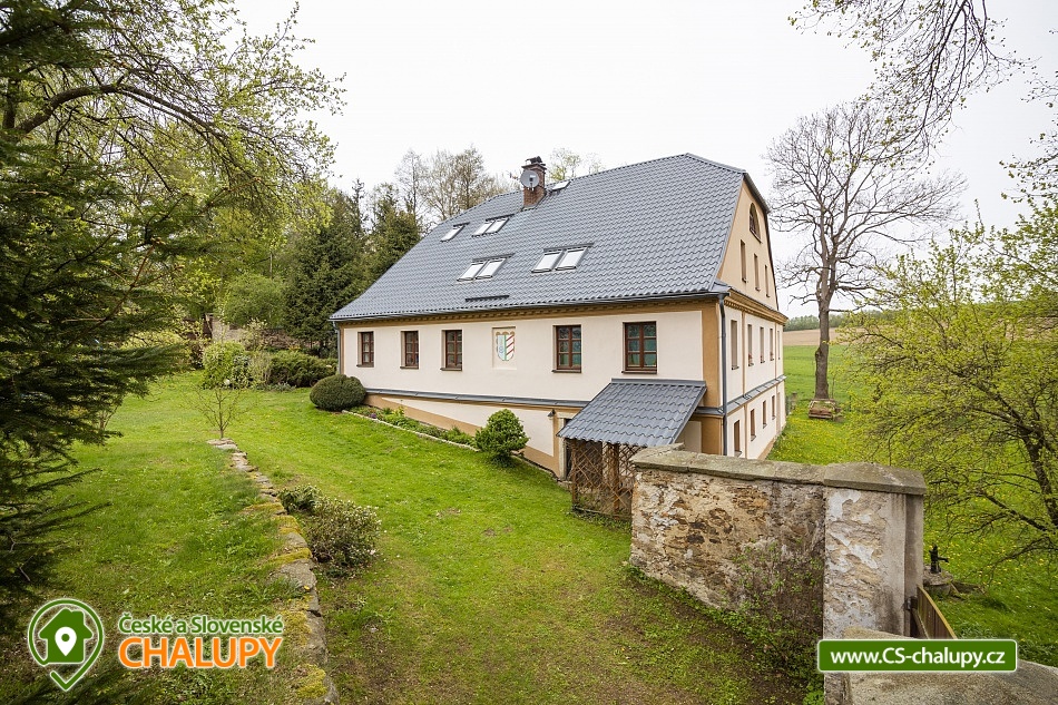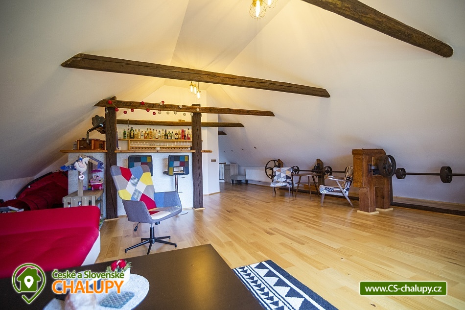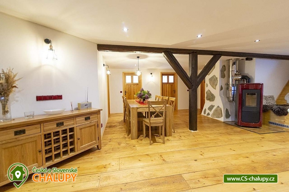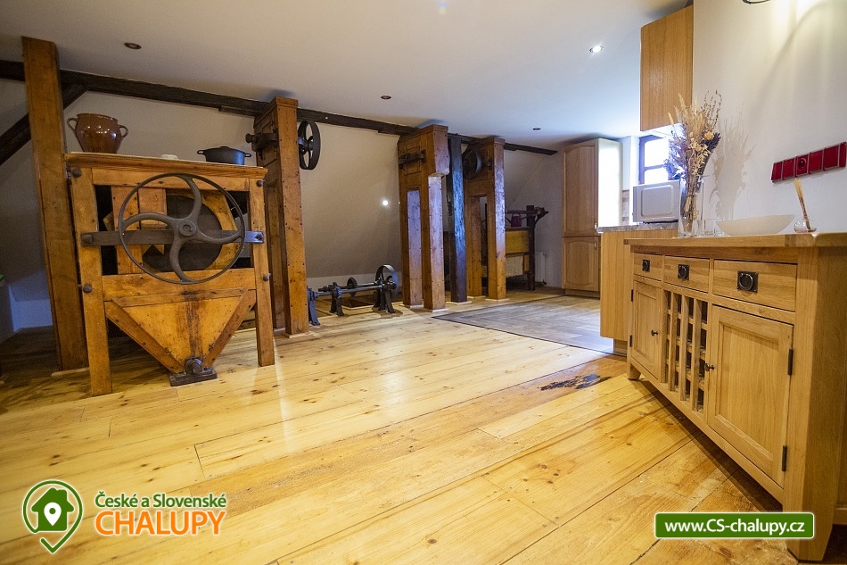 Cottage Bouduv Mlýn - Skuhrov - accommodation Vysočina. The cottage for rent with a capacity of 15 people is located in a secluded area, one kilometer from the village of Skuhrov, Vysočina region. On the first floor of the cottage there are 3 bedrooms (3 x 4 beds), two bathrooms equipped with a shower, toilet and sink. One of the rooms also has a sink directly in the room. A washing machine is also available here. Furthermore, on the first floor there is a fully equipped kitchen, induction hob, oven, fridge, freezer, dishwasher, microwave oven and Dolce Gusto coffee machine. There is also a hall with a dining table and an indoor pellet boiler, where you can relax on sheepskins by the stove. On the second attic floor, there is one room for 3 guests, equipped with its own bathroom, where there is a bathtub, toilet and sink. There are 2 cots available in the building. On this floor there is also a hall with a sitting area, a sofa, an armchair and a small children's corner. There is a fully equipped bar (fridge, freezer, induction two-burner hob, sink and tap equipment. There is also a smart TV in the living room. All rooms are equipped with their own TV. There is Wi-Fi connection in the building. On the ground floor it is possible use the table tennis table. The large yard has a fire pit, an outdoor brick smokehouse and several places to sit. There is a trampoline, a children's swing, a children's playhouse and a small pool (for the summer season). In the deep woods here, you can not only mushroom picking, but you can also discover a well with healing water here. You can visit, for example: Lipnice nad Sázavou (16 km) with its castle, the grave of Jaroslav Hašek, or take a walk in the local forests. Havlíčkův Brod (9 km), with its historic walls and the museum of Karel Havlíček Borovský. Humpolec (27 km), here you can visit the local brewery Bernard, with an observation tower or the nearby ruins of the Orlík castle. Žďár nad Sázavou (37 km), here you can find Zelená hora, a UNESCO monument, Pilák recreation area or, for example, Žďár castle above Sázava. We look forward to seeing you here.
