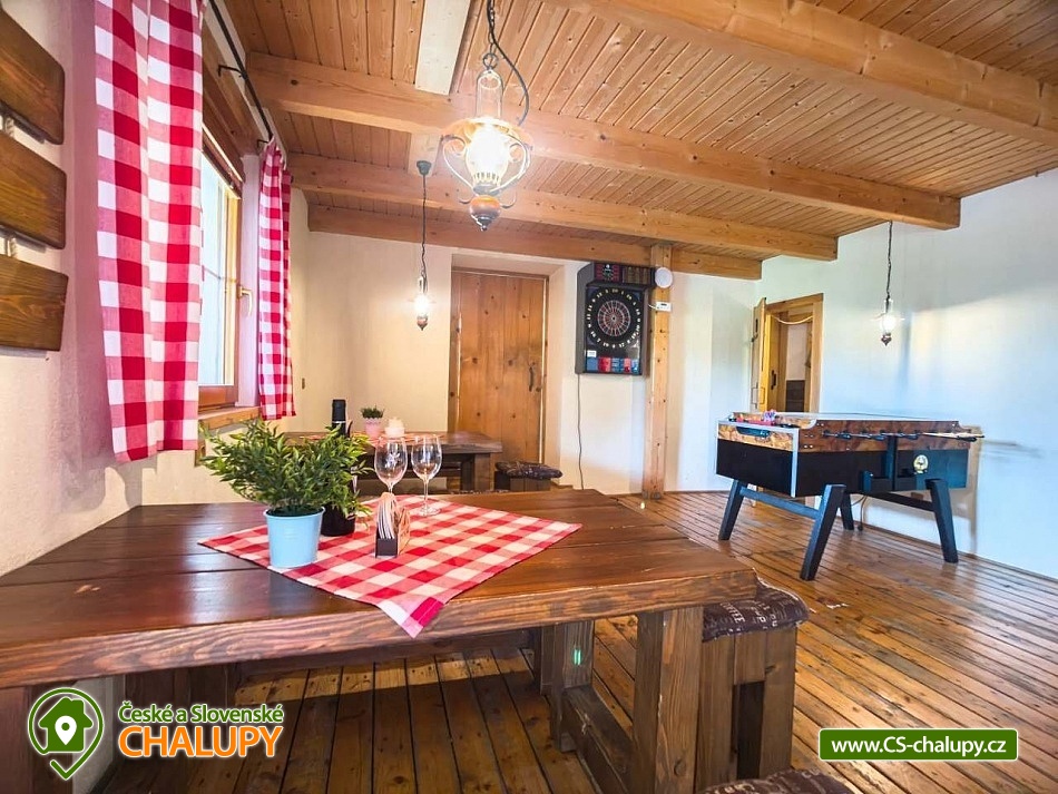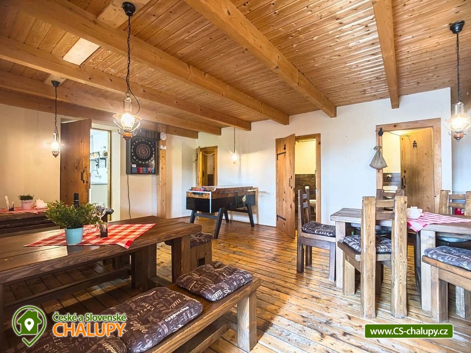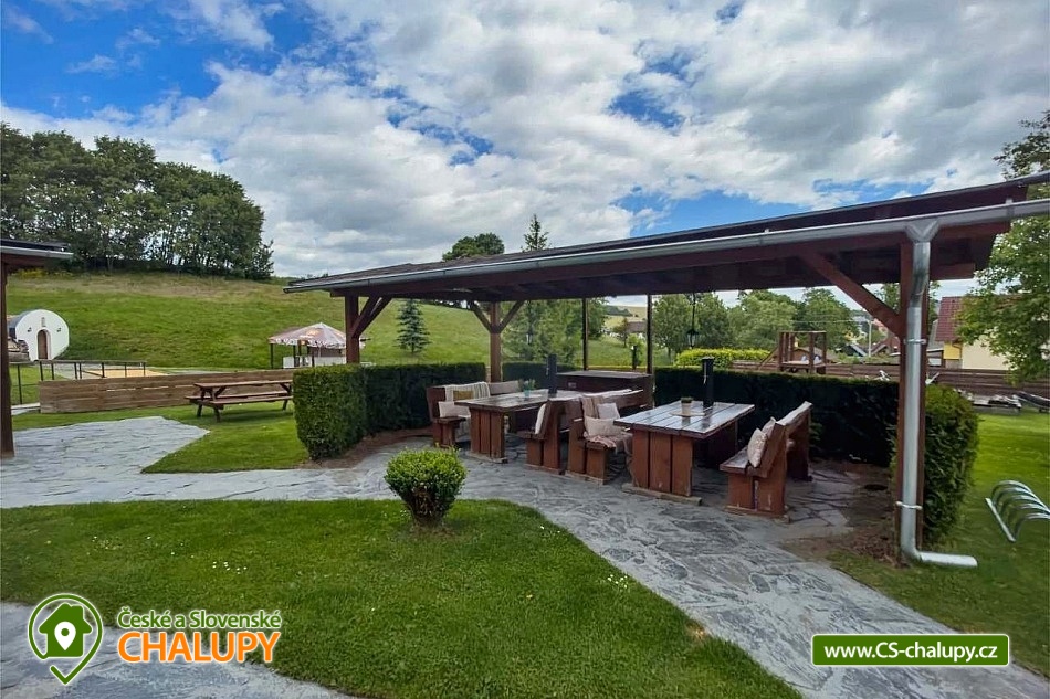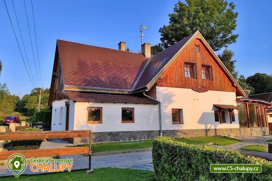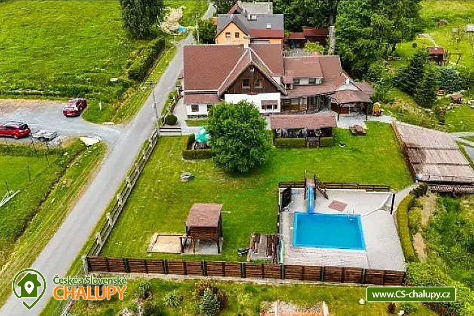 Chalupa s bazénem a vlastním hřištěm u Slezské Harty, Rešovských vodopádů a Mechových jezírek na Rejvízu. Kapacita chalupy je až 14 osob ve 4 ložnicích. Chalupa s rozlehlou zahradou, k dispozici je bazén s terasou, atrakce pro děti (pískoviště, lezecká stěna, domek se skluzavkou), ohniště, oplocené travnaté hřiště na malou kopanou, volejbal či nohejbal a předzahrádka s grilem. V oddělené části chalupy se nachází stylová hospůdka, do které vás rádi pozveme na orosené pivo, kvalitní víno, širokou nabídku alko i nealko nápojů a v neposlední řadě na výbornou domácí kuchyni. Vše si v teplých dnech můžete vychutnat na krásné zahrádce, ve vinárně či před ní nebo u našeho venkovního baru s posezením a hřištěm na pétanque. POPIS: Ubytování v 1 dvoulůžkovém a 3 čtyřlůžkových pokojích. V chalupě je plně vybavená kuchyň s jídelnou, ve které si můžete zatopit i v krbu, dvě koupelny, dvě WC. Parkování je zajištěno na soukromém parkovišti u chalupy. V obci se nachází obchod s potravinami a smíšeným zbožím. Samotná chalupa se nachází na okraji obce v naprosto klidné lokalitě bez dopravního provozu. K dispozici je zrekonstruovaná obecní tělocvična, posilovna, v létě multifunkční hřiště s umělým povrchem. V zimě je možnost absolvovat výuku snowkitingu. V blízkém dosahu kolem je dostatek turistických cílů, aby vám pokryly týdenní dovolenou s rozdílnými výlety každý den. Za zmínku stojí Slezská Harta, Rešovské vodopády, mechová jezírka Rejvíz, Údolí Bílé Opavy, nejvyšší hora Hrubého Jeseníku - Praděd, Karlova Studánka, Skiareál Kopřivná, přečerpávací elektrárna Dlouhé Stráně, hrad Sovinec, Hrad Šternberk, zámek Bruntál, zámek a termály Velké Losiny, ZOO Olomouc a mnoho dalších. Rádi Vám poradíme a nasměrujeme dle Vašeho zájmu. Těšíme se na Vás u nás.