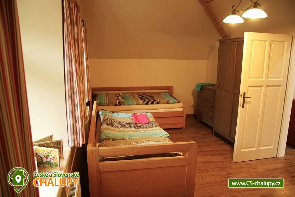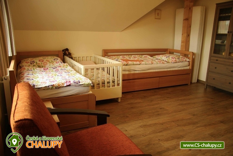 Chalupa s koupacím jezírkem a zahradním altánem - ideální dovolená pro rodiny s dětmi na polosamotě v Krkonoších u Janských Lázní pod Černou horou. Chalupa poskytuje ubytování pro až 18 osob ve 4 ložnicích, vhodné pro rodinnou dovolenou - pro děti máme spoustu her, hraček a stavebnic. Ve východním apartmánu je jedna ložnice pro 4-6 osob a společenská místnost s kuchyňským koutem a jídelním stolem. V západním apartmánu jsou dvě ložnice každá pro 3-4 osoby, společenská místnost s kuchyňským koutem a jídelním stolem a dřevěnou dětskou postýlkou. V jižním pokoji jsou dvě rozkládací postele pro 2-4 osoby. Na chodbě najdete skříň se spoustou knih a her. Na vyžádání je možné využít dvě cestovní dětské postýlky, dětskou ohrádku nebo dětskou sedačku ke stolu. V obývacích pokojích je pohodlná sedací souprava s televizí se satelitním příjmem, jídelní stůl a plně vybavená kuchyňská linka se sporákem, troubou s grilem, mikrovlnnou troubou, myčkou nádobí a lednicí s mrazákem. Kuchyňské náčiní, nádobí i příbory jsou k dispozici v dostatečném množství. Nově jsou apartmány vybaveny automatickým kávovarem, kontaktním grilem, mixérem, smoothie mixerem a topinkovačem. V chalupě je Wifi připojení zdarma. Celoročně je k dispozici zahradní altán s grilem, velké koupací jezírko - 300 m2, venkovní ohniště a dětské hřiště se skluzavkou a houpačkami. Zahradní altán lze v chladném nebo deštivém či větrném počasí zcela uzavřít výsuvnými okny a lokálně zlepšit klima infra topením. Chalupa se nachází na polosamotě, v neprůjezdné obci s minimálním provozem. Nejbližší sousedé a silnice je ve vzdálenosti 100 m pod objektem, což vytváří dostatečné soukromí jak pro relaxaci, tak pro nerušenou vlastní zábavu. Nad neoplocenou zahradou jsou další rozsáhlé prostory na louce a sadu s rozlohou více jak 10 hektarů. Chalupa se nachází přes kopec od Černé hory. Okolí je vhodné pro relaxační pobyt, cyklovýlety, houbaření i rybaření. V obci je restaurace, obchod i pošta. Hlavní lyžařské krkonošská střediska jsou ve vzdálenosti 10-30 km. Blízké atrakce: Safari ve Dvoře Králové n/L, Hospital a Betlém v Kuksu, golfová hřiště, muzea nebo vojenské pevnosti. Nejbližší lyžařská střediska: Černý Důl, Mladé Buky, Černá Hora - Janské Lázně. Těšíme se na Vás u nás.