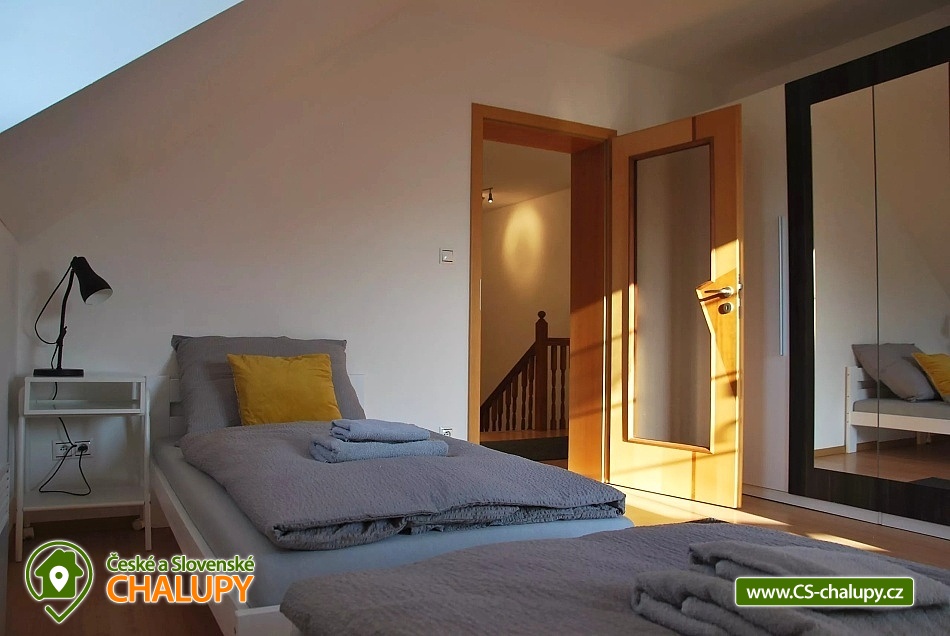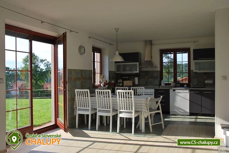 Cottage U křížku with indoor pool - treat yourself to a wonderful holiday in the heart of Bohemian Paradise. Semi-detached cottage in the village of Hrachovice with a forest location in a beautiful and quiet environment of the Bohemian Paradise under the Kozákov mountain near the Trosky castle and with a view of Ještěd. The location of the accommodation offers pleasant walks to the protected landscape area Klokočské skály with the ruins of the castle Rotštejn (approx. 2 km). At the same time, the advantage is the proximity of the city of Turnov with all amenities (about 3 km). Cottage for rent provides accommodation for 11 people in 4 bedrooms. DESCRIPTION: Modernly equipped kitchen with built-in appliances, refrigerator + freezer, kettle, ceramic hob + electric oven, dishwasher, microwave, toaster. Crockery set available. Towels and tea towels in the kitchen available. Upstairs bedroom - 1. Bedroom with three beds 90x200 cm, 2. Bedroom with two beds 90x200 cm and balcony, 3. Bedroom with double bed 180 cm, sofa (extra bed) and balcony. Bedroom on the ground floor - 4. Bedroom with a double bed 180 cm and access to the indoor pool, plus a work area with wired internet. Bed linen and towels are provided. Sanitary facilities: 2x separate toilet on the ground floor, 1x bathroom with shower, 1x toilet and bidet on the first floor part of the bathroom with whirlpool tub. Cottage heating: Fireplace, direct heaters, electric floor heating in the bathroom on the ground floor. Other equipment: TV with USB and HDMI connection, books, internet, board games, Parking directly at the cottage (1 garage parking space + the rest outside on a reserved area). At the cottage there is: indoor pool, 6x3 m (depth 120 cm), table tennis, garden 5000 m2, outdoor grill, fireplace and outdoor seating. We recommend: Valdštejn Castle, Malá Skála - Pantheon, Klokočské rocks, Drábské světničky, Hrubá Skála castles, Sychrov, rock town, golden path of Bohemian Paradise, dominant of Bohemian Paradise - Trosky castle ruins, Kost castle, town of Turnov 3 km, where there is a newly built pool complex. Very popular are the rich bike paths across the Bohemian Paradise and walks in the woods (blueberries, mushrooms). Kozakov (restaurant with a lookout tower). Paragliding Kozakov. Swimming: aquapark Turnov, Malá Skála - Yellow swimming pool and rafts on the Jizera. Ski resorts: Kozákov, Liberec - Ještěd, Koberovy - Hamštejn, Lišný, Vysoké nad Jizerou - Šachty, Tanvaldský špák. In the winter season, the Struhy Ski Resort is located directly in Turnov (a pleasant ski slope suitable for even the smallest ones). In the vicinity (half an hour by car) are excellent skiing conditions in the Giant Mountains, Jizera Mountains, Bedrichov (cross-country highway, where the Jizera Fifties regularly run), 20 km from the accommodation are ski slopes in Jested. We are looking forward to seeing you.
