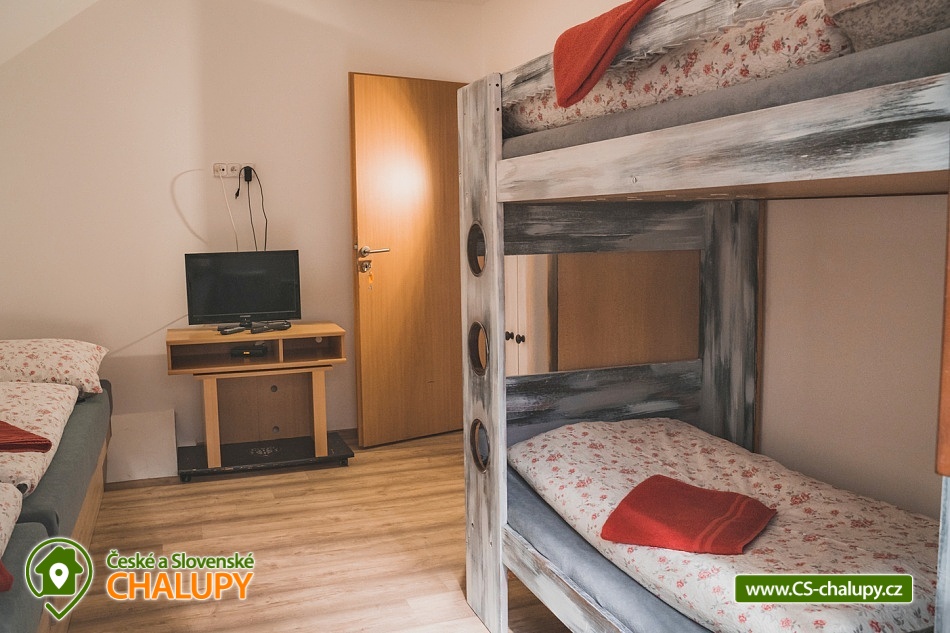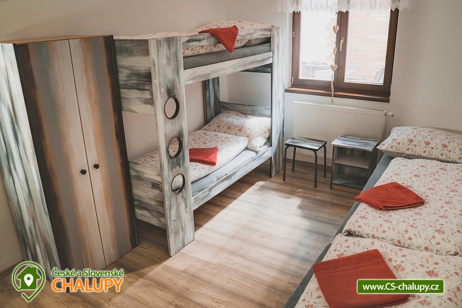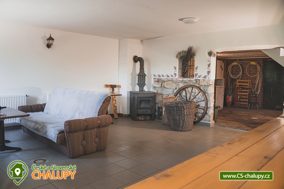 The Starovice cottage and wine cellar is located in the village of the same name, near the South Moravian town of Hustopeče and the Lednice-Valtice area, which is on the UNESCO World Heritage List. Many events take place in Starovice every year, one of them is, for example, the Starovické vintage, as well as various feasts and entertainment with a program for children and adults. You can look forward to sitting in the deep wine cellar, which is the dominant feature of the entire building and is used for controlled tasting. Cottage and wine cellar Starovice offers accommodation for 12 people in three four-bed bedrooms. After agreement, a stay with breakfast can be arranged. All three bedrooms are located on the first floor, one bedroom has a bunk bed and two single beds, the other two have four single beds with the possibility of connecting them into double beds. All bedrooms are equipped with a wardrobe, bedside table, TV and WIFI. A fully equipped kitchen (hob, fridge, microwave oven and kettle) is also located on the first floor. From the kitchen you enter a cozy covered terrace with a fireplace with the possibility of grilling. By arrangement, complimentary wines, plated dishes and meat for grilling are available during the stay. There is also a bathroom with shower and toilet on the first floor. On the ground floor, you can sit in the living room with a fireplace, two sofas and a TV. There is a second bathroom with shower and toilet. A guided tasting by a qualified taster can be arranged in the wine cellar. There is a garden at the cottage and in the summer it is possible to sit and sunbathe on the second outdoor summer terrace. Children can enjoy the playground. There is a storage room for bikes and skis. You can park directly at the building. In the surroundings of the cottage, hiking, cycling, swimming, fishing, mushroom picking and skiing are possible. In the immediate vicinity of the cottage there is a playground for children, a nature area near Myslivna, horses and a pub with outdoor seating. A football and tennis court can be used in the village. There are many cycling (wine) routes in the area with a view of the beautiful nature. Swimming options include, for example: Hustopeče swimming pool, Hustopeče swimming pool, Horní Bojanovice swimming pool, Nové Mlýny reservoir, Němčičky swimming pool, Žabčice swimming pool, Pasohlávky Aqualand Moravia water park, Židlochovice city swimming pool, Blučina swimming pool, etc. German girls. Hustopeče with its ZOO farm, Mandloňový sady with a lookout point on the city and trails in the footsteps of T.G. Masaryk, also the village of Zaječí with Vinařství u Kaplička with wellness, Židlichovice Castle, Podyjí National Park, Nové Mlýny Reservoir or the historical center of Brno. We look forward to seeing you here.