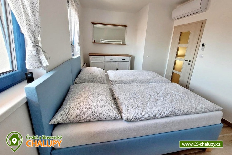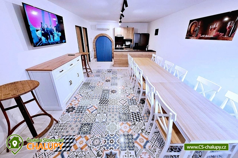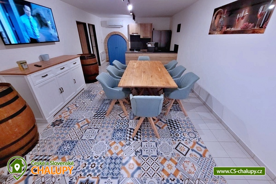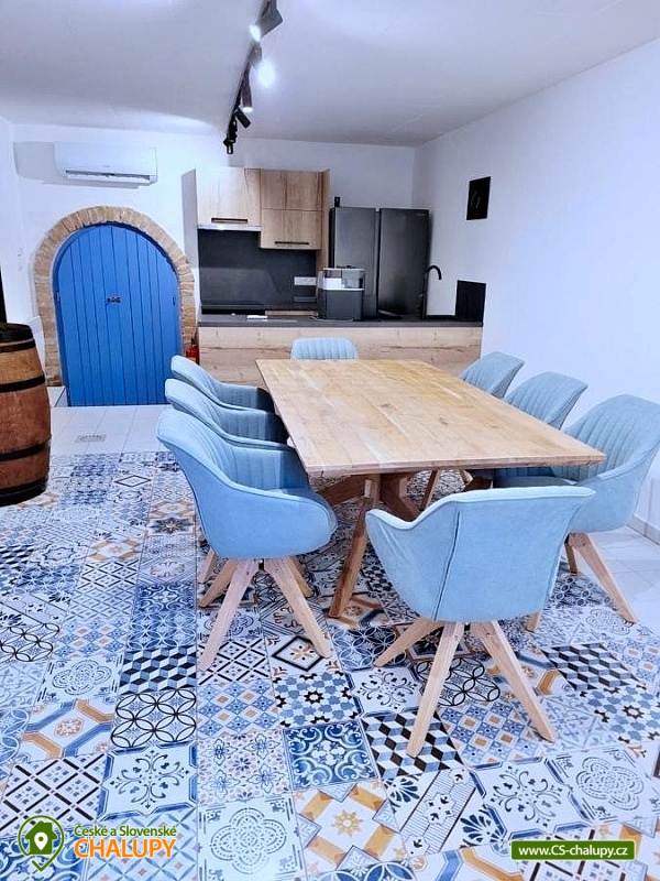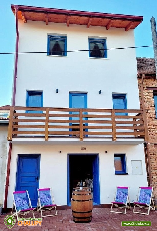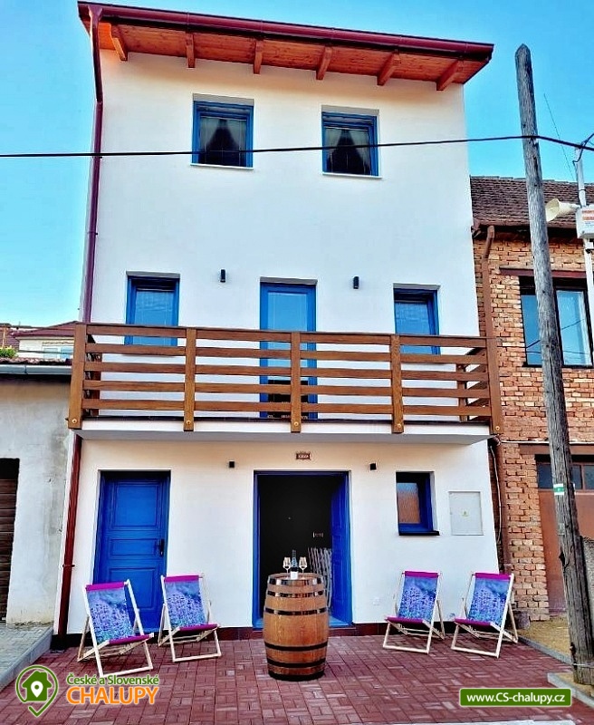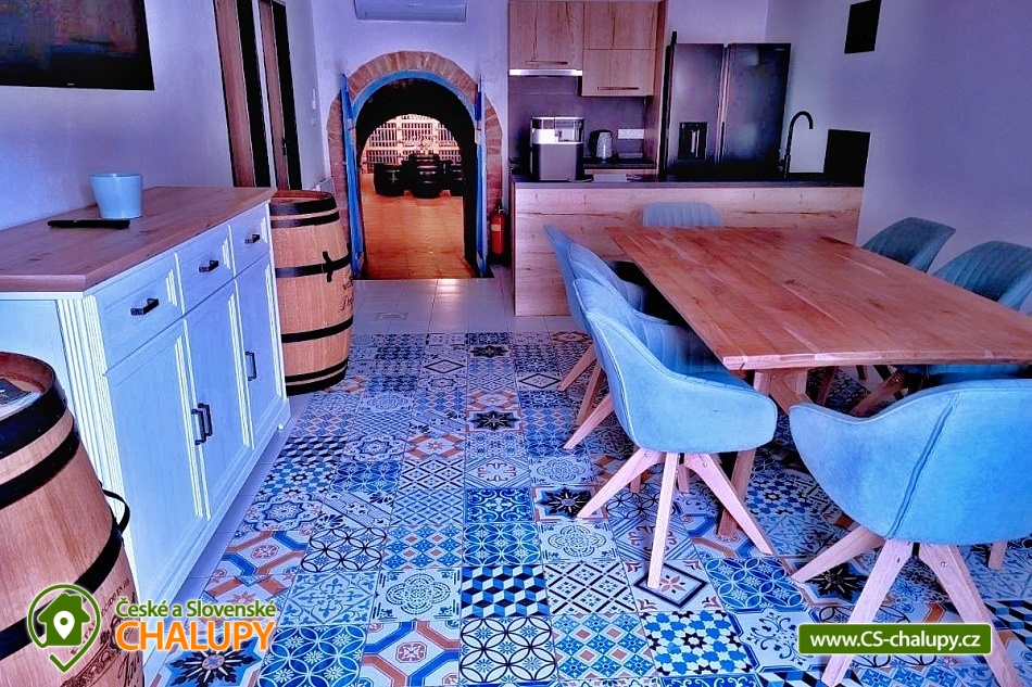 Cottage Blue Cellar in the wine-growing town of Velké Pavlovice with a location on the Wine Country - André region wine trail leading through vineyards, almond and apricot orchards. The blue cellar is located among the cellars of local winemakers, in a quiet location. The property includes a wine cellar with wines from local winemakers. The lavender farm Starovičky, Pálava, Lednice castle and many other interesting places of South Moravia are nearby. The Blue Cellar provides accommodation for up to 8 people in 2 bedrooms. On the ground floor of the cellar there is an air-conditioned wine room with a kitchenette and a toilet. From the wine room, there is free access to the vaulted historic cellar with varietal wines. On the 1st floor there is an air-conditioned living room with an equipped kitchenette (oven, dishwasher, fridge and coffee maker). Hallway with built-in wardrobe and bathroom. On the 2nd floor, two air-conditioned bedrooms with four fixed beds each, a bathroom and a hallway with a coat rack. Equipment: TV in the wine room, equipped kitchenette with oven, dishwasher, induction hob and American fridge. In the living room, there is a TV and an equipped kitchenette with an induction hob, dishwasher, oven and fridge. Air conditioning. Social facilities: On the ground floor, a toilet with a sink, on the first floor a bathroom with a toilet and a shower, on the second floor a bathroom with a toilet and a shower. Heating: Heat pump. Parking is possible in front of and behind the cottage. Nearby is a swimming pool in the village of Němčičky, Horní Bojanovice, Hustopeče and the Pasohlávky water park. Possibility of sightseeing cruises at the Nové Mlýny dam under Pálavou. The Lednicko - Valtice area with the Lednice State Castle is also nearby, and the Starovičky lavender farm is a short distance away. We look forward to seeing you here.