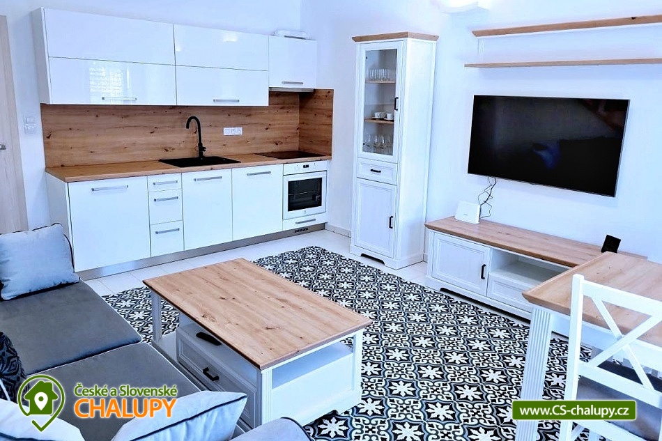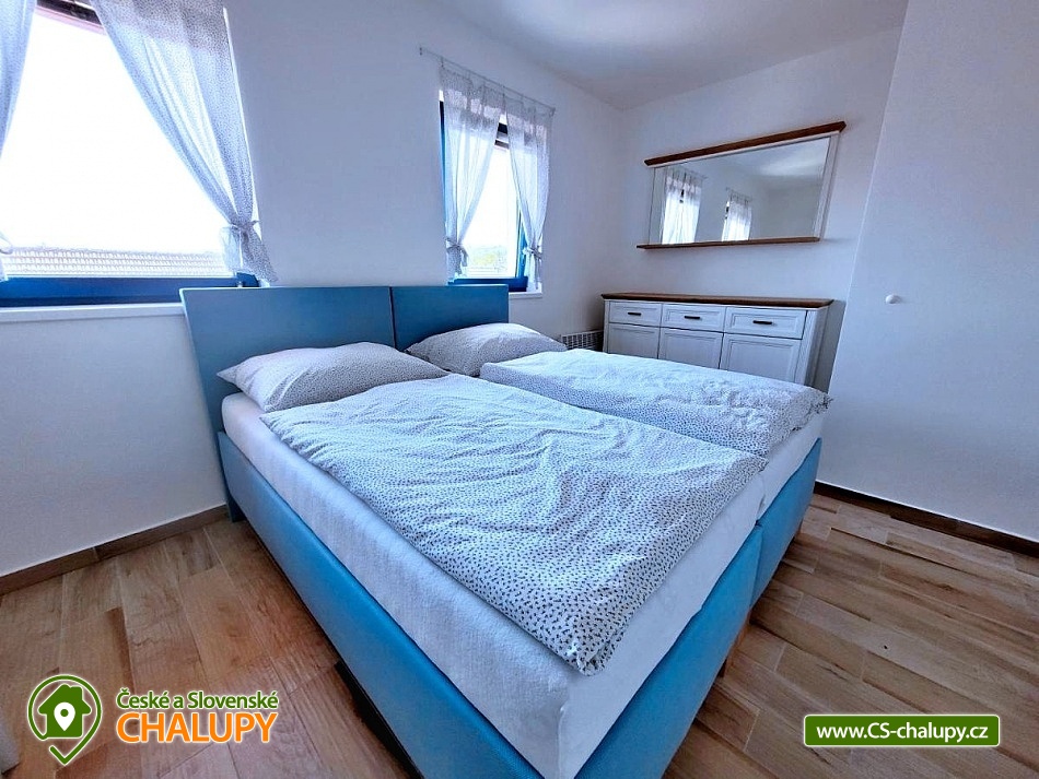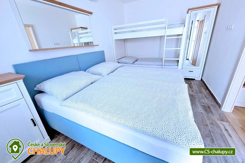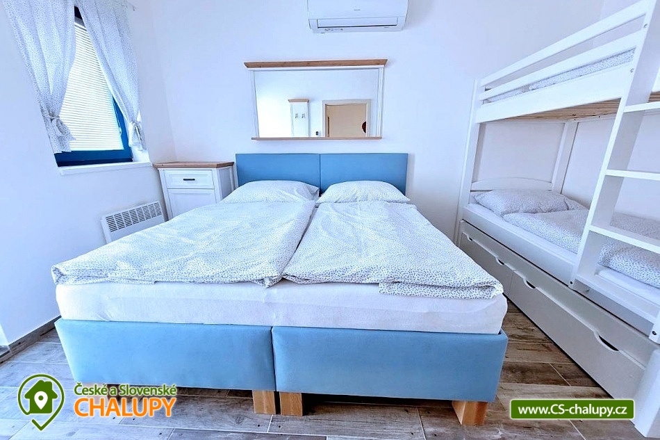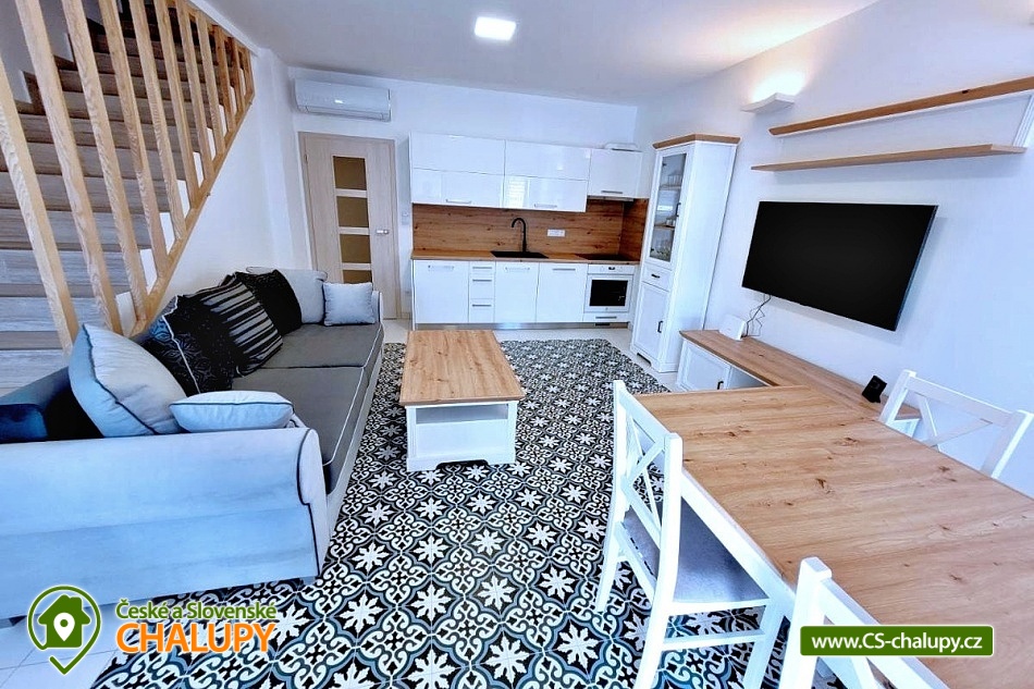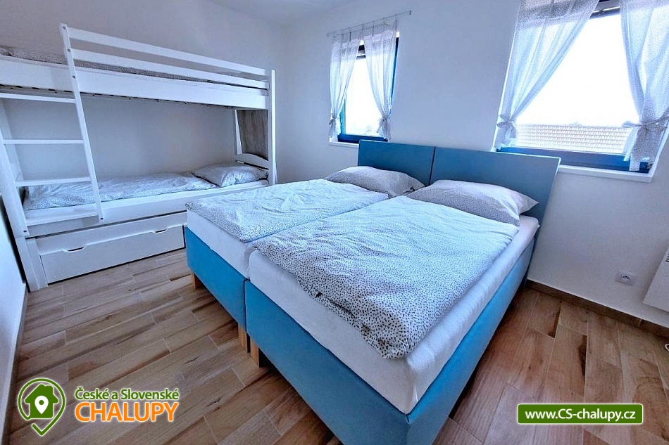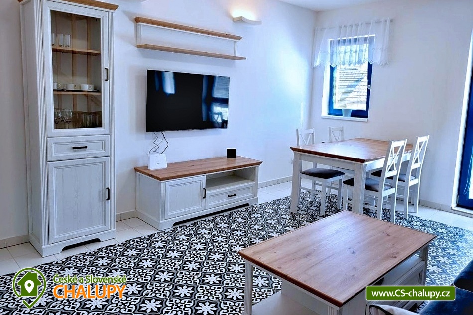 Cottage Blue Cellar in the wine-growing town of Velké Pavlovice with a location on the Wine Country - André region wine trail leading through vineyards, almond and apricot orchards. The blue cellar is located among the cellars of local winemakers, in a quiet location. The property includes a wine cellar with wines from local winemakers. The lavender farm Starovičky, Pálava, Lednice castle and many other interesting places of South Moravia are nearby. The Blue Cellar provides accommodation for up to 8 people in 2 bedrooms. On the ground floor of the cellar there is an air-conditioned wine room with a kitchenette and a toilet. From the wine room, there is free access to the vaulted historic cellar with varietal wines. On the 1st floor there is an air-conditioned living room with an equipped kitchenette (oven, dishwasher, fridge and coffee maker). Hallway with built-in wardrobe and bathroom. On the 2nd floor, two air-conditioned bedrooms with four fixed beds each, a bathroom and a hallway with a coat rack. Equipment: TV in the wine room, equipped kitchenette with oven, dishwasher, induction hob and American fridge. In the living room, there is a TV and an equipped kitchenette with an induction hob, dishwasher, oven and fridge. Air conditioning. Social facilities: On the ground floor, a toilet with a sink, on the first floor a bathroom with a toilet and a shower, on the second floor a bathroom with a toilet and a shower. Heating: Heat pump. Parking is possible in front of and behind the cottage. Nearby is a swimming pool in the village of Němčičky, Horní Bojanovice, Hustopeče and the Pasohlávky water park. Possibility of sightseeing cruises at the Nové Mlýny dam under Pálavou. The Lednicko - Valtice area with the Lednice State Castle is also nearby, and the Starovičky lavender farm is a short distance away. We look forward to seeing you here.