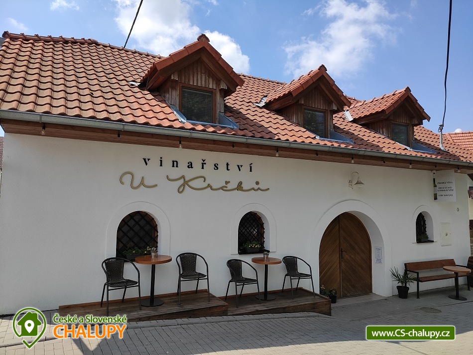 Ubytování a Vinný sklep U Krčků - Zaječí - jižní Morava. Chalupa k pronájmu poskytuje ubytování pro až 10 osob ve 3 ložnicích. Podkrovní nástavba nad vinným sklepem s uzavřeným prosluněným dvorkem, kde se nachází zahradní posezení s grilem na zastřešené terase, která vám poskytuje relaxaci a odpočinek na lehátkách. Vinotéka v objektu Vám nabízí lahve našeho vína k ochutnání a zpříjemnění vašeho pobytu. Po domluvě možná degustace vín v našem vinném sklepě. Ložnice a pokoje: Chalupa obsahuje 3 ložnice, obývací místnost, jídelnu s kuchyňským koutem. 1. ložnice dvoulůžko + jednolůžko. 2. ložnice - dvoulůžko. 3. ložnice - jednolůžko + patrová postel. Obývací místnost - přistýlka = rozkládací pohovka. Sociální zařízení: 1x WC samostatné, 1x koupelna s WC. Vytápění: elektrické. Parkování před objektem. Vybavení - WiFi, plně vybavená kuchyň, vinotéka s našimi víny, venkovní gril a posezení, lehátka. Výlety: Lednicko-valtický areál, Mikulov, Dolní Věstonice, Pálava, přehrada Nové Mlýny, Mikulčice, … Rybaření: Přehrada Nové Mlýny, soukromý rybník u Nových Mlýnů, řeka Dyje a místní rybníky. Koupání: Aqualand Moravia Pasohlávky (20 km), Lázně „Therme Laa“ Rakousko-Laa an der Thaya (35 km), Koupaliště Hustopeče (10 km), koupaliště Mikulov (12 km), koupaliště Břeclav (20 km), rybník v Rakvicích – písečná pláž (5 km). Sport: Cykloturistika, tenis, squash, bowling, windsurfing, horolezectví a padákové létání. Těšíme se na Vaší návštěvu.