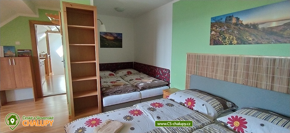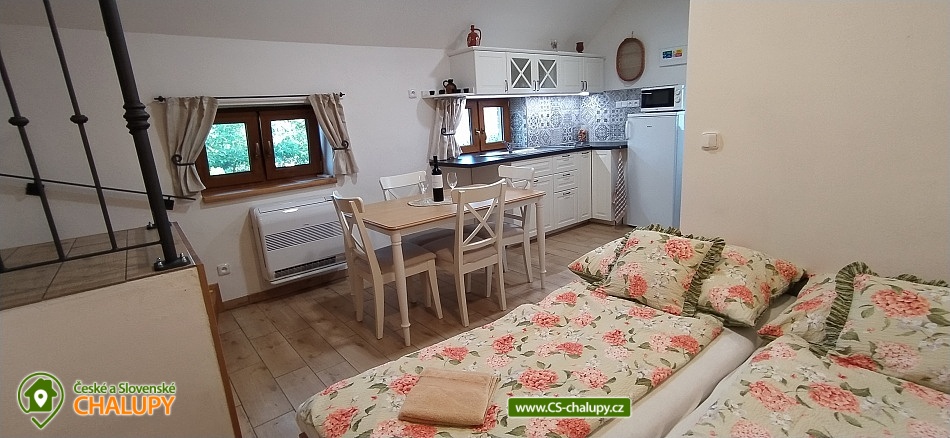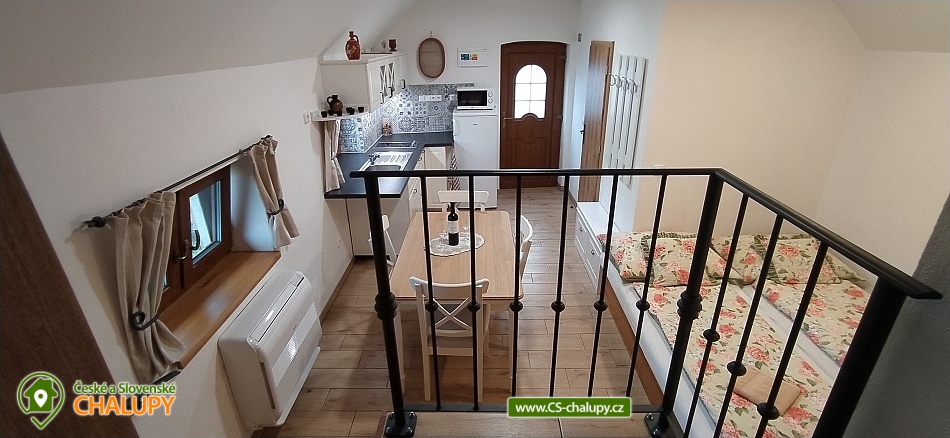 Chalupa a vinný sklep - u přehrady Nové Mlýny. Vítáme Vás v pohodové apartmánové chalupě Starý dvůr s 2-ma apartmány Hanys a Sýpka. Každý apartmán má kapacitu 4 lůžka + možnost 1 přistýlky. Užít si můžete velkou oplocenou zahradu, posedět si pod pergolou nebo v nově otevřené lisovně ochutnat nejlepší vína z vinic v okolí. Zde vám můžeme zajistit degustaci dle vašeho přání. K dispozici je venkovní i elektrický gril. Připojení k wifi a parkování v uzavřené zahradě je samozřejmostí. POPIS: Apartmán SÝPKA se nachází ve zrekonstruované budově bývalé sýpky na obilí. Je obklopen zahradou. K dispozici je ložnice, kuchyňka s menším obývacím prostorem, vlastní sociální zařízení a velká terasa. Přístup do apartmánu je ze zahrady. Apartmán je vybaven klimatizací. V ložnici je dvoulůžko široké 160 cm a přistýlka. V obýváku s kuchyňkou je dvoulůžko šíře 180 cm, dále tu najdete velký jídelní stůl. Kuchyňka je plně vybavená veškerým nádobím, vařičem, MW troubou, varnou konvicí, lednicí. Apartmán HANYS v podkroví našeho domu je odkloněn od hlavní ulice a orientován směrem do zahrady. K dispozici je pokoj s nikou, kuchyňka a vlastní sociální zařízení. Vstup do domu je společný. V pokoji je dvoulůžko široké 180 cm, v nice je dvoulůžko šíře 160 cm, dále tu najdete velký jídelní stůl, televizi a výhled do zahrady a na Pálavu. Kuchyňka je plně vybavená veškerým nádobím, vařičem, MW troubou, varnou konvicí, lednicí a samoobslužnou vinotékou. Do tohoto apartmánu doporučujeme vzít si s sebou kromě přezůvek i pantofle na zahradu. Ideální poloha dělá z naší chalupy skvělým výchozím místem pro objevování krás Pálavských vrchů, Hustopečska a Mikulovska a samozřejmě Lednicko - Valtického areálu. Možnosti koupání v okolí: vodní nádrž Nové Mlýny, bazén a koupaliště Hustopeče, koupaliště Němčičky a aquapark Pasohlávky Aqualand Moravia. Okolní rovinatá plná zajímavých míst je ideální pro výlety na kolech, která si, stejně jako koloběžky, půjčíte za zvýhodněnou cenu přímo na místě. Těšíme se na Vás u nás.