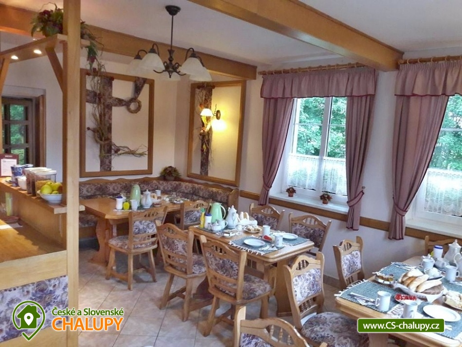 Chalupa Adršpašské skalní město nedaleko od Police nad Metují a Adršpachu, poloha v ideální lokalitě pro výlety do celého CHKO Broumovsko. Chalupa nabízí ubytování pro až 20 osob s možností snídaní. Objekt lze pronajmout i s velkou vybavenou kuchyní (pak jsou pobyty bez snídaně). Celkem je k dispozici 15 pevných lůžek a 5 přistýlek vhodné zejména pro děti. V chalupě je celkem 7 pokojů s vlastním sociálním zařízením (sprchový kout + WC). Pět standardních dvoulůžkových pokojů má k dispozici malý kuchyňský kout pro přípravu studené kuchyně. Kout je vybaven lednicí bez mrazáčku, mikrovlnkou a rychlovarnou konvicí. Součástí kuchyňského koutu na pokoji není plotýnkový vařič. Pro malé děti je v těchto pokojích připravená přistýlka řešená rozkládacím křeslem. Dále jsou k dispozici dva podkrovní pokoje, jeden dvoulůžkový a třílůžkový, který má jako jediný umístěné vlastní sociální zařízení na chodbě hned vedle pokoje. Tyto dva podkrovní pokoje jsou menší a bez kuchyňského koutu. V chalupě můžete využívat společenskou místnost s barem a brožurami s tipy na výlety do okolí přímo pro vás. V celém objektu WIFI připojení na internet. Venku u chalupy oceníte letní terasu a velkou zahradou s ohništěm, dětské a sportovní hřiště. S dětmi se také můžete jít podívat na farmu v sousedství chalupy. K dispozici je úschovna pro kola. Parkovat lze přímo u objektu. V okolí možnost turistiky, cykloturistiky, koupání, rybaření a lyžování. V blízkosti jsou také tenisové kurty. Mezi možnosti koupání patří např.: koupaliště Police nad Metují, koupaliště Teplice nad Metují, koupaliště Meziměstí, rybník Buchťák, koupaliště Koupálo Janovičky, jezero Kuprovka, Přírodní koupaliště Radków, aquapark Kudowa Zdroj, koupaliště Malé Svatoňovice, Brodský rybník, atd. V zimním období blízká lyžařská střediska: Kamenec - Teplice nad Metují, Na Nebíčku, Machov a další. K výletům v okolí lákají Adršpašské skály, Teplické skály, Jiráskovy skály, stolová hora Ostaš, síť rozhleden (Čáp, Ruprechtický špičák, Pavlišov, Vysoká Srbská), Kaple Panny Marie Sněžné na Hvězdě, farma Venet a zámky v Náchodě a v Novém Městě nad Metují. Těšíme se na Vás u nás.
