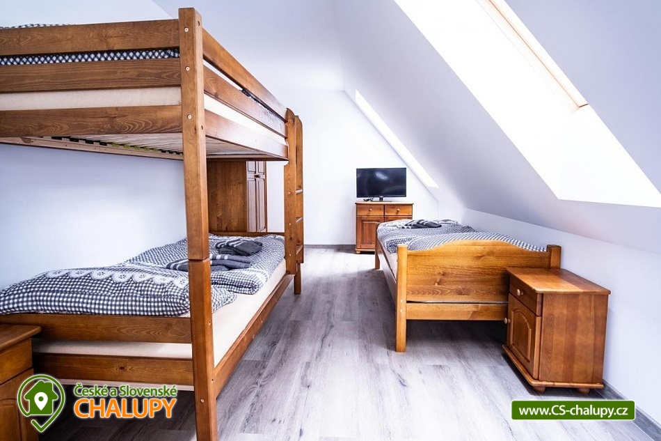 Chalupa Adršpašsko-Teplické skály s vlastním wellness nabízí ubytování pro až 16 osob ve 4 ložnicích. Poloha v obci Hejtmánkovice - Broumov nedaleko Adršpašsko-Teplických skal a polských Stolových hor. Chalupa je vhodná pro rodiny s dětmi, turisty i sportovce. Na cyklostezku se napojíte přímo u chalupy. Na zahradě je posezení i ohniště, nadzemní bazén, dětské hřiště s trampolínou, kolem domu teče potůček. Klidná část obce. Vybavení chalupy: V přízemí je velká chodba, vybavená kuchyň (kuchyňská linka, sporák, varná konvice, lednice, jídelní stůl, židle, televize). Ložnice č.1: jednolůžková postel, patrová postel a velká manželská postel. Ložnice č.2: jednolůžková postel, velká manželská postel. Ložnice č.3: manželská postel a 2 patrové postele. Ložnice č.4: 2 jednolůžkové postele. Sociální zařízení: V přízemí je koupelna s toaletou a sprchovým koutem, dále wellness, sauna vířivka a sprcha. V patře je koupelna s toaletou sprchový kout. Vytápění: Chalupa je vytápěna tepelným čerpadlem a podlahovým topením po celé chalupě. Parkování přímo u chalupy. V okolí výlety: Broumovské stěny, vyhlídka Hvězda, pískovcové skály Ostaš, Adršpašské skály (lanové centrum, vyjížďky na koních, horolezecké kurzy, půjčovna kol), Teplické skály, Police nad Metují – muzeum stavebnice Merkur, výlety a nákupy do Polska - Kudowa Zdrój, Stolové hory - Národní park Góry Stolowe, Náchod - zámek, Ratibořice - zámek, mlýn, Staré Bělidlo, Nové Město nad Metují - zámek, Opočno - zámek, Hospital Kuks. Dvůr Králové - ZOO Safari. Přehrada Rozkoš - koupání, rybaření. Předválečné pevnostní opevnění Dobrošov a Březinka (vybavená vojenskou technikou), pevnostní opevnění z 18. století Josefov s katakombami, klášter Broumov. Vyhlídkové lety - aeroklub Broumov, divadlo Hronov (Jiráskův Hronov). Těšíme se na Vás u nás.