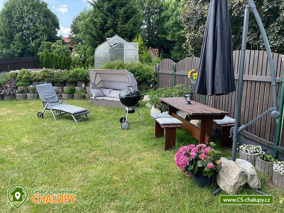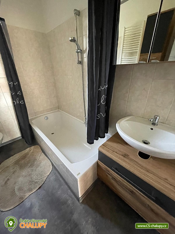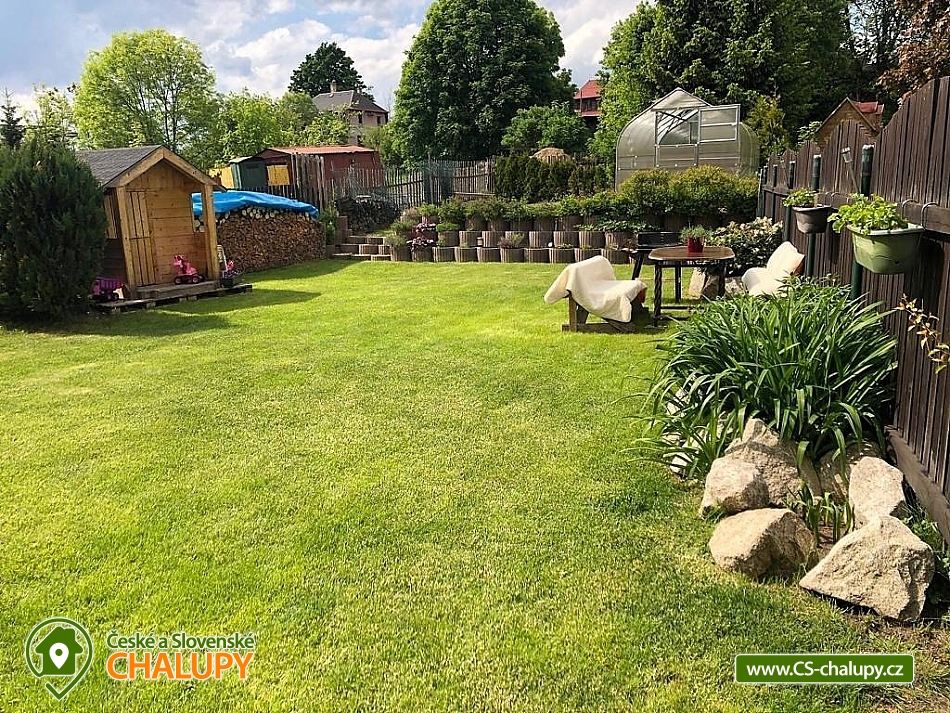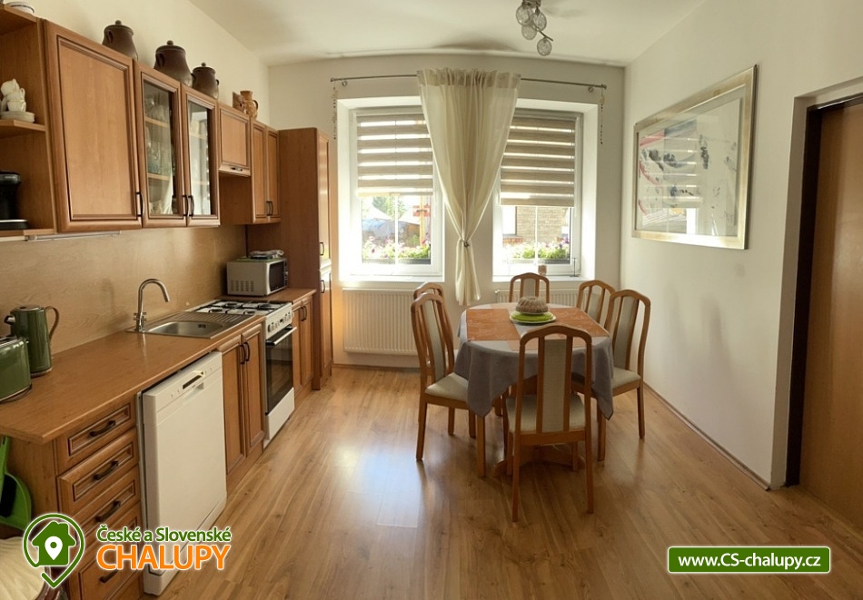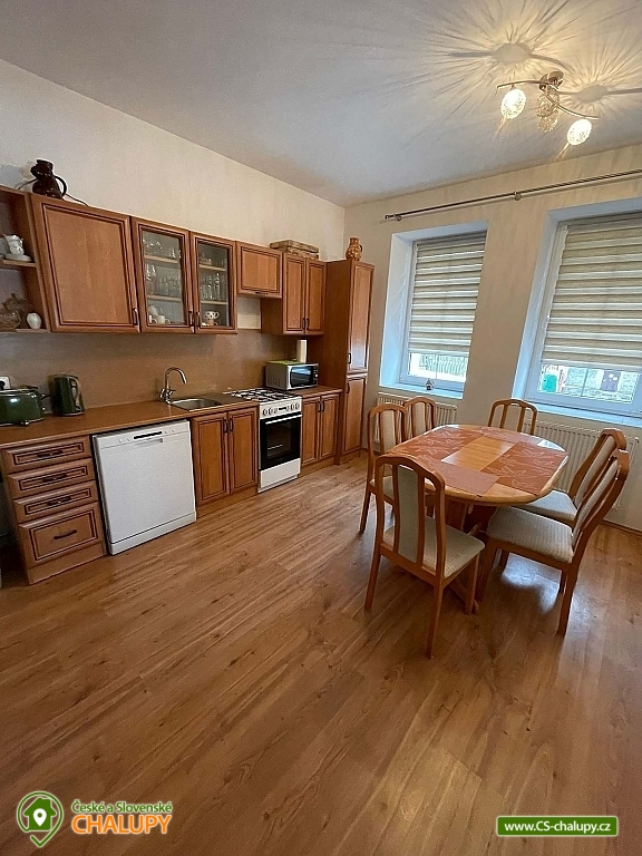 Chalupa k pronájmu - apartmán Krušné hory v těsné blízkosti areálu Plešivec. Apartmán je umístěný v přízemí vkusně zrekonstruovaného třípodlažního domu se zahradou. Možnost využití zahrady s posezením, grilem a ohništěm. Apartmán Vám nabízí ubytování pro až 7 osob ve dvou pokojích (manželská postel a patrová postel + manželská postel a samostatné lůžko), plně vybavenou kuchyň s jídelním koutem a koupelnu s vanou a toaletou. Kuchyň je plně vybavená - lednička, myčka, sporák, mikrovlnka, varná konvice. Vytápění objektu je plynové ústřední. Parkování je zajištěno v létě pro 2 auta, v zimně min 1 parkovací místo, dle sněhových podmínek. Úschova kol a lyží je k dispozici v objektu. Venkovní posezení na zahradě s grilem a ohništěm. Nejbližší restaurace i obchod jsou umístěny na náměstí v Abertamech cca 100m od apartmánu. Abertamy leží v Krušných horách, nedaleko státní hranice s Německem, zhruba 7 km západně od Jáchymova. Skiareál Plešivec lyžařům nabízí perfektně upravené sjezdovky, 3 nové moderní 4 sedačkové lanovky, 100% zasněžování, dětský park, ski půjčovny včetně servisu, lyžařskou školu a bezplatné parkoviště. Lyžování zajišťuje také Boží Dar, Klínovec, Pernink, Potůčky. V okolí apartmánu jsou ideální terény pro běžkaře (Pernink, Boží Dar, Klínovec) s možností napojení na Krušnohorskou magistrálu. Pro letní měsíce jsou zde tenisové kurty a možnost pěších výletů nebo cyklotrasy. Obec má autobusové spojení s Ostrovem, Karlovými Vary, ale i Potůčky, kde je přechod do Německa pro pěší nebo vlakem, na Božím daru je přechod pro automobily a pěší. Těšíme se na Vás u nás.
