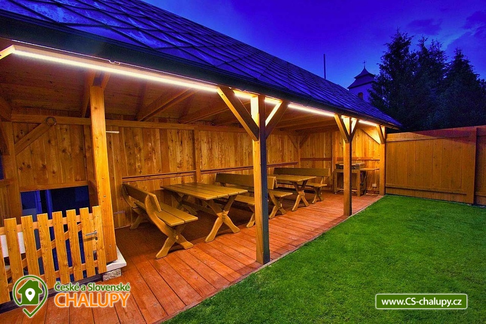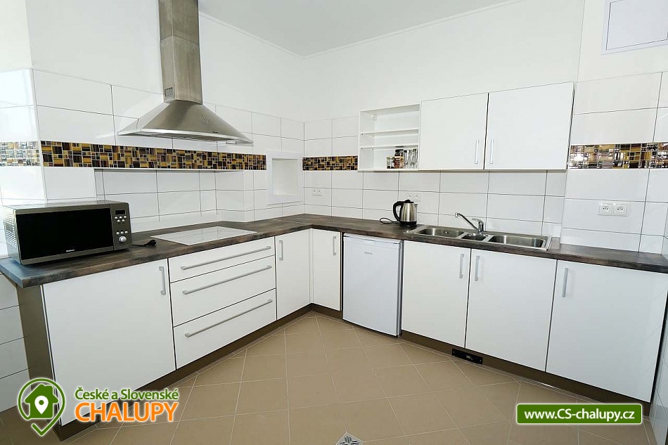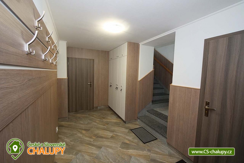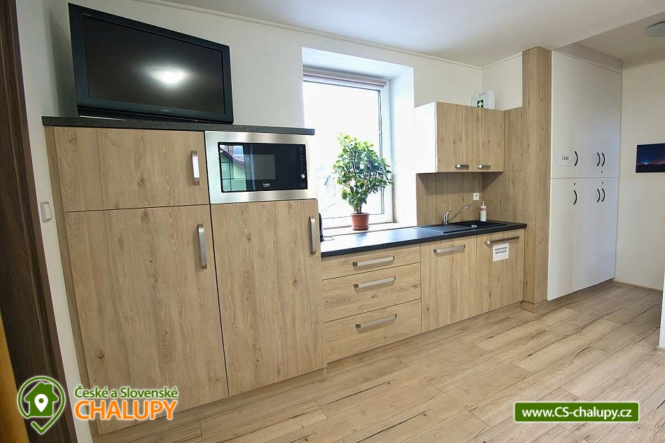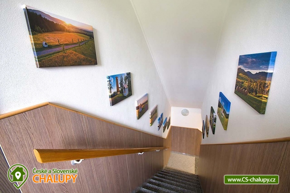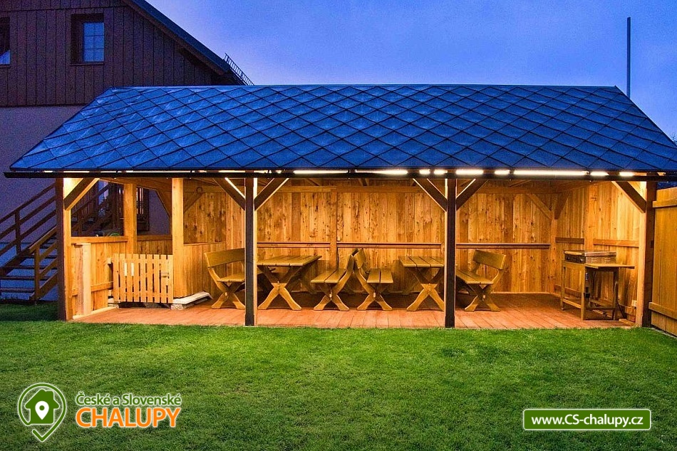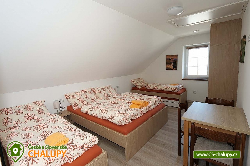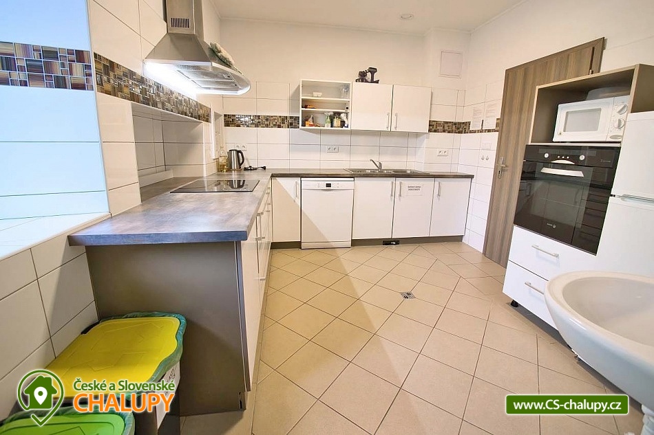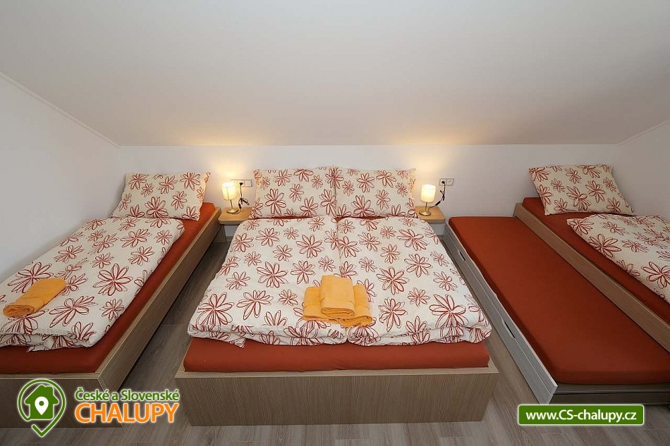 The U Jelena house with wellness and outdoor pool is located in a quiet and pleasant environment in the small village of Šanov near Červené Vody in the Orlické Mountains, near the town of Králíky. Due to its location, it offers a lot of options for spending time actively or just relaxing. In winter, the close proximity of the ski areas SKI areál Šanov, Skipark Červená Voda and Resort Dolní Morava and several tens of kilometers of cross-country trails is an advantage. The benefit of the village of Šenov is its impassability and thus little car traffic. The three-storey House U Jelena provides accommodation for 18 people in 4 bedrooms with private bathroom facilities. There are a total of 14 fixed beds and 4 extra beds with a full-size pull-out bed. On the first floor there are two triple bedrooms with an extra bed (1x double bed with pull-out bed and 1x single bed). On the second floor, there are two four-bed bedrooms with an extra bed (1x double bed, 1x single bed with pull-out bed and 1x single bed). The rooms also include a wardrobe and a table with chairs. A cot is available for rent. There is a large common room on the ground floor with a bar and taproom, 32 seats, TV, Xbox Kinect and table football. The ground floor also includes a large, fully equipped kitchen (microwave oven, convection oven, ceramic hob, extractor fan, dishwasher, 2x kettle, 2x fridge, large sink and dining service for approx. 35 people). The ground floor is entered through an entrance hall with a shoe rack and a room for sports equipment. Upstairs, you can spend time in the second smaller common room with 10 seats, TV, radio and a fully equipped kitchen (fridge, microwave oven, ceramic hob and sink). You can relax in the relaxation zone with sauna and whirlpool. WIFI internet connection is available throughout the building. The sanitary facilities include one bathroom in each room with a shower corner with a thermostatic battery, a toilet, a sink, a mirror, a heating ladder and a fan. The large common room has separate men's and women's toilets. Heating is provided by a heat pump with underfloor heating. A central recuperation unit takes care of the air supply and cleanliness here. In the grassy garden there is a spacious covered terrace with seating and a barbecue. In warm weather, the outdoor pool will delight. Children will appreciate the climbing frames with a slide. There is a storage room for bikes and skis. You can park directly at the building. In the vicinity of the building, hiking, cycling, swimming, fishing, mushroom picking, cross-country skiing and skiing are possible. Tennis courts and riding stables are nearby. Swimming options include, for example: Králíky, Štíty - Acrobat Park, Jablonné nad Orlicí swimming pool, Ruda nad Moravou swimming pool, Mezilesí swimming pool, Pastviny dam, Hynčice pod Sušinou - Úžas pond, Šumperk - Bratrušák swimming pool, Letohrad swimming pool, Šumperk pool - Aquacentrum , etc. In winter, nearby ski resorts are available: Šanov, Červená Voda - Buková hora, Ovaz Výprachtice, Turek, Dolní Morava - Větrný vrch and others. The Králíky Museum of Military Technology, the Hora Matky Boží Hedeč Monastery, the Křížová Hora Lookout, the Suchý vrch Lookout with wellness and restaurant, Dolní Morava - Trail in the Clouds, the Rope Bridge, the Mammoth Roller Coaster, the Mammoth Experience Park and the bobsled track, etc. Hůrka Fortress, Bouda Fortress, Letohrad Biathlon Complex or Lanškroun Castle. We look forward to seeing you here.