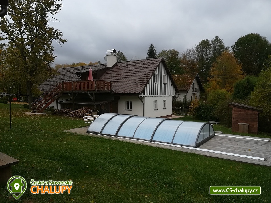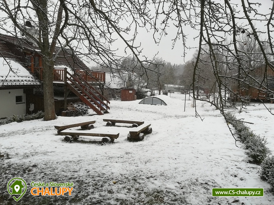Cottage Snezenka - swimming pool - accommodation Snezne. The cottage is situated in a quiet part of the village, the total capacity of the cottage is 16 people (15 + 1 extra) in three bedrooms. The apartment is located on the ground floor with a capacity of 4 beds. The upper floor of the cottage has 2 bedrooms. The first bedroom with a capacity of 7 beds and the second with a capacity of 4 beds + extra bed (slide-out bed). In the cottage you will find two fully equipped kitchens (electric kettle, microwave oven, stove, cooker, fridge, basic kitchen utensils and utensils), 2x satellite TV, Wi - Fi connection, freezer, vacuum cleaner, baby chair, potty, baby cutting board, small toys, shoe dryer. The apartment has a bathroom with shower and toilet. On the ground floor there is a separate toilet and on the upper floor there is a bathroom with shower and toilet. Heating is provided by electric heaters and tiled stoves - distribution to the upper floor of the cottage. For outdoor use is available grill, vildlice toasting, outdoor fireplace with sitting, terrace with sitting, roofed pergola, sandpit playground, natural football / volleyball ..., swimming pool, ski - bike. The cottage is accessible by car from Dobruška in the direction of Ohnišov, Bohdašín or from Dobruška in the direction of Bačetín, Bystré, at the junction “Na Krahulci” turn left to Sněžná - the road is less accessible in winter. The cottage is located by the road. Parking directly at the cottage for about 6 cars. Attractions and museums: pilgrimage site Rokole (3km), Archeoskanzen Villa Nova (20km), funicular, museum of winter sports tourism and crafts, trout fryer - Deštné v Orlických horách (11km), Utz's mechanical nativity scene - Olešnice v Orlických horách (5km) , Renaissance town hall, local history museum, birthplace of František Ladislav Hock (FL Age) - Dobruška (13km), town museum Nové město nad Metují, regional museum - Náchod, pilgrimage site Studánka u Dobrušky (12km), Jewish cemetery Podbřeží (18km).