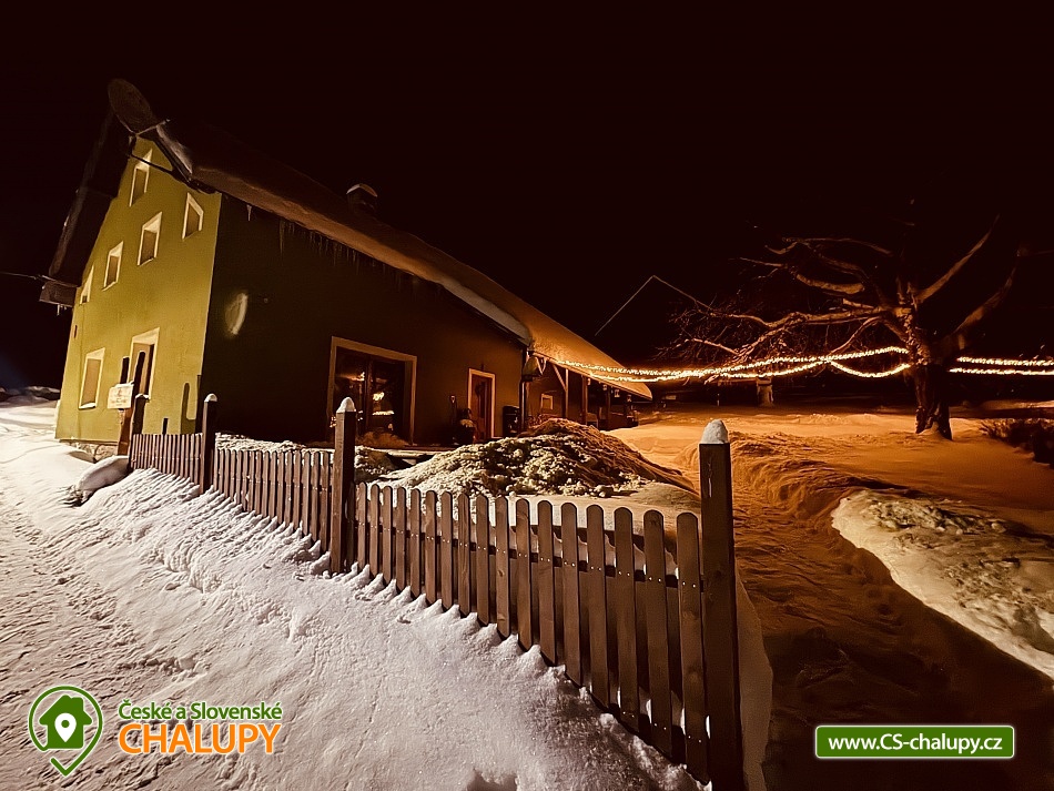 The cottage U Franze is located in the immediate vicinity of the Kralický Sněžník National Nature Reserve in the Sklené settlement near the Malá Morava village and only 5 km from the Dolní Morava ski resort. You can look forward to the proximity of the forest, a large garden and relaxation in the hot tub or sauna. Chalet U Franze offers accommodation for 11 people in four bedrooms. There are a total of 3 double bedrooms with a double bed and one four-bed bedroom with an extra bed (folding chair). A cot is available for rent. Cottage U Franze has two above-ground floors. On the ground floor there is an entrance hall with storage spaces. There is also a common room with a sofa set, comfortable armchairs, a dining table for 10 people, a TV with Netflix or YouTube and board games. The room includes a fully equipped kitchen (fridge, microwave oven, hotplate, hot air oven, kettle, coffee machine for coffee beans and a sufficient amount of dishes). Adjoining the room is a bedroom with a continental bed, chest of drawers, bedside tables, armchairs and a coffee table. The ground floor also includes a relaxation room with sauna and cooling shower and a bathroom with shower, sink and two mirrors and one separate toilet. Three more bedrooms are located in the attic. Two smaller ones with a double bed (160x200cm), chest of drawers and armchairs. The last bedroom is more suitable for its equipment as a children's room, there are two bunk beds (90x200 cm), also suitable for an adult. The bedroom also includes a children's corner with toys and one folding chair as an extra bed. There is also a bathroom with shower and toilet on the first floor and one separate toilet with urinal. Heating is provided by a solid fuel boiler. WIFI internet connection is available throughout the building. The cottage is surrounded by a spacious garden, which includes a covered terrace with a relaxation area, as well as an uncovered terrace with deckchairs, which will provide pleasant sunbathing until late in the evening. In the garden there is a swimming pool with salt water (in the summer months), a hot tub with a hot tub, a cooling pond, fruit trees and bushes that you can use when the fruit is ripe. There is a grill and a fire pit. Children will appreciate the climbing frames with a slide and swings, a sandpit and, in the summer months, a trampoline. You can park directly at the building. There is a charger for electric cars. In the surroundings of the cottage, hiking, cycling, swimming, mushroom picking, fishing, cross-country skiing and skiing are possible. There are also tennis courts and a riding stable nearby. A part of the nearby area is Dolní Morava, the longest suspension bridge in the world, Sky Bridge 721, Trail in the Clouds, Mammoth roller coaster, Adrenaline park, Trial Park, bobsled track and many other amazing attractions. Swimming options include, for example: Králíky swimming pool, Hynčice pod Sušinou - Úžas pond, Mezilesí swimming pool, Ruda nad Moravou swimming pool, Velké Losiny - thermal baths, Velké Losiny thermal swimming pool, etc. Nearby ski resorts are available: Dolní Morava - Sněžník, Malá Morava - Vysoká, Dolní Morava - Větrný vrch and others. The Pastviny Water Reservoir and the Dlouhé Strane Water Reservoir, as well as Velké Losiny Hand Paper Mill, Staré Město Military Museum, Hanušovice Brewery Museum or the Hůrka Artillery Fortress and the Hora Matky Hedeč Monastery near the town of Králíky, also beckon for trips in the area. We look forward to seeing you here.