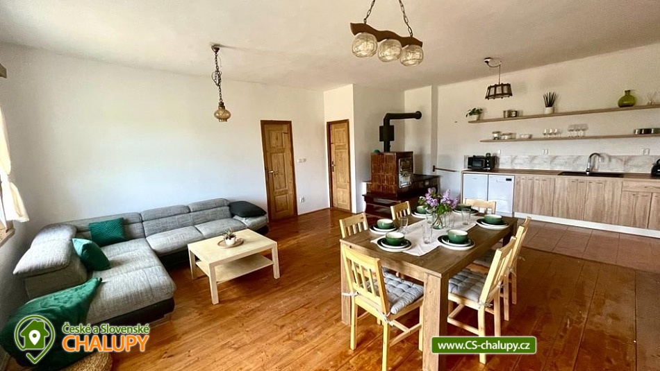Chalupa s bazénem a koupacím sudem v Orlických horách. Nabízíme pronájem chalupy pro až 13 osob (možnost dvou přistýlek) sestávající se ze 2 apartmánů. Objekt je možné pronajmout jako chalupu 1 skupině klientů v soukromí, možný je i pronájem jednotlivým apartmánů samostatně. Vybavené kuchyně, jídelny, koupelny a WC pro každý apartmán. Zajímavostí je samostatné vytápění kachlovými kamny, na kterých je možné i vařit. Apartmán Iveta je samostatný třípokojový apartmán s 5 lůžky + 1 přistýlka kterému dominují velká původní kachlová kamna, je tedy na Vás, jestli je využijete kromě topení i na vaření nebo jestli budete vařit v nové, plně vybavené kuchyni. Apartmán je kompletně vybavený, včetně čistých ručníků, prostěradel, povlečení postelí a kapslí do myčky. Potřebujete tedy jen své oblíbené bačkory a dobrou náladu. Kuchyně je nově vybavena lednicí, myčkou, indukčním dvouplotýnkovým vařičem, varnou konvicí, mikrovlnkou, kávovarem De'Longhi, sklenicemi, nádobím, příbory. Obývací pokoj s prostornou sedací soupravou, LED televizí a jídelním stolem pro 6 lidí. Útulná ložnice s manželskou postelí a krásným výhledem do přírody a samostatný pokoj se dvěma lůžky, a jedno lůžko v obývacím pokoji, koupelna se sprchovým koutem, vysoušečem vlasů a samostatným WC. Apartmán Lenka je samostatný prostorný a světlý apartmán s dispozicí 1 + 1 (6 lůžky + 1 přistýlka) kterému dominují funkční kachlová kamna na topení i případné vaření. Apartmán je kompletně vybavený, včetně čistých ručníků, prostěradel, povlečení postelí, kapslí do myčky, pracím práškem. Kuchyně je nově vybavena lednicí, myčkou, indukčním dvouplotýnkovým vařičem, varnou konvicí, mikrovlnkou, kávovarem De'Longhi, sklenicemi, nádobím, příbory. Obývací část kuchyně má jedno lůžko + přistýlku, LED televizí a jídelním stolem, útulná velká místnost s dispozicí 2x manželská postel a 1x jednolůžková postel s krásným výhledem do přírody. Dále prostorná koupelna se sprchovým koutem, vysoušečem vlasů, pračkou a samostatným WC. V objektu je bezdrátové připojení na internet. V ceně pobytu je možnost využití veškerého vybavení chalupy, venkovní posezení pod pergolou, vyhřívaného bazénu. Orlické hory jsou pohoří a geomorfologický celek v severovýchodních Čechách, při hranici s polským Kladskem. Nejvyšším vrcholem je Velká Deštná, dosahující nadmořské výšky 1 116 m. Název pohoří je odvozen od řeky Orlice, která tudy po česko-polské hranici protéká. Přírodní rezervace Zemská brána se nachází v Orlických horách na toku řeky Divoké Orlice na území od hranic s Polskem po Klášterec nad Orlicí. Doporučujeme navštívit Tvrz Hanička, ta patřila do systému předválečného opevnění.