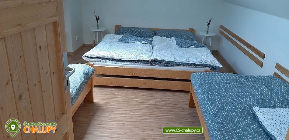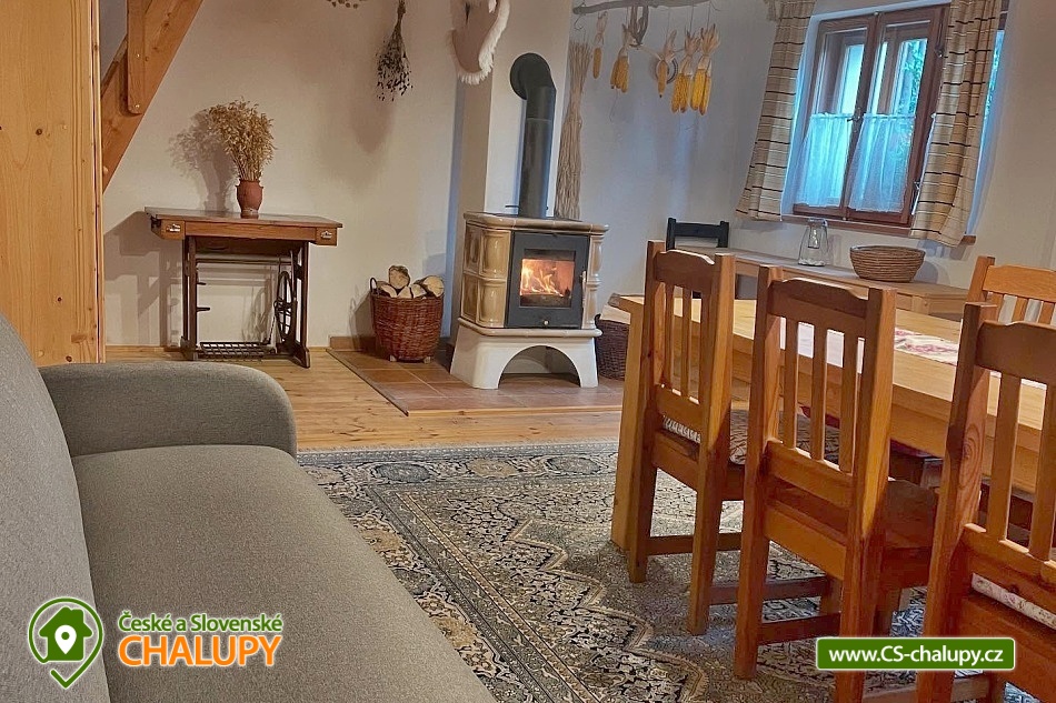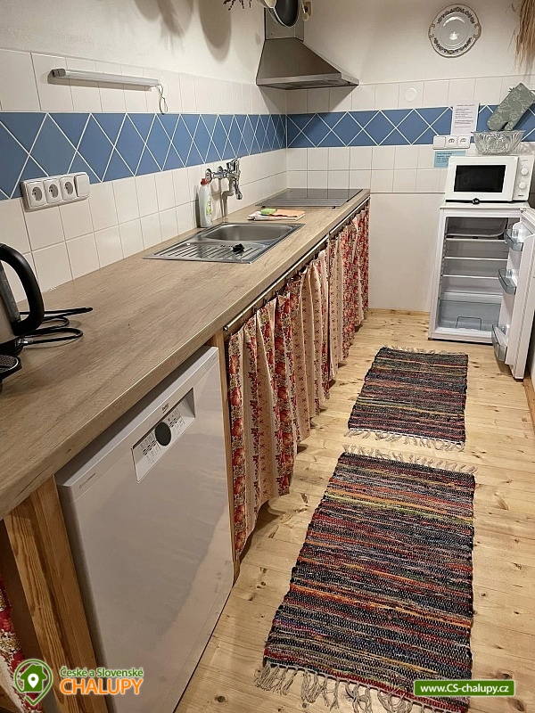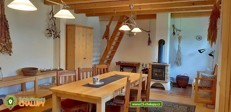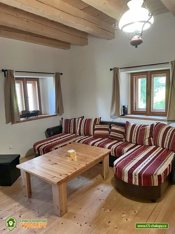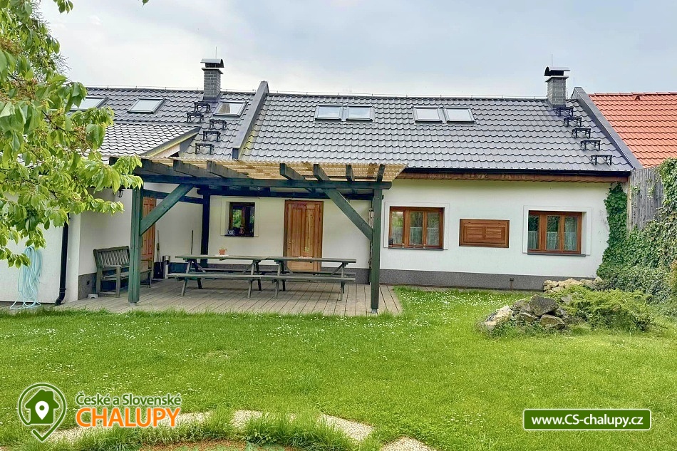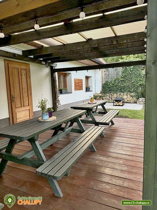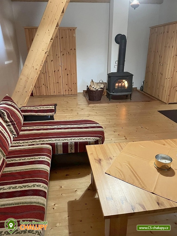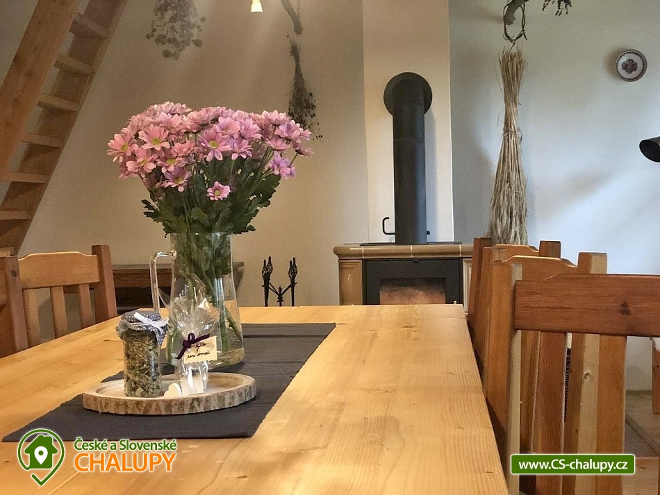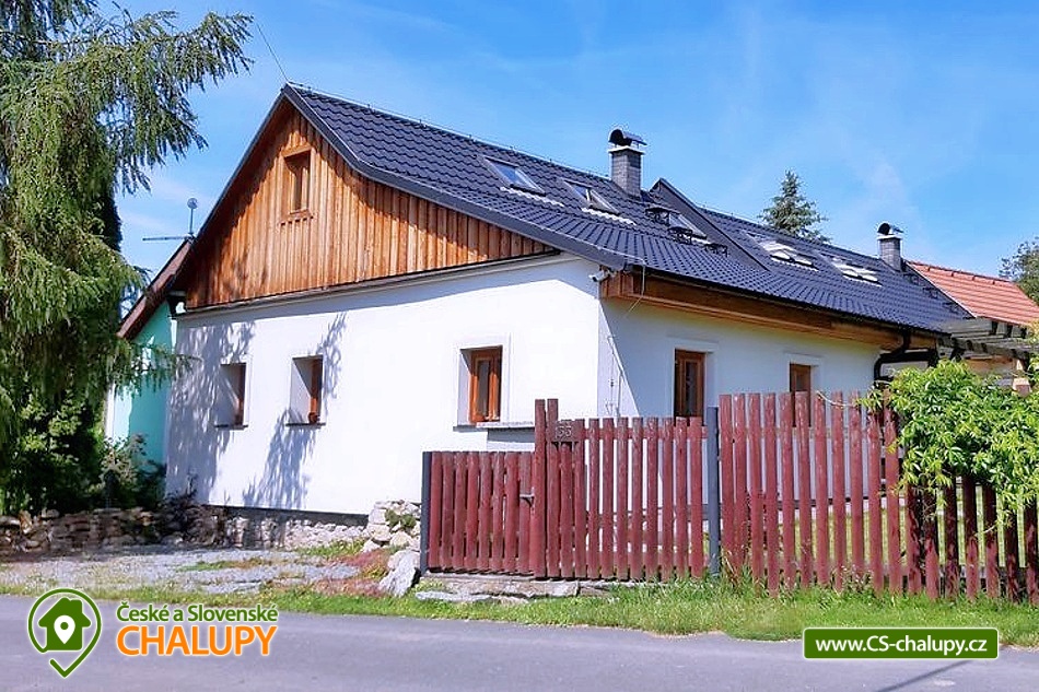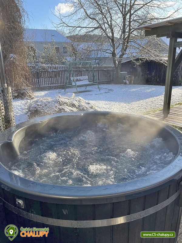 The renovated Chalupa Vranová is located behind a picturesque chapel in the village of Vranová Lhota, located in quiet forests between Moravská Třebová and Mohelnice near the fairy-tale Bouzov Castle. You can look forward to comfortable accommodation and plenty of options for trips. Chalupa Vranová offers accommodation for 13 people in two separately rented two-story apartments - apartment Je and apartment eM. The cottage can also be rented as a whole. Both apartments have their own entrance, bathroom and kitchen. Apartment Je has a capacity for 6 people. There is an attic six-bed bedroom with 1 double bed and 4 single beds. Steep stairs lead to the bedroom from the living room. Apartment eM has a capacity for 7 people in two bedrooms located in the attic, which are accessed by traditional mill stairs. There is a walk-through triple bedroom with 3 single beds and one separate quadruple bedroom with 1 double bed and 2 single beds. In both apartments, there is a living room with a fireplace and a sofa on the ground floor. The apartments also have a dining table and a fully equipped kitchenette. In the Je apartment there is an electric stove with an oven, in the eM apartment there is a glass-ceramic hob. Of course, there is a fridge with a freezer, a dishwasher and a microwave. The sanitary facilities in both apartments include one bathroom with a shower and a washbasin and one separate toilet with a washbasin. Heating is provided by a fireplace and electric heaters. WIFI internet connection is available throughout the building. For the possibility of pleasant rest and peace, there is no TV in the apartments. Outside, there is a seating area prepared for all guests on a roofed terrace. There is also a grill and a fireplace. You can relax in a hot tub or on an outdoor swing. In the summer months, you will enjoy a 3m diameter plunge pool. You can park directly at the property. The parking lot is guarded by a camera system. There is a bicycle storage room. In the vicinity of the cottage, there is the possibility of hiking, cycling, swimming and mushroom picking. Swimming options include: aquapark Moravská Třebová, natural swimming pool Městečko Trnávka, swimming pool Loštice, swimming pool Rozstání, swimming pool Chronice, swimming pool Moravacamp, swimming pool Mohelnice, swimming pool Mohelnice, etc. The Renaissance chateau Moravská Třebová, the ruins of the Vranová Lhota castle, Cimburk, Radkov or the nearby Javoříčské and Mladečské caves attract tourists. We look forward to seeing you.