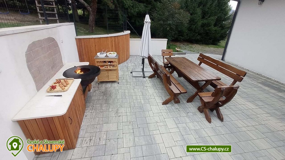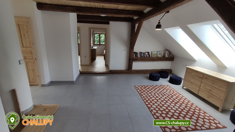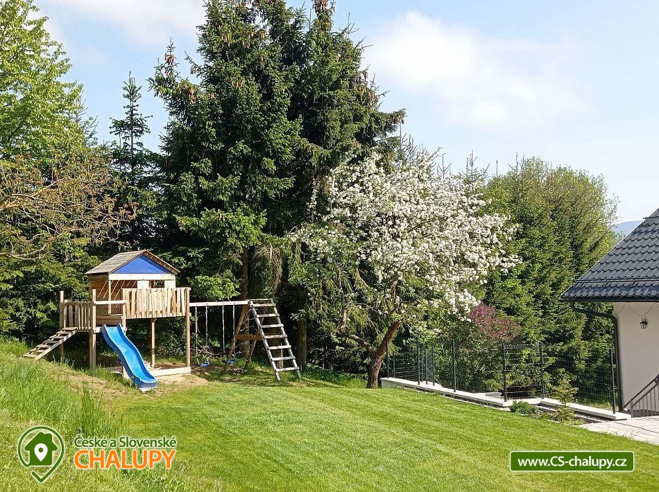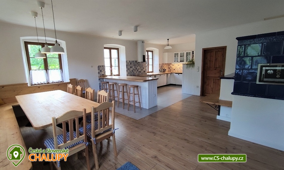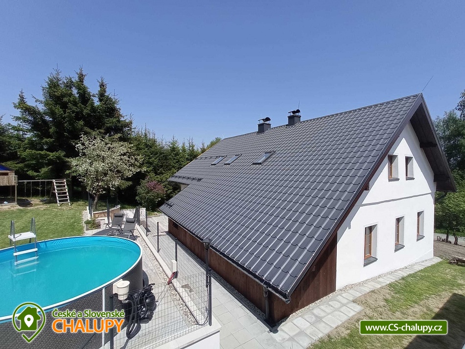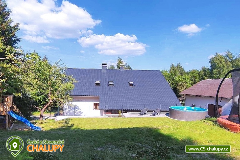 Chalupa s bazénem a saunou nedaleko vyhlášeného střediska Dolní Morava. Poloha v malebné krajině na rozhraní Orlických hor a Jeseníků v oblasti Králického Sněžníku. Kapacita chalupy je až 17 osob ve 4 ložnicích. POPIS chalupy: Přízemí - prostorná kuchyň s velkou jídelnou, barovým pultem, kachlovými kamny s pecí a troubou, dále hrací koutek pro nejmenší děti. Vedle kuchyně je komora s regály na potraviny. Vybavení kuchyně: myčka, digestoř, elektrická trouba, dva vestavěné elektrické sporáky, dvě ledničky s mrazákem, mikrovlnná trouba, veškeré nádobí, hrnce, příbory. Společenská místnost s TV, prostorným gaučem, stolním fotbálkem a šipkami. V přízemí dále pokoj pro bezbariérové ubytování (2x jednolůžko). Koupelna s WC, vanou a bezbariérovým sprchovým koutem a pračkou se sušičkou. Patro - Pokoj č.1: tři lůžka, komoda, skříň. Pokoj č.2: čtyři lůžka, komoda, skříň. Pokoj č.3: pět lůžek, komoda, skříň. Pokoj č.4: pět lůžek, komoda, skříň. V patře dále 2x koupelna se sprchovým koutem a umyvadlem, 2x samostatné WC s umyvadlem a společná část s knihovnou a prostorem pro hraní stolních her. Vytápění objektu: podlahové topení s elektrokotlem, kamna s pecí na pevná paliva (dřevo) - přikládání z chodby. Zádveří, které slouží jako šatna. Další místnost pak jako kočárkárna/lyžárna. Kola je možné nechávat v garáži hned vedle chalupy. Příjezd je po obecní komunikaci a parkování je připraveno pro 4 auta. Přímo před chalupou je terasa s posezením a grilem. Dále pak je k dispozici trampolína, hrací domek, bazén, badmintonové hřiště. Za oplocenou částí se nachází ovocný sad a potůček s rybníčkem. V okolí doporučujeme: Resort Dolní Morava - nabízí celoročně množství sportovních, zážitkových a adrenalinových aktivit. Léto: Lanovka pro turisty, bikery i paraglidisty, Mamutí horská dráha, bobová dráha, lanové centrum, Disc Golf Park, Power Fan, Big swing, horolezecká věž. V zimě vyhlášené lyžařské středisko. Rozhledny - Val, Klepý, Stezka v oblacích, Křížová hora, Suchý vrch. Zřícenina Nový hrad Hanušovice, Pivovarské muzeum a pivovar Holba. Velké Losiny - zámek, muzeum papíru, termální aquapark. Těšíme se na Vás u nás.