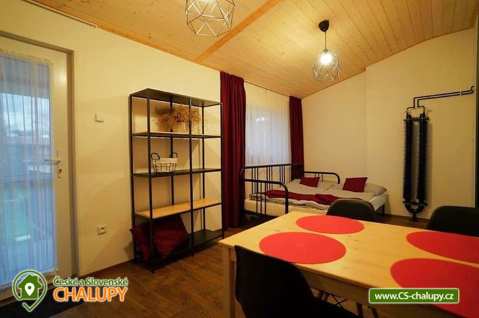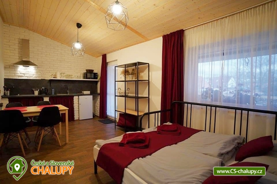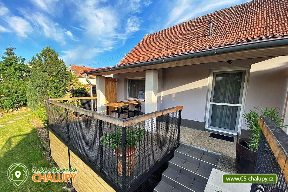 Apartmánová chalupa s bazénem (2 apartmány) a vinným sklípkem na jižní Moravě v rekreační oblasti Pálava v obci Dolní Věstonice - je vám k dispozici baby friendly ubytování, terasa u jezírka, vinný sklípek, společenská místnost, gril, parkoviště (každý ze 2 apartmánů má vlastní parkovací místo), boxy na kola a dětské pískoviště s trampolínou. Chalupa poskytuje ubytování pro až 9 osob ve 2 samostatných apartmánech. Každý apartmán má kapacitu pro až 4 osoby (+ možnost 1 přistýlky) a zahrnuje: vlastní vybavenou kuchyní, ložnici, koupelnou se sprchovým koutem a sociálním zařízením. Apartmány jsou klimatizovány a mají každý svojí vlastní terasu s posezením. V ložnici jsou boxspringové postele, kuchyně jsou vybaveny rozkládací pohovkou s kvalitními matracemi. V každém apartmánu je vybavená kuchyň - mikrovlnná trouba, kávovar, nádobí, varná deska, digestoř. Dětská postýlka je k dispozici na vyžádání. Vytápění - Klimatizace s funkcí topení, popř. centrální vytápění. K dispozici je společenská místnost s plně vybavenou kuchyní s vinným sklepem. Ke každému apartmánu je vinná koje. Ručníky, osušky, povlečení jsou samozřejmostí. Také Gril, Ohniště, Trampolína, pískoviště, houpačky, petang, vše pro Váš klid a pohodu. Obec Dolní Věstonice s tisíciletou vinařskou tradicí najdete severně od Pavlovských vrchů asi 10 km na sever od Mikulova na jižním břehu Novomlýnských nádrží. Téměř celou východní část obce tvoří Sklepní ulice s původními i nově vybudovanými vinnými sklepy. Přímo nad obcí se nachází zřícenina hradu Děvičky a nejvyšší bod Pálavy Děvín. Doporučujeme navštívit: Archeopark Pavlov a zřícenina Sirotčí hrádek, Stezka bosou nohou Schrattenberg – Valtice, Aqualand Moravia, Padleboard - Pavlov, Lednicko Valtický areál a Mikulov - zámek a lom, kde se natáčeli Vinaři a Bobule. Těšíme se na Vás u nás.