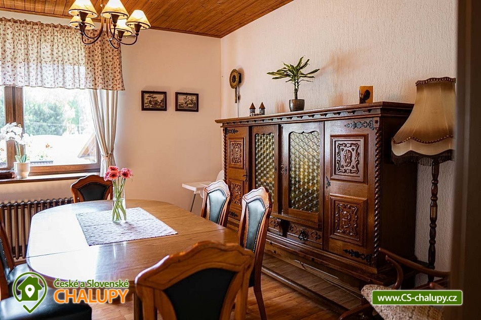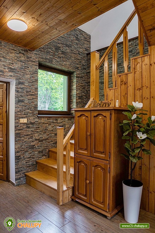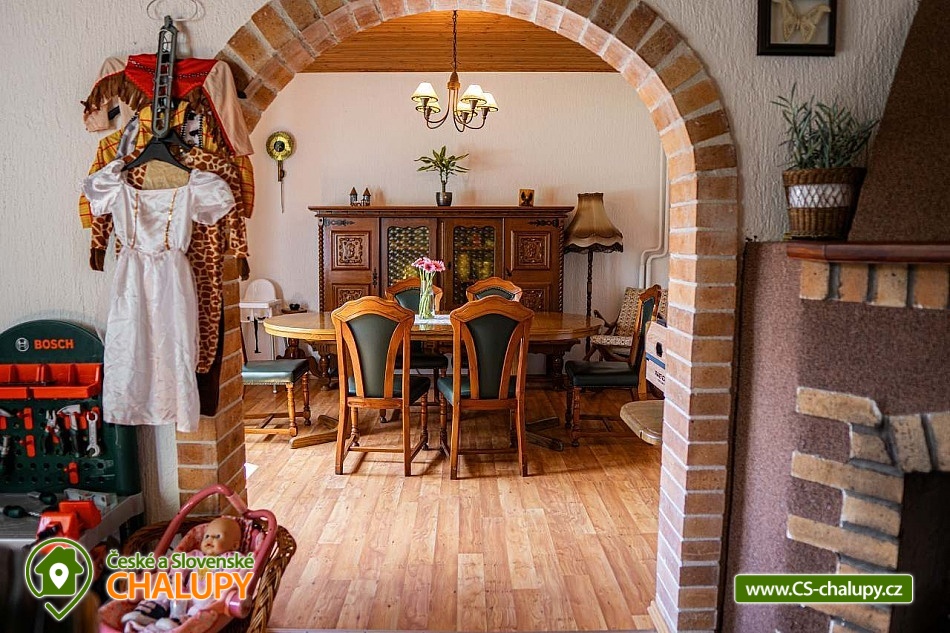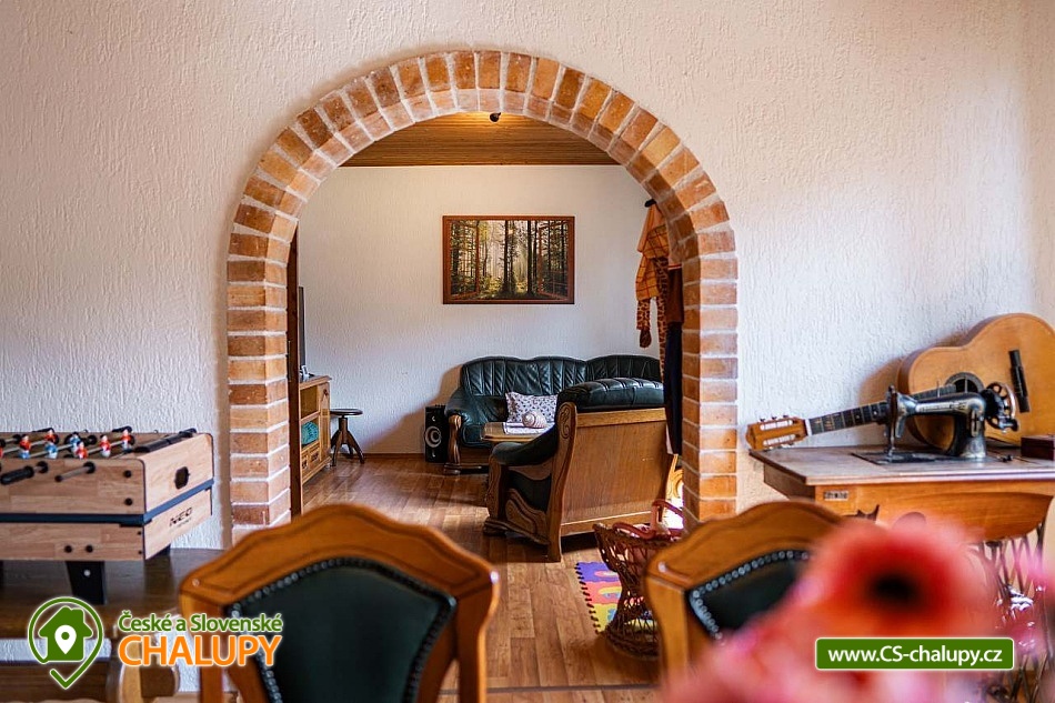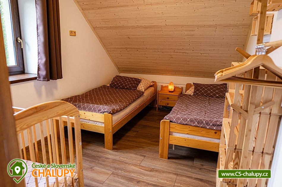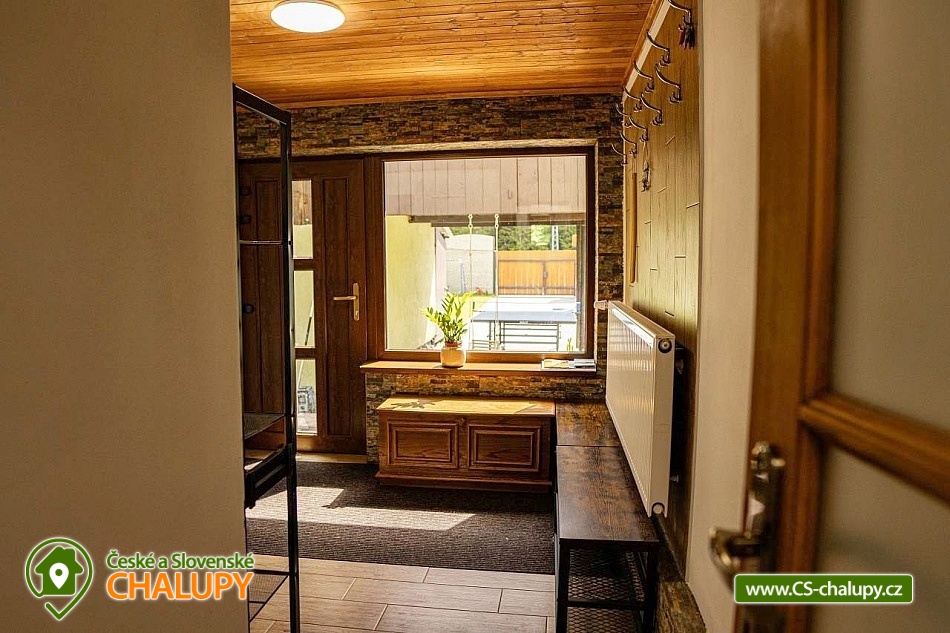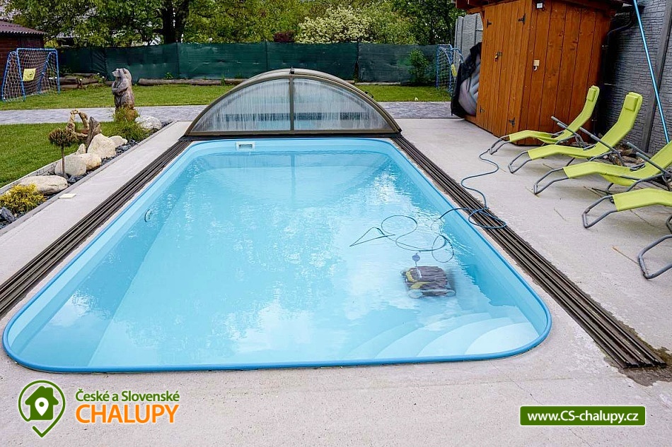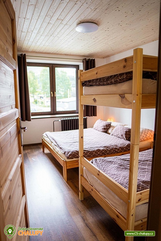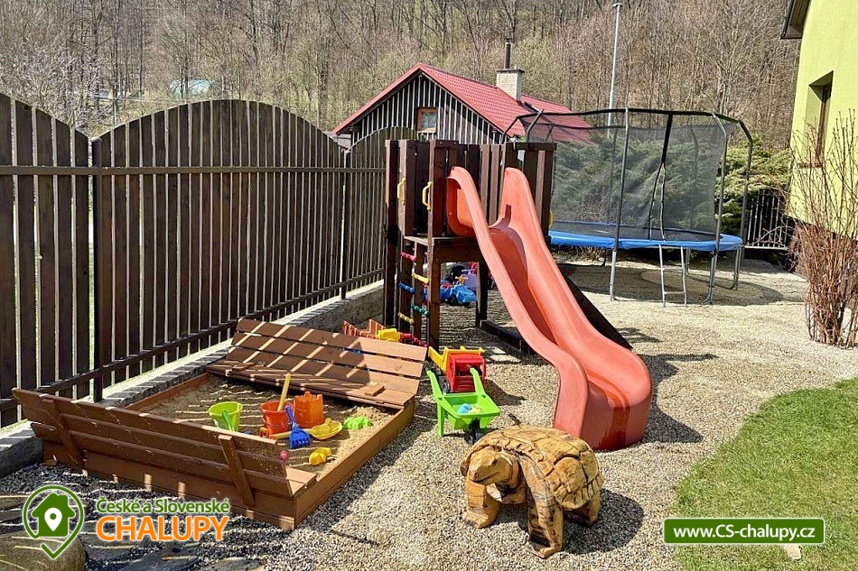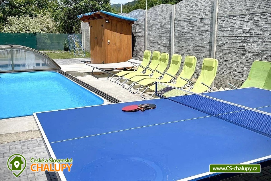 Cottage with swimming pool and jacuzzi - Jeseníky Mountains - Šumpersko. Luxuriously furnished cottage with swimming pool and jacuzzi is located in a quiet part of the village of Rejhotice near the village of Loučná nad Desnou in the beautiful natural landscape of Hrubý Jeseník. Loučná and the nearby Červenohorské sedlo are ideal starting points for a number of hiking and cycling routes. In winter, the advantage is the close proximity to ski areas (approx. 250 m from the cottage). The cottage offers accommodation for 13 people in 4 bedrooms located upstairs. In total, there is a double bedroom (2x single bed + cot), two four-bed bedrooms (1x double bed and 1x bunk bed) and a three-bed bedroom (2x single beds and 1x shortened bed 170 cm suitable as an extra bed). On the ground floor there is a living room with a corner sofa, fireplace, armchair, rocking chair, TV and a children's corner with lots of toys, dolls, stuffed animals, fairy-tale costumes and a small table football. Furthermore, on the ground floor there is a separate fully equipped kitchen (electric stove with oven, dishwasher, refrigerator, microwave, coffee maker, kettle, toaster and toaster). Adjacent to the kitchen is a dining room with a corner bench and a folding table. The sanitary facilities include 2 bathrooms with sink, shower and toilet on the ground floor and 1 separate toilet, and 1 separate toilet on the first floor. There is a washing machine and towels. You must have your own towels. Heating is provided by an electric boiler. WIFI internet access is available throughout the property. The cottage is located on a fenced plot. The garden includes a covered outdoor seating area in a pergola with a fireplace, grill and a small kitchenette with a refrigerator. Next to the pergola is a hot tub, a hanging rocking chair and a 6x3m swimming pool with a roof, deck chairs and a shower. There is also seating by the fireplace and a sandbox, trampoline, slide and swing for children. Darts and ping pong are available for fun. Parking is available directly at the property in the parking lot by the access road. Hiking, cycling, swimming, mushroom picking, skiing and cross-country skiing are possible in the vicinity of the property. Tennis courts and a riding stable are nearby. The village of Loučná includes a wellness centre, swimming pool, mountain mini-karts, scooters, bungee trampolines, a sports field, an outdoor gym, a gym, disc golf, bowling and many other activities. Swimming options include: Velké Losiny Termály, Velké Losiny thermal swimming pool, Rapotín swimming pool, Krásné dam, Šumperk - Bratrušák swimming pool, Šumperk - Aquacentrum swimming pool, Karlova Studánka swimming pool, Jeseník swimming pool, etc. On hot summer days, a walk to the Desná River, which flows almost behind the cottage, will refresh you. In winter, nearby ski resorts are available: OAZA Loučná nad Desnou, Kouty - mountain entertainment and sports center, Červenohorské sedlo, Kareš - Kouty nad Desnou, Přemyslov Ski Resort and others. The surrounding area attracts visitors with its Kocián Complex - skiing, playground, minigolf and skatepark, as well as the Dlouhé stráně Pumped Storage Hydroelectric Power Plant, the Kouty Complex - the longest scooter descent (17 km), bike park, Velké Losiny - thermal baths, chateau and Hand Paper Mill, or the Hanušovice and Praděd Brewery Museum. We look forward to seeing you there.