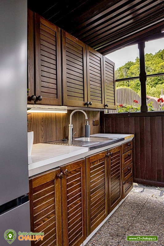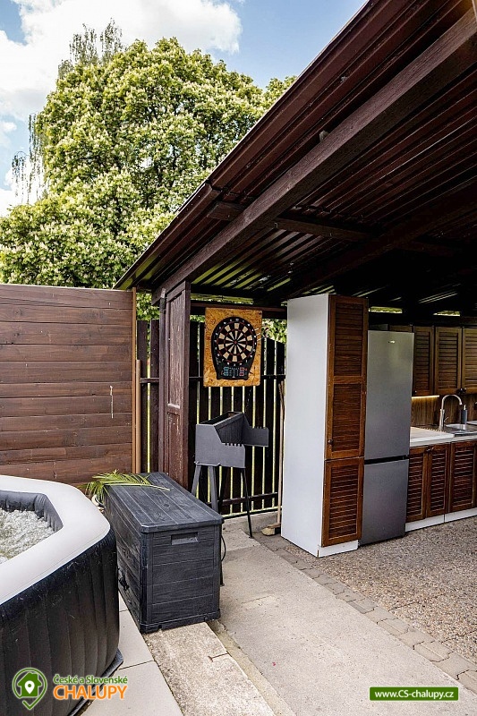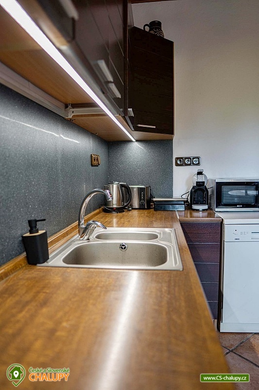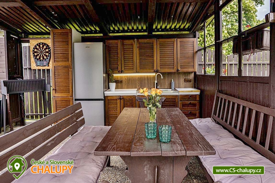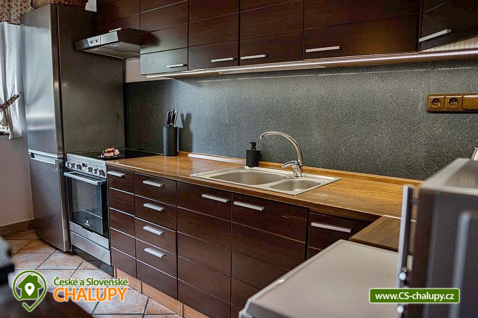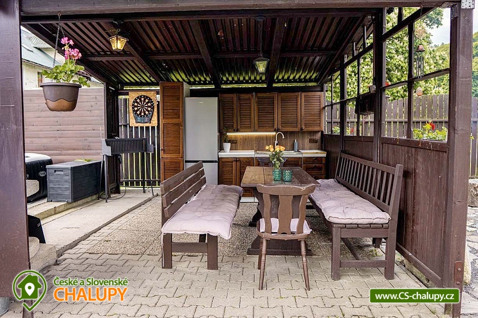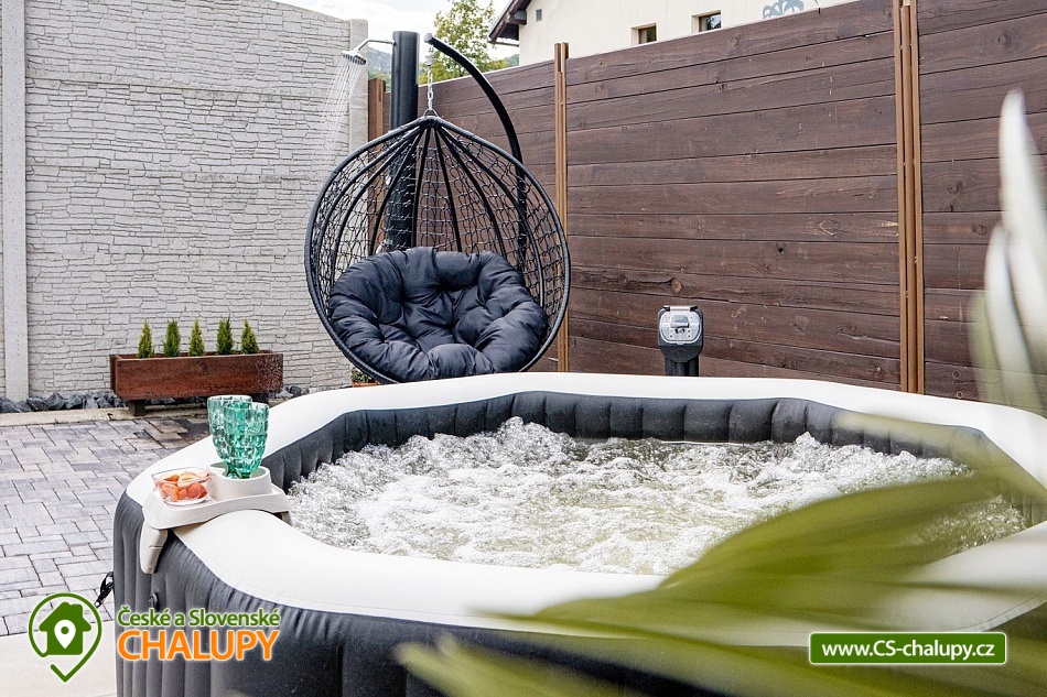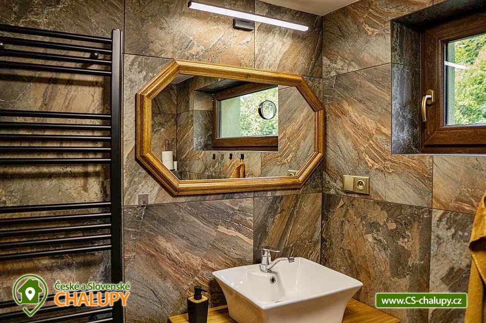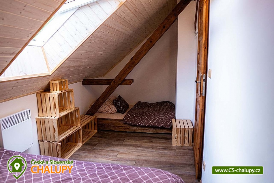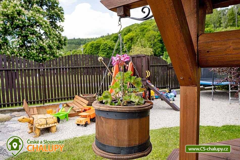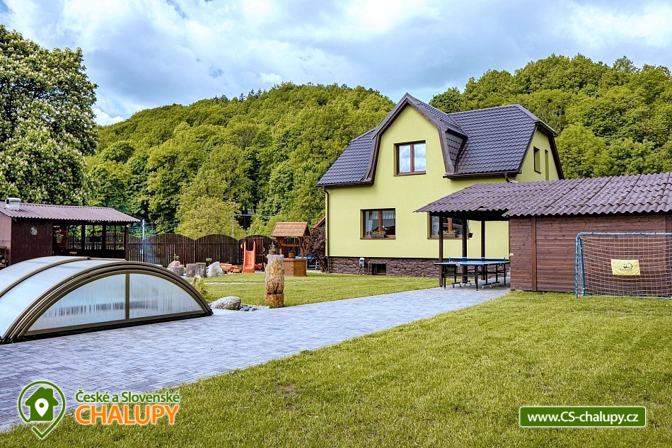 Cottage with swimming pool and jacuzzi - Jeseníky Mountains - Šumpersko. Luxuriously furnished cottage with swimming pool and jacuzzi is located in a quiet part of the village of Rejhotice near the village of Loučná nad Desnou in the beautiful natural landscape of Hrubý Jeseník. Loučná and the nearby Červenohorské sedlo are ideal starting points for a number of hiking and cycling routes. In winter, the advantage is the close proximity to ski areas (approx. 250 m from the cottage). The cottage offers accommodation for 13 people in 4 bedrooms located upstairs. In total, there is a double bedroom (2x single bed + cot), two four-bed bedrooms (1x double bed and 1x bunk bed) and a three-bed bedroom (2x single beds and 1x shortened bed 170 cm suitable as an extra bed). On the ground floor there is a living room with a corner sofa, fireplace, armchair, rocking chair, TV and a children's corner with lots of toys, dolls, stuffed animals, fairy-tale costumes and a small table football. Furthermore, on the ground floor there is a separate fully equipped kitchen (electric stove with oven, dishwasher, refrigerator, microwave, coffee maker, kettle, toaster and toaster). Adjacent to the kitchen is a dining room with a corner bench and a folding table. The sanitary facilities include 2 bathrooms with sink, shower and toilet on the ground floor and 1 separate toilet, and 1 separate toilet on the first floor. There is a washing machine and towels. You must have your own towels. Heating is provided by an electric boiler. WIFI internet access is available throughout the property. The cottage is located on a fenced plot. The garden includes a covered outdoor seating area in a pergola with a fireplace, grill and a small kitchenette with a refrigerator. Next to the pergola is a hot tub, a hanging rocking chair and a 6x3m swimming pool with a roof, deck chairs and a shower. There is also seating by the fireplace and a sandbox, trampoline, slide and swing for children. Darts and ping pong are available for fun. Parking is available directly at the property in the parking lot by the access road. Hiking, cycling, swimming, mushroom picking, skiing and cross-country skiing are possible in the vicinity of the property. Tennis courts and a riding stable are nearby. The village of Loučná includes a wellness centre, swimming pool, mountain mini-karts, scooters, bungee trampolines, a sports field, an outdoor gym, a gym, disc golf, bowling and many other activities. Swimming options include: Velké Losiny Termály, Velké Losiny thermal swimming pool, Rapotín swimming pool, Krásné dam, Šumperk - Bratrušák swimming pool, Šumperk - Aquacentrum swimming pool, Karlova Studánka swimming pool, Jeseník swimming pool, etc. On hot summer days, a walk to the Desná River, which flows almost behind the cottage, will refresh you. In winter, nearby ski resorts are available: OAZA Loučná nad Desnou, Kouty - mountain entertainment and sports center, Červenohorské sedlo, Kareš - Kouty nad Desnou, Přemyslov Ski Resort and others. The surrounding area attracts visitors with its Kocián Complex - skiing, playground, minigolf and skatepark, as well as the Dlouhé stráně Pumped Storage Hydroelectric Power Plant, the Kouty Complex - the longest scooter descent (17 km), bike park, Velké Losiny - thermal baths, chateau and Hand Paper Mill, or the Hanušovice and Praděd Brewery Museum. We look forward to seeing you there.