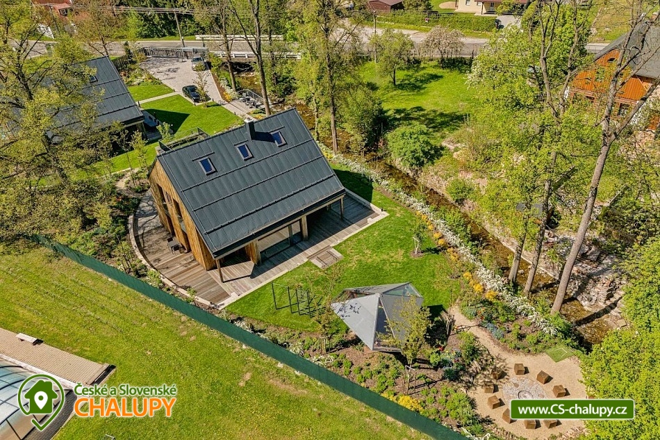 Luxusní chalupa s bazénem a wellness se nachází v krásné přírodě Krkonoš v obci Čistá v Krkonoších v těsné blízkosti obce Černý Důl a Janské Lázně. Chalupa je součástí uzavřeného areálu, jehož součástí je také sousední objekt 5C-324. Ideální místo pro aktivní dovolenou nebo jen odpočinek v každém ročním období, chalupa je svým vybavením vhodná i pro rodiny s dětmi. Těšit se můžete na útulný interiér s dřevěnými prvky, odpočinek u krbu nebo na venkovní terase, na hernu s X Boxem a také na relax v sauně nebo koupání v zastřešeném bazénu. Chalupa s bezbariérovým přístupem poskytuje ubytování pro až 10 osob v 5 ložnicích dvoulůžkových ložnicích s manželskou postelí. V horní části jsou umístěné čtyři oddělené ložnice. V přízemí se nachází samostatný malý apartmán s ložnicí, plně vybaveným kuchyňským koutem (rychlovarná konvice, lednička, myčka nádobí, mikrovlnná trouba, indukční deska, nádobí a mycí prostředky) se sedačkou, TV a koupelnou s WC. Pro ubytované je k dispozici připravené kompletní ložní prádlo a přezuvky. Společné chvíle lze trávit v obývacím pokoji s velkou sedačkou, ze které je možné se pohodlně dívat do krbu a na TV. Na obývací pokoj navazuje plně vybavená kuchyň s indukční deskou, horkovzdušnou troubou, mikrovlnnou troubou, lednicí s mrazákem, myčkou nádobí, espresso kávovarem na zrnkovou kávu, rychlovarnou konvicí, sedvičovačem, toastovačem, mycími prostředky a dalším kuchyňským vybavením. U kuchyně je umístěný prostorný jídelní kout pro 10 osob. V horní části domu ocení malý nocležníci, ale i dospělí herní místnost s odpočinkovými vaky a TV s nejnovější konzolí XBOX ONE X s širokou nabídkou her. K dispozici je také mnoho deskových a karetních her. Do herny se děti dostanou buď po schodišti, anebo po horolezecké stěně. Součástí vily je samostatná technická místnost, kde si můžete uložit sportovní vybavení, usušit prádlo a boty. Je zde umístěná pračka se sušičkou. V celém objektu k dispozici WIFI připojení na internet. Sociální zařízení zahrnuje 4 koupelny se sprchovým koutem a WC, dvě jsou umístěné v patře a dvě v přízemí. K dispozici jsou fény, WC papír, mýdlo na ruce, předložky, ručníky, osušky, župany a prostěradla do sauny. Vytápění je řešeno podlahovým topením, rekuperací a krbem v obývacím pokoji. V horní části chalupy jsou pokoje klimatizované. Pro odpočinek slouží horní venkovní odpočinková terasa, venkovní posezení s grilem a přístupem do zastřešeného vyhřívaného bazénu se slanou vodou. Relax nabízí také sauna. V areálu lze využívat i pohodlné sezení na terase u potoka. V areálu je také možné si zahrát míčové hry, vymyslet bojovku, pozorovat přírodu z Kukaně, dovádět u potoka nebo rozdělat oheň. Parkovat lze přímo u objektu. K dispozici je nabíječka pro elektroauta. V okolí možnost turistiky, cykloturistiky, koupání, houbaření, lyžování a běžkování. V blízkosti je také jízdárna, tenisové kurty, golfové hřiště a bowling. Mezi možnosti koupání patří např.: aquacentrum Vrchlabí, koupaliště Čistá, aquacentrum Jánské Lázně, rybník Vejsplachy, koupaliště Retro park Sejfy, koupaliště Dolní Kalná, koupaliště Valteřice, Trutnov - Pekelský rybník, rybník U Mlejna, koupaliště Jilemnice, rybník Dolce, přehrada Labská, bazén Jilemnice, atd. V zimním období blízká lyžařská střediska: Černá hora - Černý Důl, Horní Lánov, Černá hora - Jánské Lázně, Ski Family - Dolní Dvůr, Košťálka, Svoboda nad Úpou, Dolní Dvůr - Luisino údolí, Vrchlabí - Kněžický vrch, Strážné, Pec pod Sněžkou, Herlíkovice - Bubákov a další. K výletům v okolí láká Černohorské rašeliniště, Krkonošský národní park, Stezka korunami stromů Krkonoše, Zoologická zahrada Dvůr Králové nad Labem, zámek Kuks, Harrachov – sklářské muzeum s možností návštěvy hutě, Mumlavský vodopád, Vrchlabí, Jilemnice a nejvyšší vrchol ČR Sněžka. Těšíme se na Vás u nás.