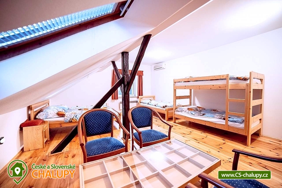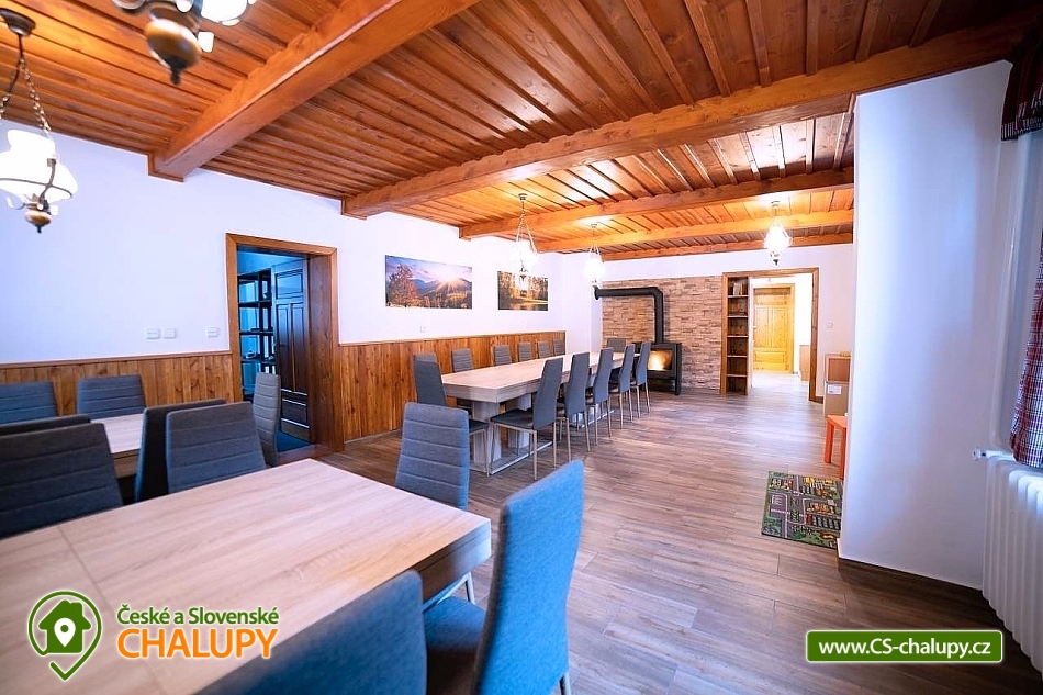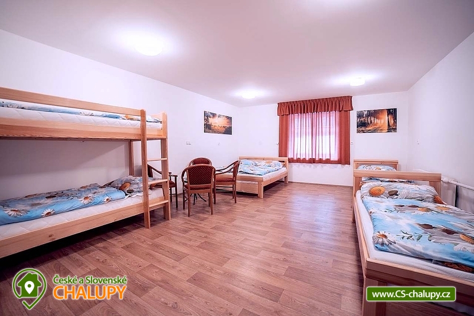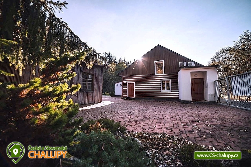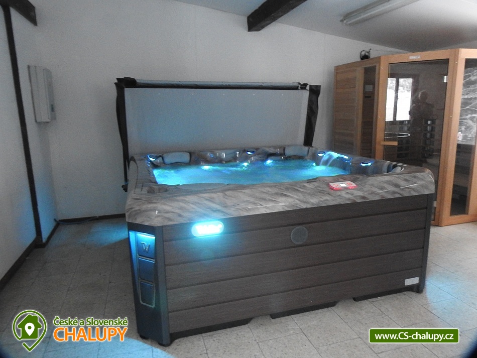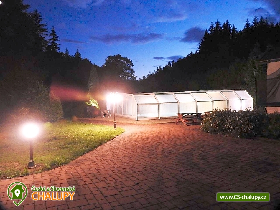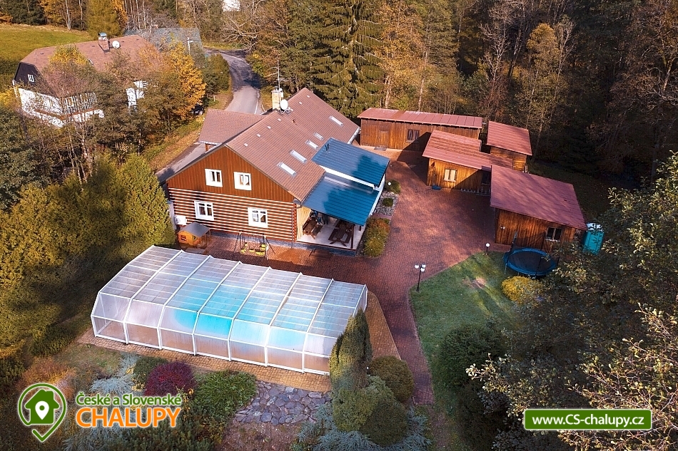 Chalupa s vyhřívaným bazénem a wellness (whirlpool a sauna) se nachází u říčky Olešanka, poloha nedaleko obce Sněžné v krásné přírodě Orlických hor. Skvělé místo pro srazy rodin a přátel, pro rodiny s dětmi i různé oslavy. Kapacita chalupy je až 30 osob v 6 ložnicích. Krytý osvětlený venkovní bazén se slanou vodou 5x10 m s protiproudem a posezením uvnitř (zastřešení 8x14 m). Bazén je vyhříván tepelným čerpadlem - koupání květen až září. POPIS: 1. ložnice 1x dvojlůžko + 2x jednolůžko (max 4 osoby). 2. ložnice 1x dvoulůžko + 1x patrová postel + 1x jednolůžko (max 5 osob). 3. ložnice 1x dvoulůžko, 1x jednolůžko, 1 x rozkládací sedačka (max. 4 - 5 osob). 4. ložnice 1x dvoulůžko, 1x jednolůžko, rozkládací pohovka (max 4 osoby). 5. ložnice 1x dvojlůžko, 2x jednolůžko, 1x patrová postel (max 6 osob). 6. ložnice 1x dvojlůžko, 2x jednolůžko, 1x patrová postel (max 6 osob). Ložnice 1 a 2 a 3 a 4 jsou vybaveny klimatizačními jednotkami neboť jsou v 2 NP, mají samostatný vchod. Ložnice 5 a 6 jsou v 1 NP (druhá 1/2 chalupy), mají také samostatný vchod. 1. NP: zádveří, kuchyň se sporákem, profesionální myčkou, lednicí, mrazákem, párkovačem, kávovarem, mikrovlnkou a vybavením, velká společenská místnost s krbovými kamny. 2 NP: Zádveří, společenská místnost, jídelna, kuchyň, dětský koutek, pračka. Kuchyň: lednice, sporák, mikrovlnka, konvice, topinkovač, stůl, židle. Další 2 lednice a mrazák jsou v přízemí objektu a jedna lednice v párty boudě a jedna ve fitku. Celkem 6 lednic a mrazák. Možnost využití venkovního posezení s ohništěm, grilovačka, venkovní terasa a FIT bouda s ping pongem, posilovacími stroji, saunou, fotbálkem a šipkami. Je zde také knihovna. V párty boudě je možnost uložení kol, jsou zde pivní lavice a stoly, lednice, kuchyňská linka a výčepní zařízení. Pro Vaše děti máme krásné dětské hřiště s houpačkami, pískovištěm, chatičkou, skluzavkou, trampolínou, lanovkou a venkovním fotbálkem. V zahradě je možnost si zahrát nohejbal nebo volejbal. Krytá venkovní terasa s výhledem na bazén a zahradu s přilehlým ostrovem, který je součástí areálu a kde je rybníček. Ostrov je přes říčku propojen lávkou. Parkování přímo v oploceném areálu chalupy pro 8 osobních automobilů. Okolí ideální na turistiku i cykloturistiku - jezdí zde skibus/cyklobus, který vás vyveze až na hřebeny Orlických hor. Výlety na zámky: Opočno 20 km, Náchod 20 km, Nové Město nad Metují 15km, Ratibořice 35 km, Rychnov nad Kněžnou 30 km a Častalovice 30 km. Hrad Frimburg z 13.století na Novém Hrádku 2,5 km. Výlet na rozhlednu v Novém Hrádku nebo v Olešnici v Orlických horách. V zimě potom máte kousek do SKI areálu v Olešnici v Orlických horách nebo do Deštné (10 km), kde je spousta vleků a lanovky. Těšíme se na Vás u nás.