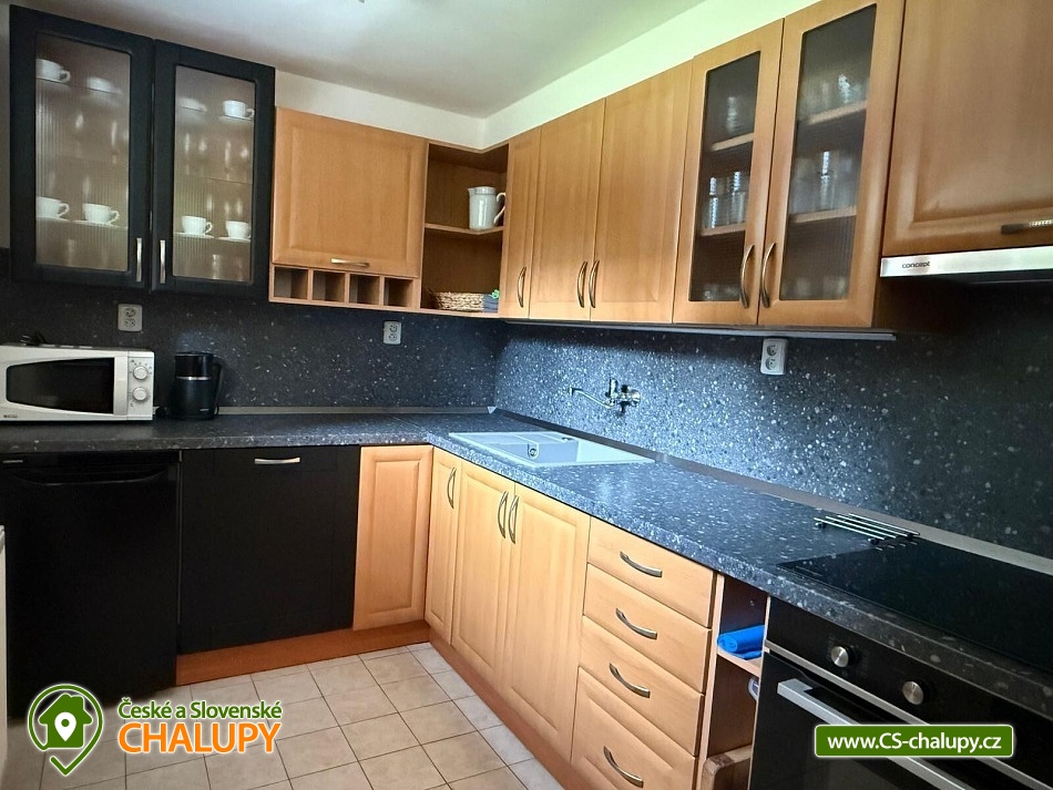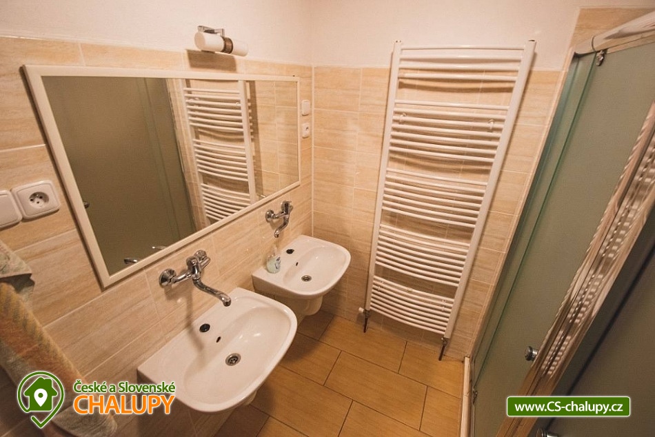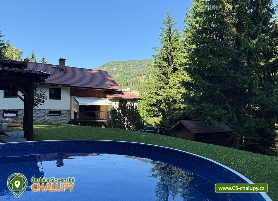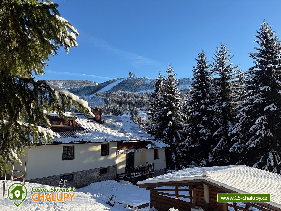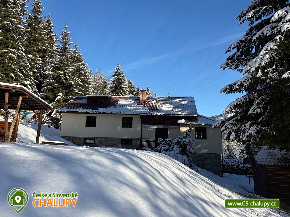Chalupa s bazénem a wellness s výhledem na Stezku v oblacích na Dolní Moravě. Pronájem chalupy na rozhraní oblastí Orlické hory a Jeseníky pro až 20 osob. Chalupa se nachází v poklidné přírodě na kraji lesa s úchvatným výhledem na protější svahy a Stezku v oblacích. Využít můžete venkovní vířivku Canadian Spa pro 6 osob s výhledem na Stezku v oblacích nebo finskou saunu pro 6 osob. Pro zajištění soukromí a maximálního komfortu je chata rozdělena do 2 apartmánů pro 12 a 8 osob. Objekt je možné pronajmout pouze jako celek. V apartmánu A jsou k dispozici 2 x dvoulůžkové pokoje, 1x třílůžkový pokoj a jeden rodinný pokoj pro 5 osob s balkonem. Po dohodě je možné připravit i dětskou postýlku a jídelní židličku, 2x sociální zařízení, 3 x sprcha. V apartmánu B jsou zařízené 2 čtyřlůžkové pokoje a 2 x samostatné sociální zařízení, 2 x sprcha. Každý apartmán disponuje plně vybavenou kuchyňku se sklokeramickou deskou a elektrickou troubou, myčkou, 2 x ledničkou s mrazákem, mikrovlnou troubou a rychlovarnou konvicí, jídelnou pro 12 (apartmán A) nebo 8 osob (apartmán B) s propojenou společenskou místností a krbem, novým pohodlným gaučem, TV, bluetooth reproduktorem, stolními hrami, lékárničkou, bezdrátovým internetem Wi - Fi zdarma. Pro každého hosta je k dispozici ložní prádlo a ručník. U chalupy je velká udržovaná zahrada včetně krytého venkovního posezení s možností grilování. Spolu s vířivkou a saunou je vám k dispozici i vyhřívaný venkovní krytý bazén, pingpongový stůl, trampolína, pískoviště, prolézačky a skluzavka pro děti. Letní rekreace přímo v obci nabízí: stezka do oblak, bobová dráha, lanový park, mamutíkův vodní park, obří houpačka, adrenalin park, letní lanová dráha, dětská hřiště, rozhledna Klepý, velký sportovní areál s trampolínami a velkým dětským hřištěm. V zimě lyžařské středisko 2x v obci, Skiresort Dolní Morava a Větrný Vrch. Další areály: (12 km) Skipark Šanov, (19km) Skipark Červená Voda nebo např. (22km) Čenkovice.