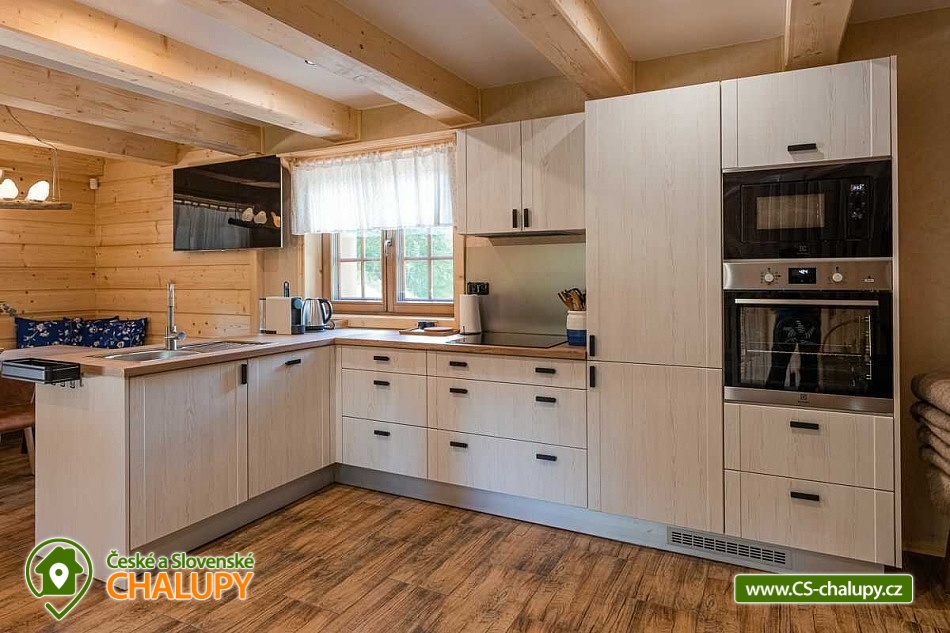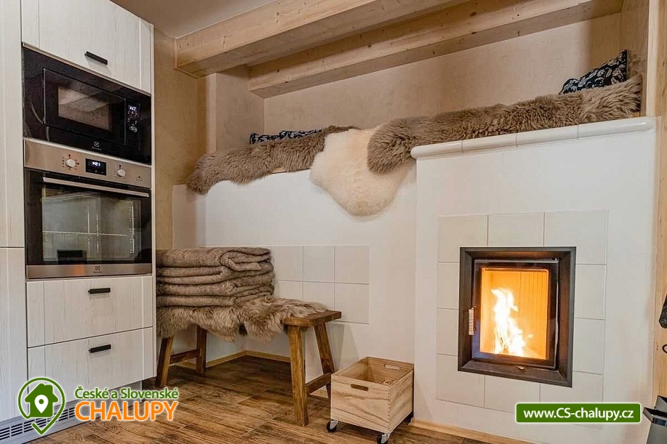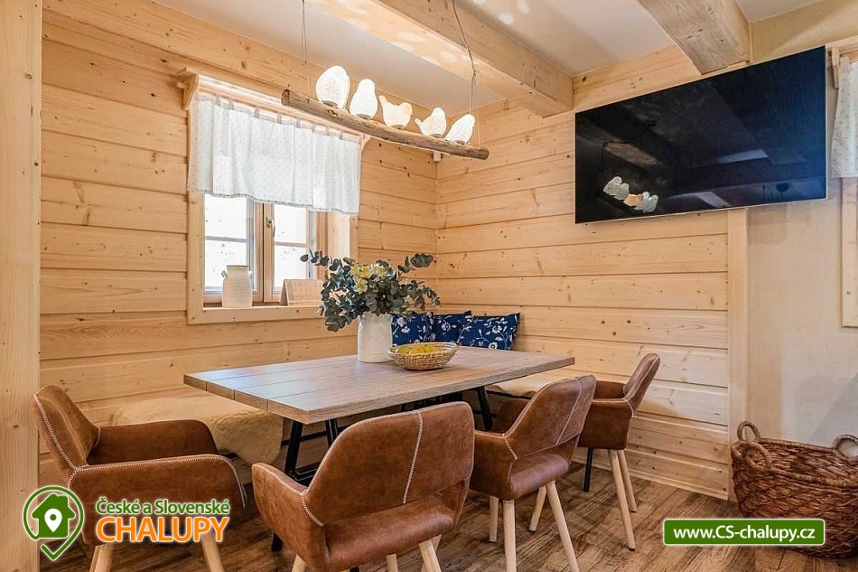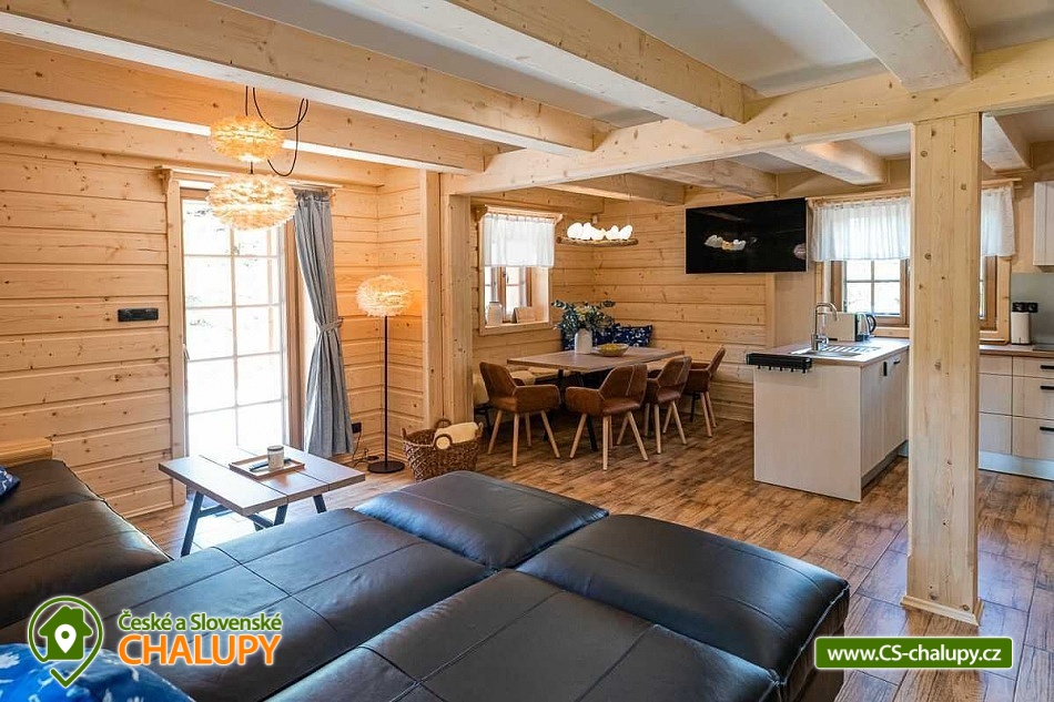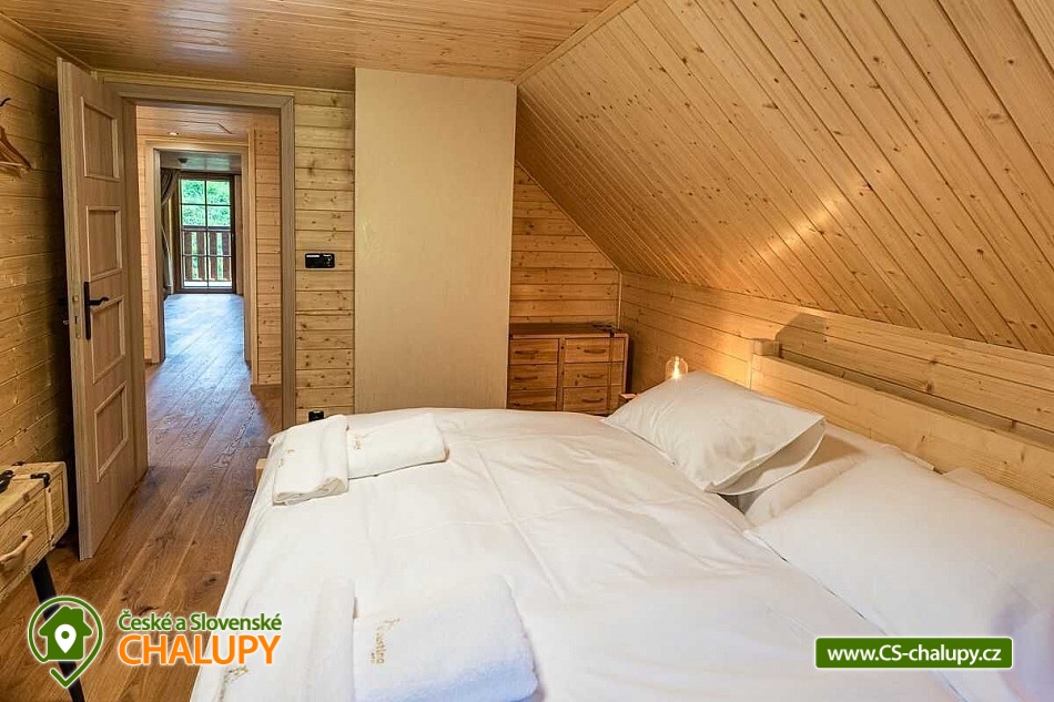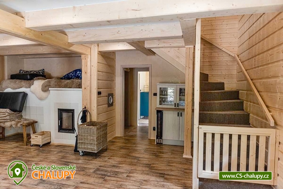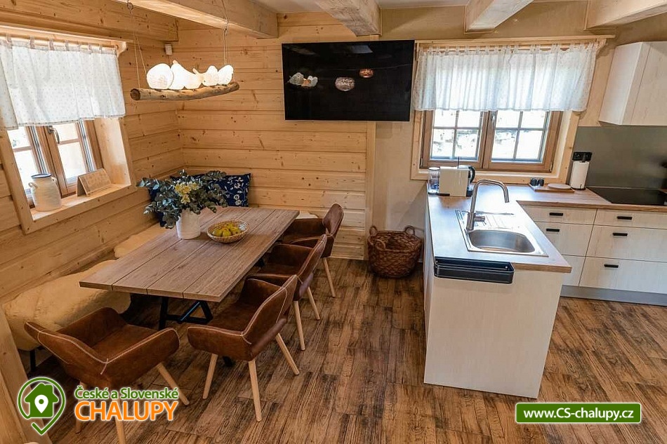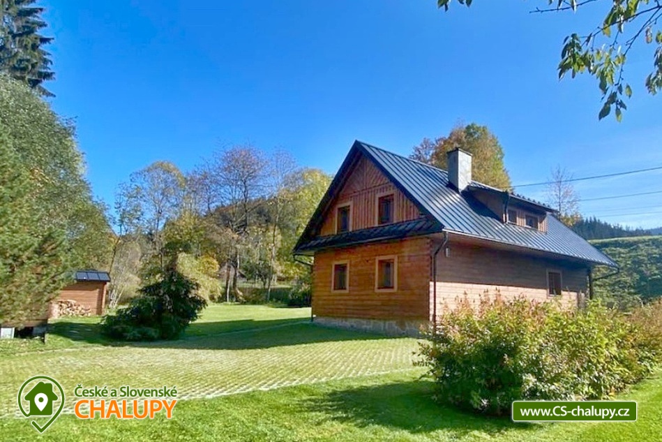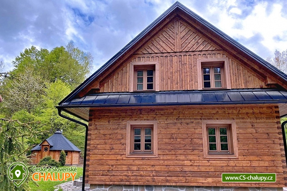 Chalupa Beskydy se saunou a koupacím sudem se nachází u přírodní rezervace Razula u Leskového a Velkých Karlovic na samém konci údolí Podťaté. Těšit se můžete na klidné prostředí, zvuk potůčku, oblohu plnou hvězd a na relax v sauně nebo při grilování v grilovací kotě. Útulná, stylová a komfortně vybavená chalupa nabízí ubytování pro až 8 osob, celkem je k dispozici 6 pevných lůžek a 2 přistýlky ve třech ložnicích. Všechny ložnice jsou umístěné v patře. První dvě ložnice mají k dispozici manželskou postel a TV. Součástí třetí ložnice je manželská postel, 2 přistýlky řešené rozkládací pohovkou, TV a balkónem s venkovní sedací soupravou a nádherným výhledem na louku a les. Po domluvě jsou k dispozici dvě cestovní postýlky s pevnou matrací a to bez poplatků. V přízemí pro společné chvíle slouží prostorný obývací pokoj s koženou sedací soupravou, TV, malou vinotékou, velkým jídelním stolem, kamny se stylovým ležením jako na peci a vchodem na terasu s posezením pro 8 osob. Z obývacího pokoje vedou schody do patra. Součástí chalupy je plně vybavený kuchyňský kout se spotřebiči (lednice s mrazákem, elektrická trouba, varná deska, mikrovlnná trouba, varná konvice, kávovar Nespresso, topinkovač, ruční mixér, mixér atd.). Dále je k dispozici v přízemí prostorné zádveří a technická místnost s prádelnou (pračka a sušička). Sociální zařízení zahrnuje v přízemí jednu koupelnu se sprchovým koutem a samostatným WC a v patře mezi ložnicemi jednu koupelnu se sprchovým koutem a malou vanou a jedno samostatné WC. Vytápění je řešeno kamny na dřevo a v celém přízemí podlahovým elektrickým vytápěním, a to i v koupelně a na WC v patře. V ložnicích jsou k dispozici sálavé infra panely. V oknech jsou sítě proti hmyzu, v ložnicích a obývacím pokoji kouřové hlásiče. V celém objektu je k dispozici WIFI připojení na internet. Chalupu obklopuje travnatá zahrada lemovaná po celé přední délce potůčkem. Posedět lze na venkovní terase. Součástí zahrady je také útulný grilovací domek SaunaKota, která slouží ke grilování v jakémkoliv počasí a z jedné třetiny ji tvoří sauna vytápěná kamny na dřevo přinášející nezapomenutelnou atmosféru. Dále lze relaxovat v koupacím sudu vytápěným dřevem. Posedět lze také u ohniště s dřevěnými lavicemi. Děti se mohou těšit na houpačky a skluzavky. Součástí zahrady je také dřevěná, uzamykatelná bouda pro uchování kol a větších věcí. Parkovat lze přímo u objektu. Příjezd je zde přes můstek s uzavíratelnou bránou. V okolí chalupy možnost turistiky, cykloturistiky, koupání, houbaření, běžkování, in -line bruslení a lyžování. V blízkosti jsou také tenisové kurty a golfové hřiště. Mezi možnosti koupání patří např.: koupaliště Velké Karlovice, Vodní svět Velké Karlovice, bazén Velké Karlovice, přehrada Horní Bečva, koupaliště Balaton, koupaliště biotop Bečva, koupaliště Hutisko-Solanec, koupaliště Vigantice, koupaliště Rožnov pod Radhoštěm, bazén Rožnov pod Radhoštěm, atd. V zimním období jsou k dispozici blízká lyžařská střediska: Velké Karlovice - Machůzky, Razula, Velké Karlovice - Bambucha, Synot - Kyčerka, LS zona snow Makov - Kasárne, Soláň - Bzové, Třeštík – Celnica, Karolínka a další. K výletům v okolí láká Valašské muzeum v přírodě - Rožnov pod Radhoštěm, Pustevny s vycházkou na Radhošť, Kopřivnice - muzeum Tatrovky, Čeladná - bobová dráha, ZOO Lešná nebo Valašské Meziříčí. Těšíme se na Vás u nás.