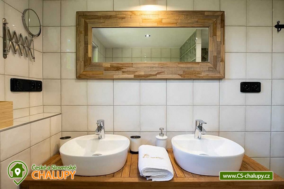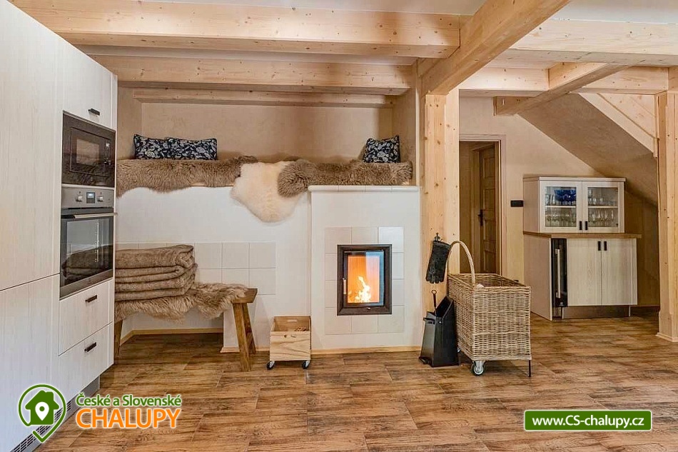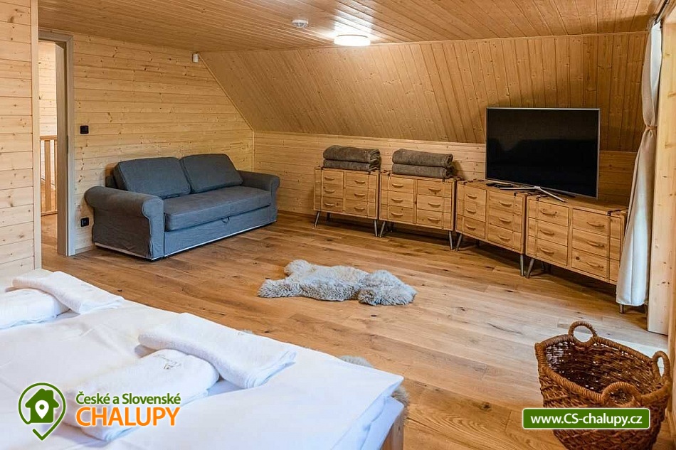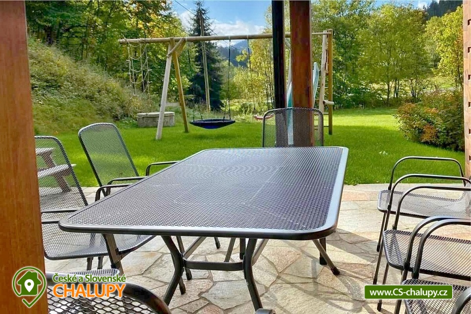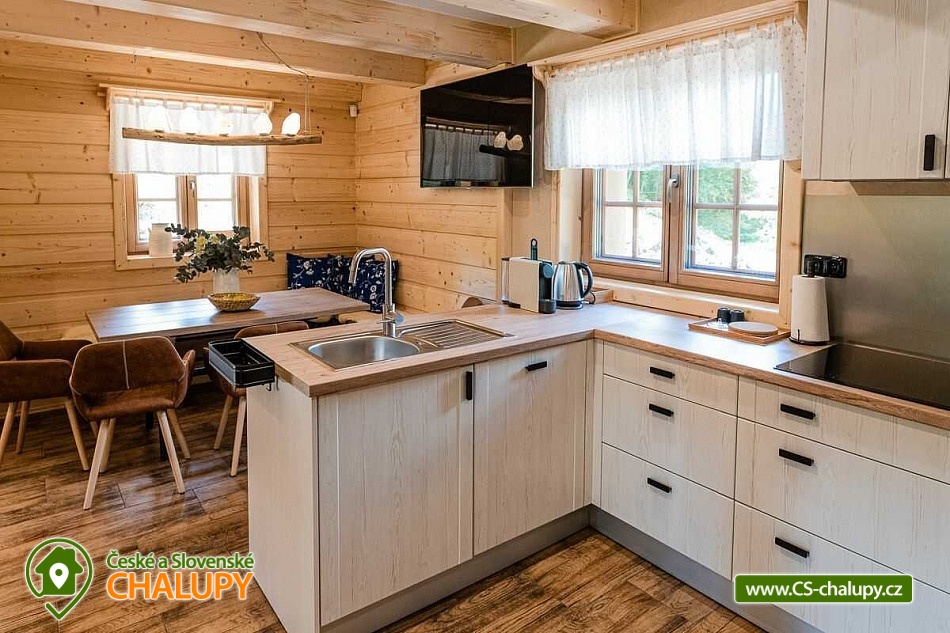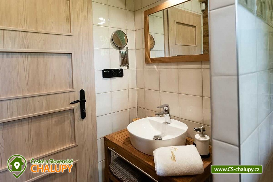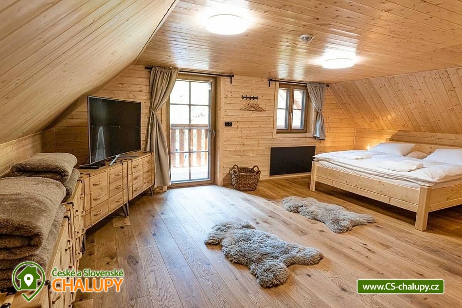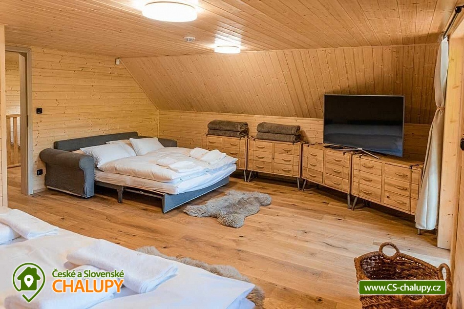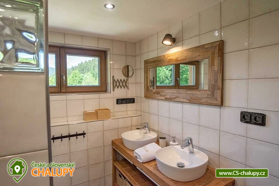 Chalupa Beskydy se saunou a koupacím sudem se nachází u přírodní rezervace Razula u Leskového a Velkých Karlovic na samém konci údolí Podťaté. Těšit se můžete na klidné prostředí, zvuk potůčku, oblohu plnou hvězd a na relax v sauně nebo při grilování v grilovací kotě. Útulná, stylová a komfortně vybavená chalupa nabízí ubytování pro až 8 osob, celkem je k dispozici 6 pevných lůžek a 2 přistýlky ve třech ložnicích. Všechny ložnice jsou umístěné v patře. První dvě ložnice mají k dispozici manželskou postel a TV. Součástí třetí ložnice je manželská postel, 2 přistýlky řešené rozkládací pohovkou, TV a balkónem s venkovní sedací soupravou a nádherným výhledem na louku a les. Po domluvě jsou k dispozici dvě cestovní postýlky s pevnou matrací a to bez poplatků. V přízemí pro společné chvíle slouží prostorný obývací pokoj s koženou sedací soupravou, TV, malou vinotékou, velkým jídelním stolem, kamny se stylovým ležením jako na peci a vchodem na terasu s posezením pro 8 osob. Z obývacího pokoje vedou schody do patra. Součástí chalupy je plně vybavený kuchyňský kout se spotřebiči (lednice s mrazákem, elektrická trouba, varná deska, mikrovlnná trouba, varná konvice, kávovar Nespresso, topinkovač, ruční mixér, mixér atd.). Dále je k dispozici v přízemí prostorné zádveří a technická místnost s prádelnou (pračka a sušička). Sociální zařízení zahrnuje v přízemí jednu koupelnu se sprchovým koutem a samostatným WC a v patře mezi ložnicemi jednu koupelnu se sprchovým koutem a malou vanou a jedno samostatné WC. Vytápění je řešeno kamny na dřevo a v celém přízemí podlahovým elektrickým vytápěním, a to i v koupelně a na WC v patře. V ložnicích jsou k dispozici sálavé infra panely. V oknech jsou sítě proti hmyzu, v ložnicích a obývacím pokoji kouřové hlásiče. V celém objektu je k dispozici WIFI připojení na internet. Chalupu obklopuje travnatá zahrada lemovaná po celé přední délce potůčkem. Posedět lze na venkovní terase. Součástí zahrady je také útulný grilovací domek SaunaKota, která slouží ke grilování v jakémkoliv počasí a z jedné třetiny ji tvoří sauna vytápěná kamny na dřevo přinášející nezapomenutelnou atmosféru. Dále lze relaxovat v koupacím sudu vytápěným dřevem. Posedět lze také u ohniště s dřevěnými lavicemi. Děti se mohou těšit na houpačky a skluzavky. Součástí zahrady je také dřevěná, uzamykatelná bouda pro uchování kol a větších věcí. Parkovat lze přímo u objektu. Příjezd je zde přes můstek s uzavíratelnou bránou. V okolí chalupy možnost turistiky, cykloturistiky, koupání, houbaření, běžkování, in -line bruslení a lyžování. V blízkosti jsou také tenisové kurty a golfové hřiště. Mezi možnosti koupání patří např.: koupaliště Velké Karlovice, Vodní svět Velké Karlovice, bazén Velké Karlovice, přehrada Horní Bečva, koupaliště Balaton, koupaliště biotop Bečva, koupaliště Hutisko-Solanec, koupaliště Vigantice, koupaliště Rožnov pod Radhoštěm, bazén Rožnov pod Radhoštěm, atd. V zimním období jsou k dispozici blízká lyžařská střediska: Velké Karlovice - Machůzky, Razula, Velké Karlovice - Bambucha, Synot - Kyčerka, LS zona snow Makov - Kasárne, Soláň - Bzové, Třeštík – Celnica, Karolínka a další. K výletům v okolí láká Valašské muzeum v přírodě - Rožnov pod Radhoštěm, Pustevny s vycházkou na Radhošť, Kopřivnice - muzeum Tatrovky, Čeladná - bobová dráha, ZOO Lešná nebo Valašské Meziříčí. Těšíme se na Vás u nás.