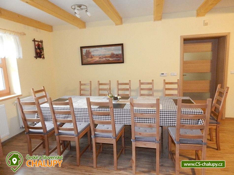 Chalupa Beskydy k pronájmu pro až 20 osob ve 2 apartmánech se nachází v Karolince v samém srdci Valašska, západně od centra Velkých Karlovic v malebném údolí zvaném Bzové. Nabízíme i bezbariérové ubytování v přízemí ve velké bytové jednotce, kde se nachází upravená bezbariérová prostorná koupelna, kuchyň s posezením i ložnice v přízemí. V chalupě je celkem 6 ložnic, ubytovat se je možné v malém apartmánu o kapacitě 8-mi lůžek nebo ve velkém apartmánu o kapacitě 12-ti lůžek (popř. obsadit celou chalupu - 20 lůžek). I v případě, že obsadíte pouze malý apartmán budeme garantovat, že zbývající lůžka (chalupa) zůstanou neobsazená a celá zahrada je k dispozici pouze pro Vás. Vaše soukromí a pohodlí je pro nás prioritou. K dispozici je vybavená kuchyň vč. lednice, mikrovlnné trouby, varné konvice, sporáku a dalších elektrických spotřebičů. Chalupa je dále vybavena TV a SAT, DVD přehrávačem a internetem, který je samozřejmě v ceně pobytu. K vytápění lze použít krbová kamna nebo elektrokotel. Součástí objektu je oplocená zahrada, ve které máte možnost venkovního posezení a grilování. Pro vyžití Vašich dětí je pak připraveno pískoviště a houpačka. U chalupy je i prostor pro uložení kol, kočárků nebo lyží. V objektu se nachází celkem 4 sprchové kouty a WC, z toho 1 sprchový kout ve velké bytové jednotce je uzpůsoben pro méně pohyblivé. Parkování je možné přímo u objektu. Pokud patříte mezi milovníky turistiky, cykloturistiky, houbaření nebo lyžování, nebo snad jen chcete poznat život na Valašsku, odpočinout si od každodenních starostí, užít si odpočinku s možností kdykoli vyjít do přírody a přitom být na místě i v zimě lehce dostupném autem, nemůžete si snad vybrat lepší místo. Nabízíme Vám ubytování na rozhraní Javorníků a Beskyd v centru turistiky na Valašsku. V zimních měsících bývá tento kraj hojně navštěvován především lyžaři. Jsou zde lyžařská střediska s moderními vleky. Začátečníci a zdatnější lyžaři mají vytvořeny vhodné podmínky. Zájemci o běžecké lyžování mohou využít různě náročné upravené běžecké trasy. Rádi Vám po příjezdu poradíme. Těšíme se na Vás u nás.
