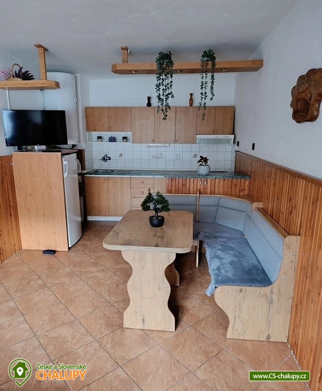 Chalupa Ľudka is located in Malá Fatra National Park, Terchová village, part of Biely Potok village. Accommodation in a cottage with a capacity of up to 10 people. There is a fully equipped kitchen (electric oven, gas stove, microwave oven, kettle, fridge, freezer, dining area, TV), which also serves as a common room. A comfortable sofa here will also serve as an extra bed for 2 people. Double beds are available in one 2-bed and two 4-bed bedrooms. There are 2 bathrooms in the cottage. One is equipped with a shower corner and the other with a bathtub, in both there is a toilet. In the yard there is a gazebo with seating, a fireplace, a kettle, a fireplace and a garden swing for children. Parking right next to the building. Excursions around the area - we recommend: Jánošík's Holes, climb to Malý and Velký Rozsutec, Statue of Juraj Jánošík, Terchovský vláček, Zázrivá Ecocentre, Šútovský waterfall or Nová Bystrica reservoir. The ski lift is approx. 2.5 km from the cottage. Other possibilities for skiing can be found in the Vrátná Dolina ski resort, which is located approx. 6 km from the cottage. We look forward to seeing you here.