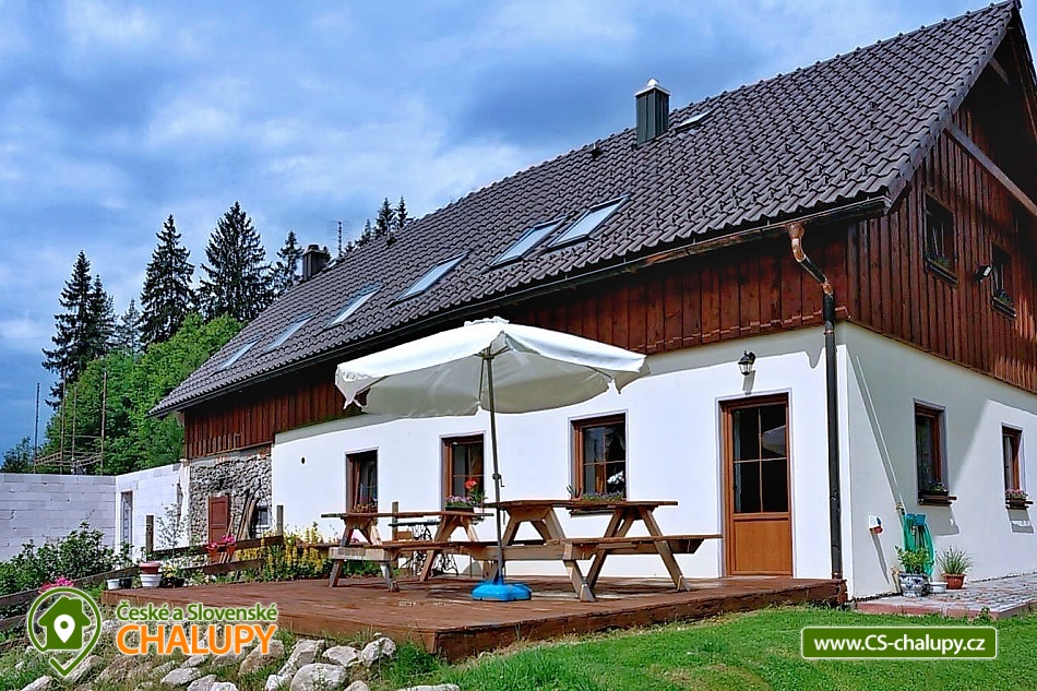 „Chalupa Boubínský prales - terasa, zahrada a hřiště - Šumava“