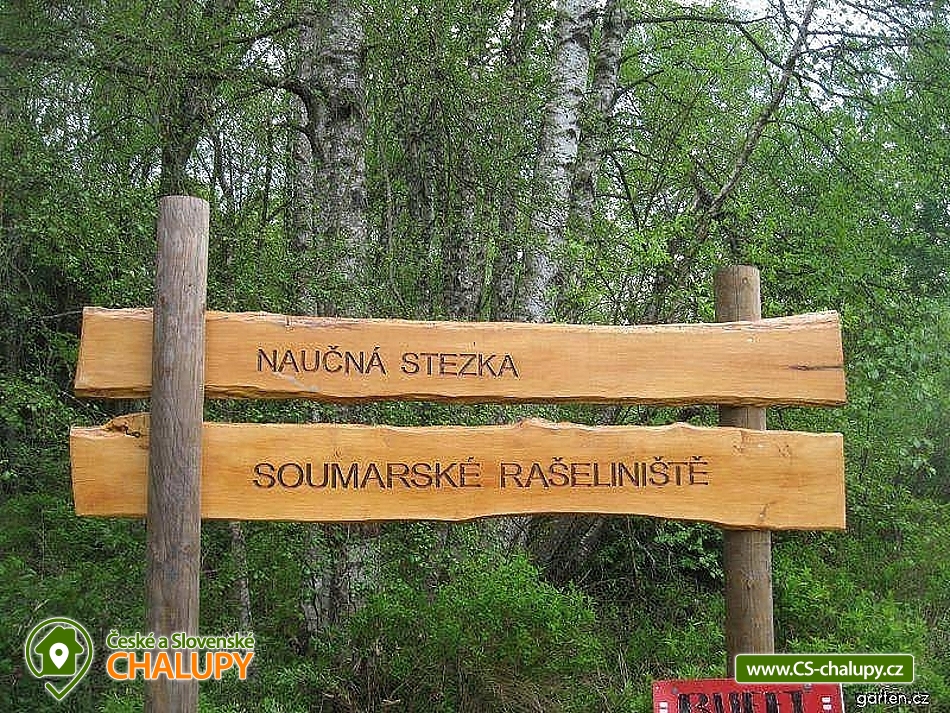 Chalupa v NP Šumava u říčky Teplá Vltava a Boubínského pralesa, poloha mezi obcemi Volary, Lenora a Stožec v lokalitě zvané Soumarský Most. Chalupa nabízí ubytování pro až 13 osob v celkem 5 pokojích. Chalupa se skládá z pěti pokojů, každý s vlastní koupelnou a WC, z toho 1x rodinné apartmá s kuchyňkou a obývacím pokojem. Dále je v chalupě společná jídelna s kuchyní (vybavenou sporákem, myčkou, základní sadou nádobí, apod..). K chalupě náleží posezení s ohništěm, terasa a dětské hřiště. V okolí chalupy je nově zbudovaná cyklostezka, v zimě stopa na běžky směr Volary (100m), hospoda (200m), Vltava, Soumarské rašeliniště, tábořiště (cca 500m), vlaková a autobusová zastávka jsou též v místě. Během pobytu se můžete vydat do blízkých míst jako např.: Stožec a Stožecká kaple, Boubínský prales s rozhlednou, pěší přechod Nové Údolí - Haidmühle, Lenoru a místní stále fungují pec na pečení chleba a samozřejmě Volary, kde najdeme muzeum, původní Volarské domy Alpského typu. Za návštěvu stojí i přes hraniční město Waldkirchen s celosezónním koupalištěm a vodním světem. Stezka v korunách stromů Neuschönau a mnoho dalšího. V zimě můžete využít běžeckou stopu vzdálenou 100 metrů od objektu, z ní se vydat směr Volary, Lenora či přes Dobrou na Šumavě na Stožec až na Šumavskou magistrálu. Sjezdovým lyžařům přijde vhod skiareal Mitterdorf se sedačkovou lanovkou (24km), pro malé děti na rozjezd pak menší sjezdovku v Českých Žlebech (5km).