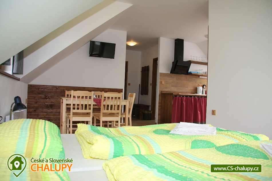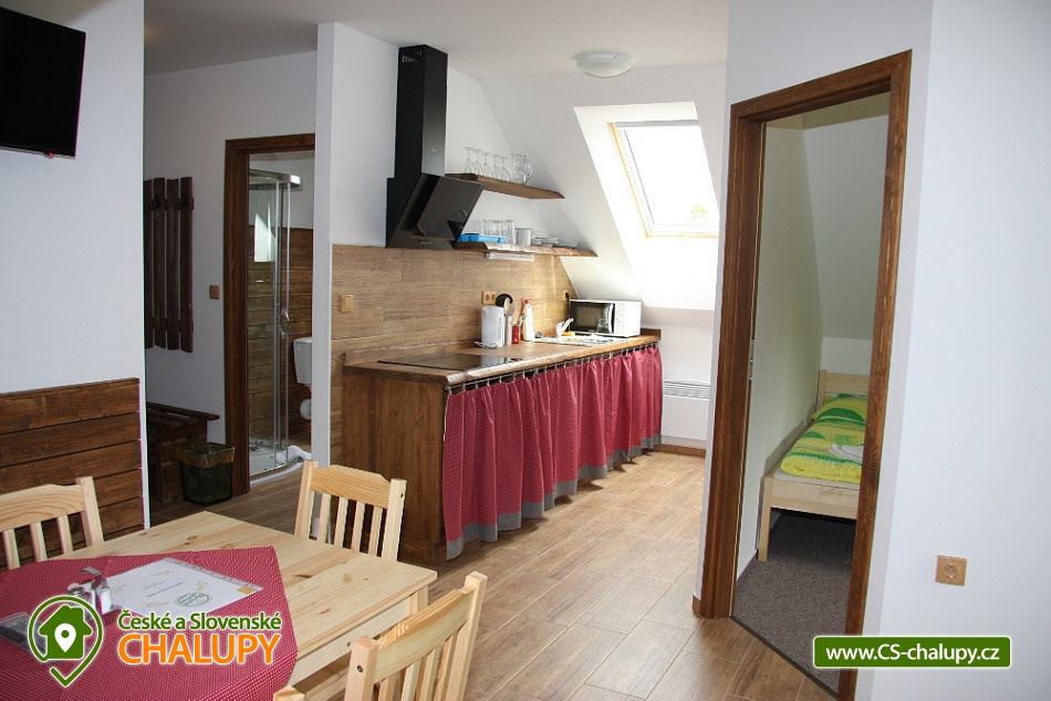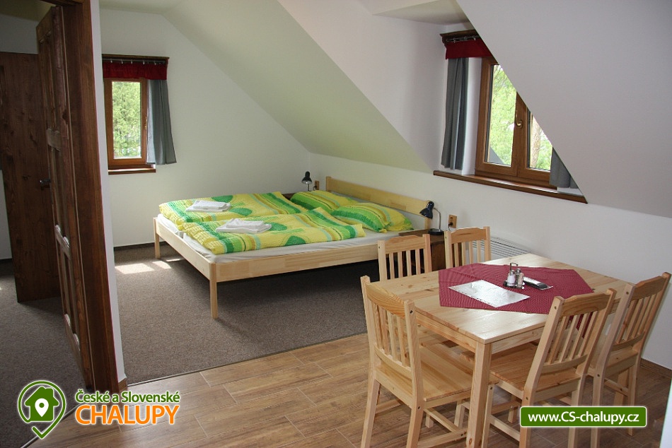 Blatácká chalupa - village Blato - accommodation Nová Bystřice - Czech Canada, South Bohemia. Blatácká cottage is a place of relaxation, calmness and recreation with romantic accommodation in the southern Bohemian village of Blato, located 5km from the ruins of Landštejn Castle, in the immediate vicinity of ponds, streams, forests and meadows in the beautiful and picturesque nature of South Bohemia in the heart of the Czech Canada natural park. Blatácká chalet offers accommodation for 22 people in 5 apartments. Blatácká cottage offers accommodation in a family-run guest house, located on the outskirts of the village, at the river Dračice. Accommodation in a new style stylish cottage (operation from April 27, 2018) is suitable for families with children, groups of friends, nature lovers, sports, tourism and especially cycling. Apartments - DESCRIPTION: A1 - DRAČICE - SINGLE FAMILY APARTMENTS - GROUND FLOOR: separate entrance and hall, kitchen with dining room and living room (2 beds), room (3 beds), bathroom with toilet. A2 - KINGDOM - SEPARATE APARTMENTS - AREA: separate entrance + hall, kitchen with dining room and living room (2 beds), room (3 beds), bathroom with toilet. A3 - OLD TIMES - ROOM WITH ACCESSORIES: separate entrance, living room (4 beds), bathroom with toilet. A4 - FOR TWO - ROOM WITH ACCESSORIES: separate entrance, living room (2 beds + 1 extra bed), bathroom with toilet. A5 - CZECH CANADA - SINGLE FAMILY APARTMENTS: separate entrance + hall, kitchen with dining room and living room (2 beds), room (3 beds), bathroom with toilet. Sanitary facilities: There is a bathroom in every apartment and room. Heating of the cottage: direct heating + stove in the common room. Parking on the cottage. Boarding - Three large family apartments are equipped with kitchen and dining room. Two smaller ones use the kitchen in the common room. Possibility to eat in the village of Blato. WELNESS: RELAXATION ROOM, infra sauna, shower, relaxing deck chairs for relaxation. Surroundings: Czech Canada is interwoven with a network of marked hiking and cycling trails leading to local roads, forest and field roads and footpaths.