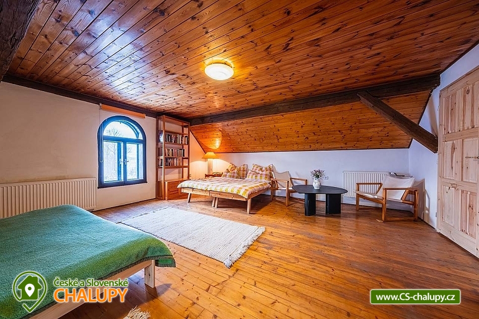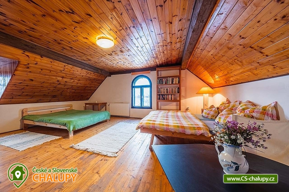 Chalupa Česká Kanada na samotě v blízkosti rybníka Vidlák a Jarošova nad Nežárkou, poloha severně od oblasti České Kanady v jižních Čechách v osadě Brabec u Nové Včelnice. Při Vašem pobytu Vás nebude nikdo rušit neboť nejbližší a jediní sousedé jsou vzdáleni 70 m. Chalupa k pronajmutí poskytuje ubytování pro až 12 osob v 5 ložnicích. POPIS: Patro 1 x velká ložnice pro 4 osoby (4x jednolůžko, možno spojit), 1 x malá ložnice pro 2 osoby (2 x jednolůžko), 1 x malá ložnice pro 2 osoby (1x manželská postel), koupelna s WC a místnost na ping - pong & stolní fotbálek & šipky. Pro nejmenší je připravena dětská rozkládací postýlka. Přízemí: 2 x malá dvoulůžková ložnice (1 x manželská postel, 2 x jednolůžko), obývací pokoj spojený s kuchyní, koupelna s WC, krbová obývací místnost. Kuchyně - kompletní vybavení pro běžné vaření (myčka, varná deska, trouba, kávovar atd.), dále TV a internet. Sociální zařízení: Patro: wc + sprchový kout. Přízemí: wc + vana a pračka. Vytápění chalupy: Vytápění kotlem na dřevěné pelety. Příjezdová cesta je od obce Brabec po zpevněné cestě. Parkování pro 2 auta je možné uvnitř dvora, ostatní na pozemku vedle chalupy. Vzhledem k tomu, že se chalupa nachází na konci cesty, kde se odpadový vůz neotočí, je třeba odpadky třídit a vyvážet dle plánku dostupného na místě. Chalupa je plně vybavená, nově též sauna sudem (hot-tube) až pro 6 osob a solární sprchou. Pokud zrovna nebudete někde výletovat a zastihne Vás nepřízeň počasí, zahrajte si u krbu deskové hry nebo si dejte ping - pongový turnaj. V létě doporučujeme: vyjížďky na kole všemi směry nebo jen na koupání do lomu Antonka či pískovny u Kruplova, zámek v Jindřichově Hradci, Telč nebo Červená Lhota (obě místa možno na kole), jízda parním vlakem ze Včelnice, Miniaquapark v Jindřichově Hradci a nebo jen vyrazte na houby a borůvky do lesa. Těšíme se na Vás u nás.