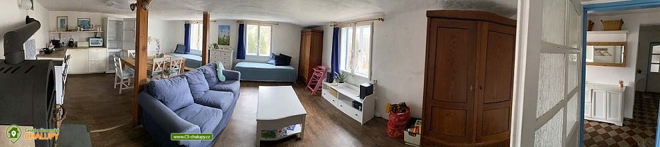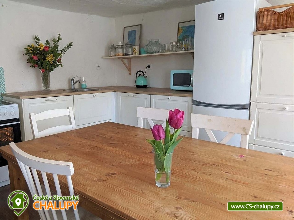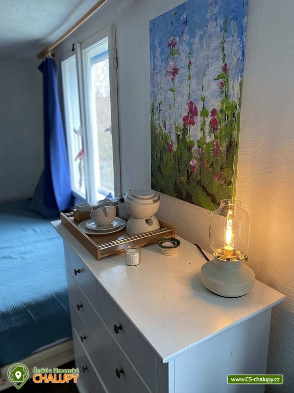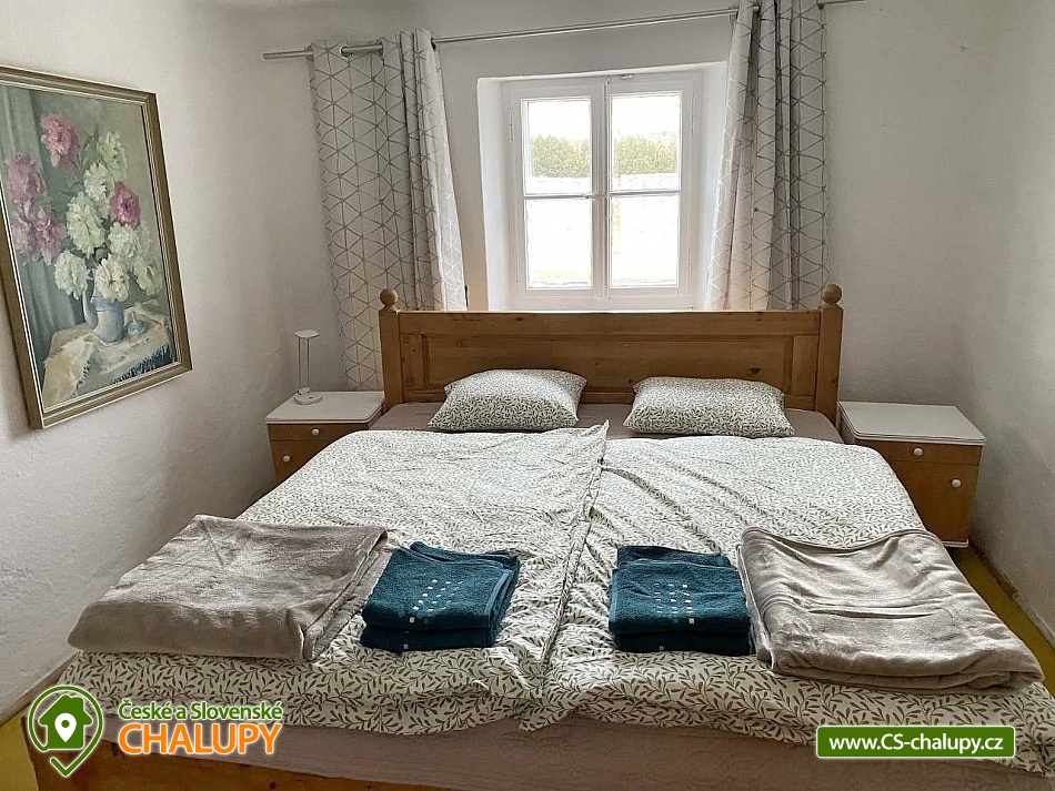 The cottage at Bylinkářky is located in the village of Ježovy, located near the Popelčina castle of Švihov in the Pilsen region. You can look forward to a beautiful fragrant flower garden with plenty of privacy and a picturesque view of the nearby Běleč hill. Chalupa u Bylinkářka offers accommodation for 7 people in two bedrooms. There is one separate triple bedroom (1x double bed, 1x single bed), which is pleasantly cool even in the summer months. There are also 2x single beds and two extra beds with a sofa bed in the sitting room. There is one retro children's cot available for rent. Bed linen is suitable for allergy sufferers. The living room is the heart of the cottage, it also includes a fireplace, a spacious dining table and a fully equipped kitchen (stove, dishwasher, kettle, microwave oven, high-quality dishes and coffee machine). Gardening lovers will be delighted with a swing, toys, games and a washing machine The heating is provided by a wood stove and you can sit outside on the roofed terrace, where you can sit and relax. There is a grill and a fire pit. Children can look forward to the sandpit and climbing frames. The back gate takes you on a walk to the fields, to the nearby pond and to the forest for mushrooms. You can park right next to the building. Cycling, swimming, mushroom picking and fishing are available in the surroundings of the cottage. Swimming options include, for example: Klatovy swimming pool, Roupov swimming pool, Němčák quarry, Černotín swimming pool, Stanětice swimming pool, Hájovna Kdyně swimming pool, Kdyně aquapark, Kotynka Biotop, etc. Švihov Castle, Kozel Castle and Park, Museum of Technology and Koloveč crafts, Červené Poříčí Castle, Klatovy, Chudenice and the American garden or the historical center of the city of Pilsen. We look forward to seeing you here.