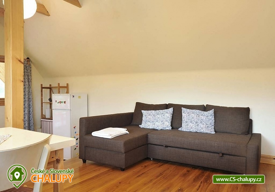 Chalupa CHKO Bílé Karpaty na Valašsku přímo u cyklotrasy na Bojkovsko. Z chalupy je nádherný výhled na panorama kopců obce Žítková i jižního Valašska. V chalupě se nachází prostorná kuchyně, jejíž součástí je obývací prostor (alternativa spaní pro 2 osoby) a 1 prostorná ložnice s kapacitou až 4 osoby (1 manželská postel, 1 rozkládací postel, popř. je v záloze 1 přistýlka). Přímo z chalupy vcházíte na krytou dřevěnou terasu s možností posezení s výhledem do lesa. Dispozice je optimální pro ubytování rodiny s dětmi. Sprchový kout a WC nejsou oddělené. U chalupy je k zatravněný prostor. Chalupa je v koncové části obce u lesa s nepřebernou možností výletů do okolí. Moravské Kopanice leží v samotném srdci Bílých Karpat. Milovníci přírody, kultury a původních lidových tradic zde v Bílých Karpatech najdou síť turistických tras pro pěší i pro cyklisty. Naučné stezky seznamují s přírodními zajímavostmi. Nepřeberná je možnost možnost jednodenních výletů autem v dojezdové vzdálenosti: lázně Luhačovice, centrum Moravských Kopanic – Starý Hrozenkov a Žítková, zámek a hrad Buchlovice, archeoskanzen v Modré, skanzen ve Strážnici, Čachtický hrad, Trenčín. Vedle objektu vede cyklotrasa Bojkovsko, nepřeberná možnost výletů (pěšky, vozem i na kole) za přírodou a krásami pohoří Bílých Karpat, rozsáhlými komplexy květnatých luk s výskytem vzácných druhů orchidejí, svéráznou lidovou kulturou Slovácka, Moravských Kopanic a jižního Valašska. Významné turistické cíle: nejvyšší vrchol Velká Javořina (970 m) s velkou dohledností, rozhledna na Velkém Lopeníku (911 m), hřebeny Moravských Kopanic umožňují krásné výhledy na obce Žítková, Vyškovec a Lopeník. Zámek Nový Světlov v Bojkovicích (14 km) a Lázně Luhačovice (17 km). Těšíme se na Vás u nás.