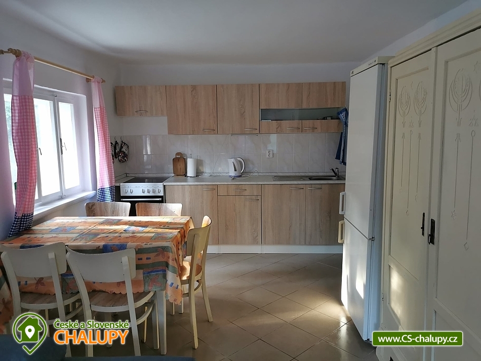 Accommodation in a newly renovated cottage Vlčí Louka with an outdoor pool in the Broumovsko Protected Landscape Area. The cottage is located in the center of Vernéřovice, 12 km from the rock town of Adršpach, 10 km from Ostaš and 12 km from the Broumov walls. Although the cottage is located in the center of the village, it provides incredible peace and quiet. In the summer season, a swimming pool and hot tub are built in the garden. The cottage provides accommodation for up to 10 people in 4 bedrooms. The cottage has two completely separate apartments: Apartment No. 1 offers a bedroom (4 beds), living room (2 beds - sofa bed), fully equipped kitchen, bathroom with shower and toilet. The apartment has its own entrance. Apartment No. 2 offers a bedroom (2 beds), living room with kitchen (2 beds - sofa bed), fully equipped kitchen, bathroom with shower and toilet. The apartment has its own entrance. The kitchens are fully equipped - electric stove with oven, refrigerator with freezer, kettle, microwave. Bed linen, towels, tea towels, toilet paper and kitchen towels are provided. Furthermore, the kitchens are equipped with detergents, bathrooms with soaps. The garden offers the possibility of using the fireplace, barbecue, sitting area, natural igloo for children and a small sandpit. At a distance of 100m there is a playground, swings, slides, climbing frames. We prefer to rent the whole cottage, but it is possible to rent individual apartments separately by agreement. Each apartment is equipped with a private bathroom with shower and toilet. Heating is provided by electric heaters. Parking by the accommodation facility for 3 cars. In the vicinity there are a large number of tourist attractions such as Adršpach - Teplice rocks, Broumov walls, Ostas. Walzel Center in Mezimestí (salt cave, bowling bar, climbing wall, shooting range, gym, restaurant Švejk). Sand pit in Adršpach, swimming in Meziměstí, in Polička nad Metují, in Trutnov. Horseback riding in Adrspach. In winter, there are a number of ski trails with a good trail around the Adršpach Rocks. We look forward to seeing you with us.