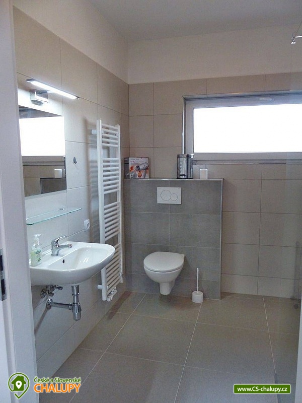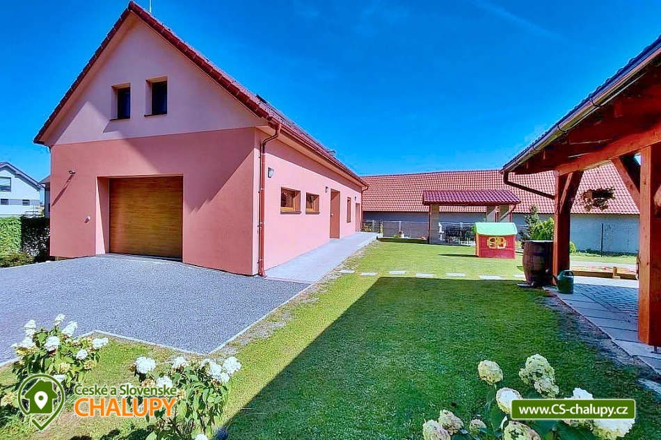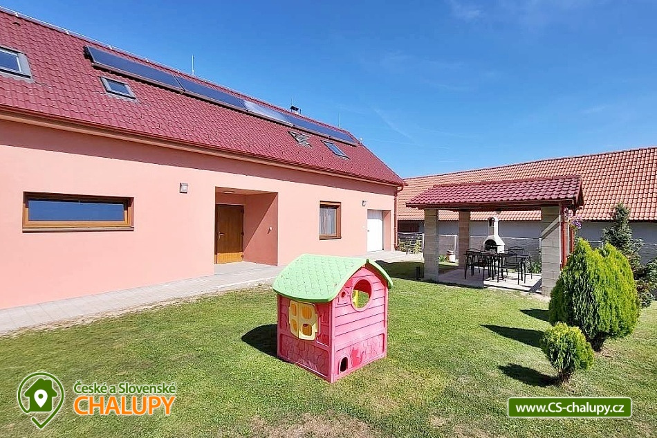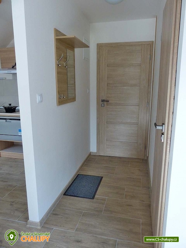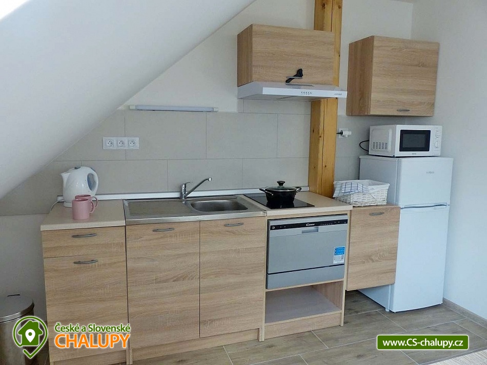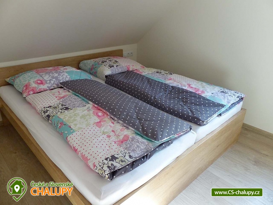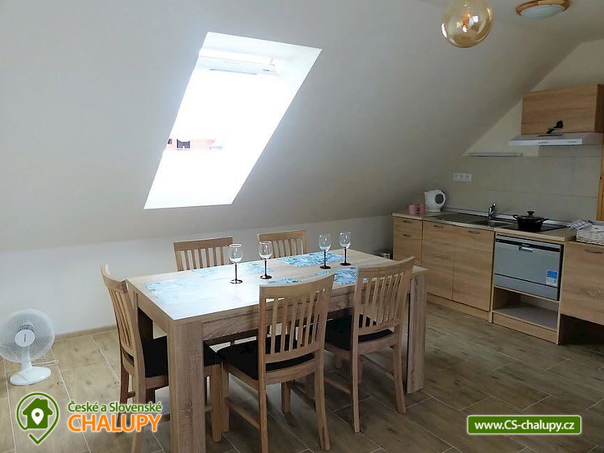 Apartments u Chmelů are located in a quiet part of the village of Domanín near the spa town of Třeboň, which offers plenty of entertainment, culture, cafes, pastry shops, restaurants and activities for everyone. The surroundings are interwoven with a number of hiking and cycling trails leading, for example, to the famous Svět and Rožmberk ponds. Apartments u Chmelů offer accommodation for 13 people in three separately rented apartments with their own kitchen and bathroom. Apartment no. 1 and 2 are equipped and have the same layout and have a capacity for 5 people. Both apartments have one four-bed bedroom (2× single bed and 1× double bed) and one living room with a sofa bed (1x extra bed), dining table, TV and fully equipped kitchen (ceramic hob, electric and microwave oven, fridge with freezer, electric kettle, dishes for basic food preparation, toaster and dishwasher). Both apartments have a bathroom with a shower and toilet. Apartment No. 3 with a capacity for 3 people is located on the ground floor and has barrier-free access. The apartment consists of one main room, which has a double bed, a sofa bed (1 extra bed suitable for a child) and a kitchenette equipped similarly to the previous two apartments. The apartment has a spacious bathroom with a shower and toilet. A cot can be provided for all apartments upon request. The windows of the apartments are equipped with blinds and mosquito nets. A hairdryer, fan for hot summer days, clothes dryer and iron are available for rent. WIFI internet connection is available throughout the building. Heating is centrally solved using radiators. Outside, all accommodation can use a garden seating area with a grill. Children will appreciate the sandbox. There is a bicycle storage room. Parking is available directly at the building. In the vicinity of the building there is the possibility of hiking, cycling, swimming, mushroom picking and fishing. There are tennis courts nearby. There is a pond about 400m from the apartment where you can swim or fish. A permit can be purchased directly in the village. There is also a multi-purpose playground in the village, accessible free of charge. For families with children, there is a new, modern playground and one smaller playground near the apartments. Swimming options include: Svět pond, Opatovický pond, Spolský pond, Dunajovice quarry, Rožmberk pond, Nový Lipnický pond, Podřezanský pond, Cep sandpit, Borovany - Lazna swimming pool, Třeboň Aurora swimming pool, etc. The Blanský forest protected area, Novohradské mountains, Lužnice river with canoe and raft rentals, Český Krumlov or Hluboká nad Vltavou attract tourists for trips in the surrounding area. We look forward to seeing you there.