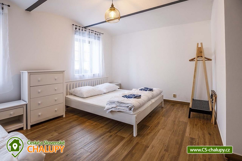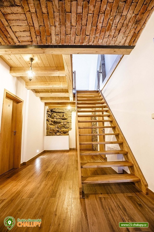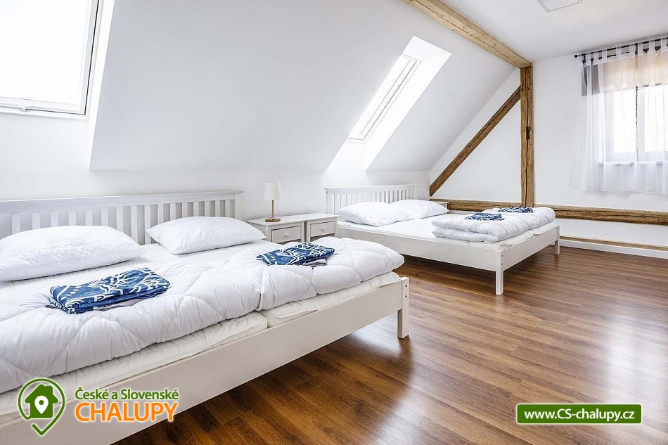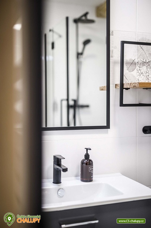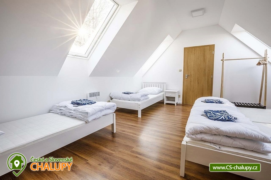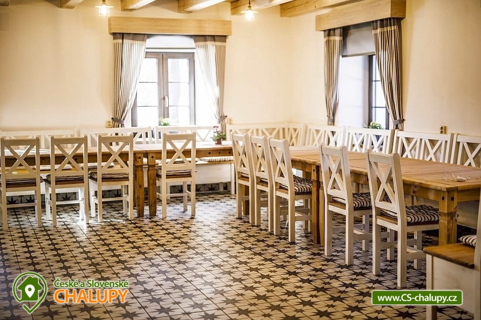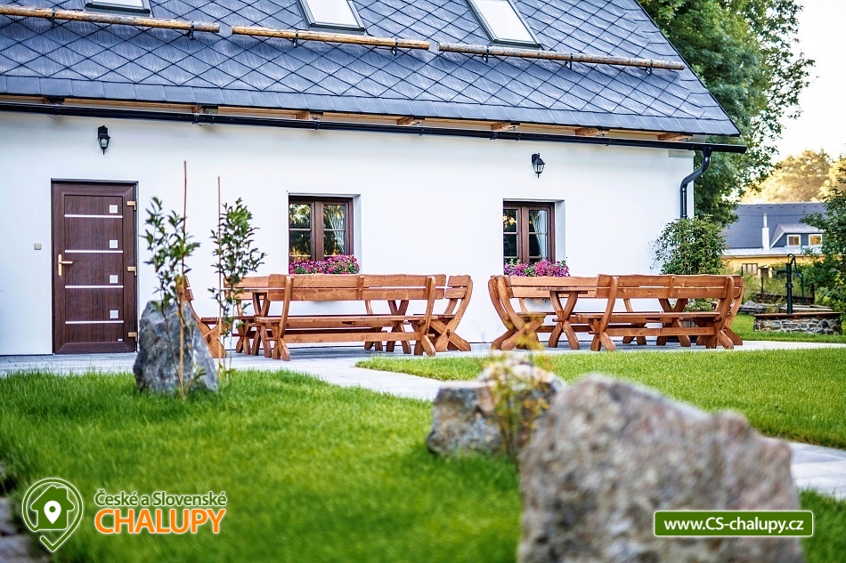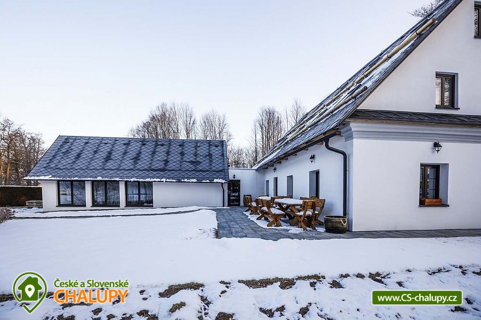 The stylish Cottage near the stream is located in the village of Prostřední Lipka, near the town of Králíky, in the beautiful landscape below Králický Sněžník on the border of the Jeseníky and Orlické mountains. In close proximity you can visit the year-round Dolní Morava, Červená Voda, Říčky v Orlické Horách and Česká Petrovice sites. In this cottage from the 19th century, formerly used as a German bakery, you can now look forward to a very comfortable stay with the possibility of relaxing in the sauna or in the outdoor hot tub. The cottage near the stream offers accommodation for 28 people in 7 four-bed bedrooms. On the ground floor there is one four-bed bedroom with a double bed and two single beds and a private bathroom with a toilet and a shower. The ground floor also includes a common room with a large dining table, a kitchen, a living room with a sofa set and TV, two separate toilets, an entrance hall with shoe racks and a ski boot dryer, a gym (6x12 m) and a Finnish sauna with an adjacent terrace and a hot tub. The kitchen is fully equipped with everything needed for cooking, baking, dining and sitting for a large group of 28 people. There is a kettle, coffee machine, microwave oven, oven, hob, fridge, dishwasher and all dishes. You can also use the installed faucet with three taps and plenty of glass. By agreement and for an additional fee, beer can be provided from a large warehouse. On the second floor there are four more four-bed bedrooms, three with a double bed and two single beds and one with two double beds. Two bedrooms have their own bathroom with shower and toilet and two bedrooms have one shared bathroom, also with shower and toilet. There is one separate toilet in the corridor. On the third floor there are two more four-bed bedrooms, each with four single beds. Both bedrooms have their own bathroom with shower and toilet. WIFI internet connection is available throughout the building. Heating is provided by an electric boiler for floor heating on the ground floor. The second and third floors are heated by electric direct heaters. Air conditioning is available on the third floor and in the gym. A washing machine is available. Outside, a grassy garden extends around the cottage. The cottage has a front and back terrace with outdoor seating. It is also possible to enter the back terrace from the second floor. There is a grill and a fire pit. You can park directly at the building. In the vicinity of the building, hiking, cycling, swimming, mushroom picking, fishing, cross-country skiing and skiing are possible. There is also a riding stable nearby. Swimming options include, for example: Velké Losiny - thermal baths, Králíky swimming pool, Mezilesí pool, Hynčice pod Sušinou - Úžas pond, Jablonné nad Orlicí swimming pool, Pastviny dam, Štíty - Acrobat Park, Ruda nad Moravou swimming pool, Kunvald swimming pool, Letohrad swimming pool, aqua park Žamberk, etc. In winter, there are several top ski resorts available in the vicinity. Among the most famous are the Resort Dolní Morava with 8 groomed slopes of various levels of difficulty, with the children's ski park Amálka, with a fun track with flaps and 2 tunnels, a cross course or a course with obstacles. Nearby attractions include the Dolní Morava Cloud Trail, Hůrka Fortress, Králíky Military Museum, Pilgrimage Area Hora Matky Boží in Dolní Hedeč, Lookout Tower on Křížová hora, Suchý vrch, Nature Park Zemská brána in Klášterec nad Orlicí or Nature Reserve Králický Sněžník with spring the Morava River. We look forward to seeing you here.