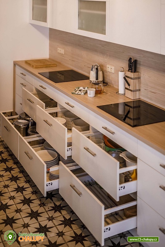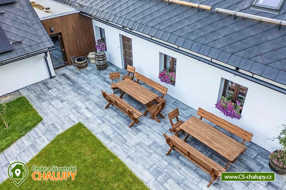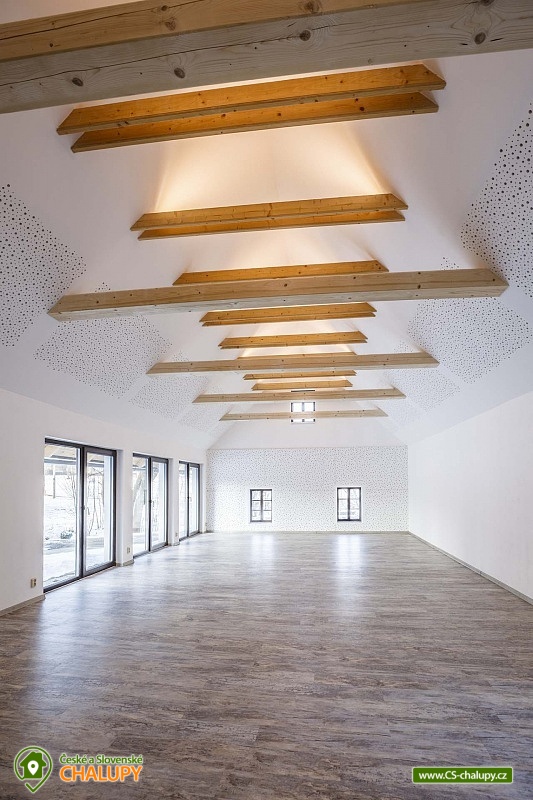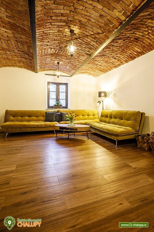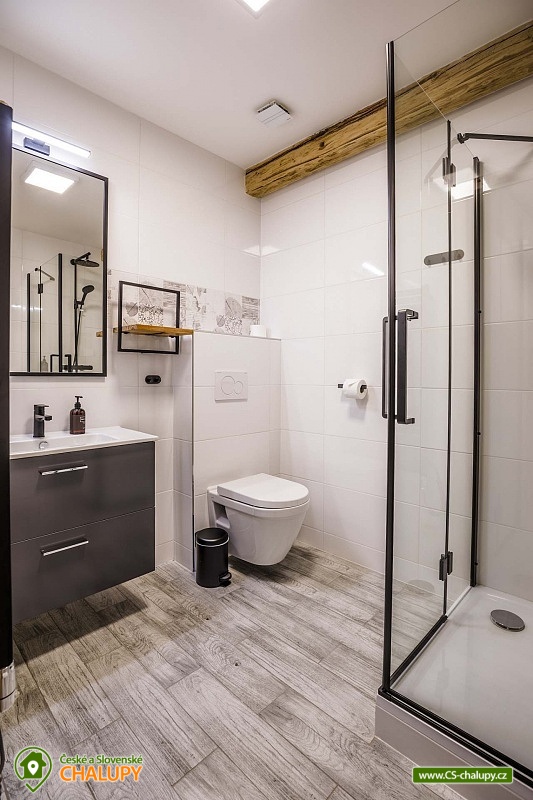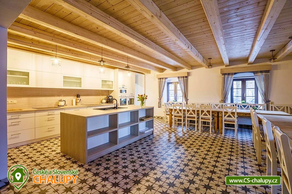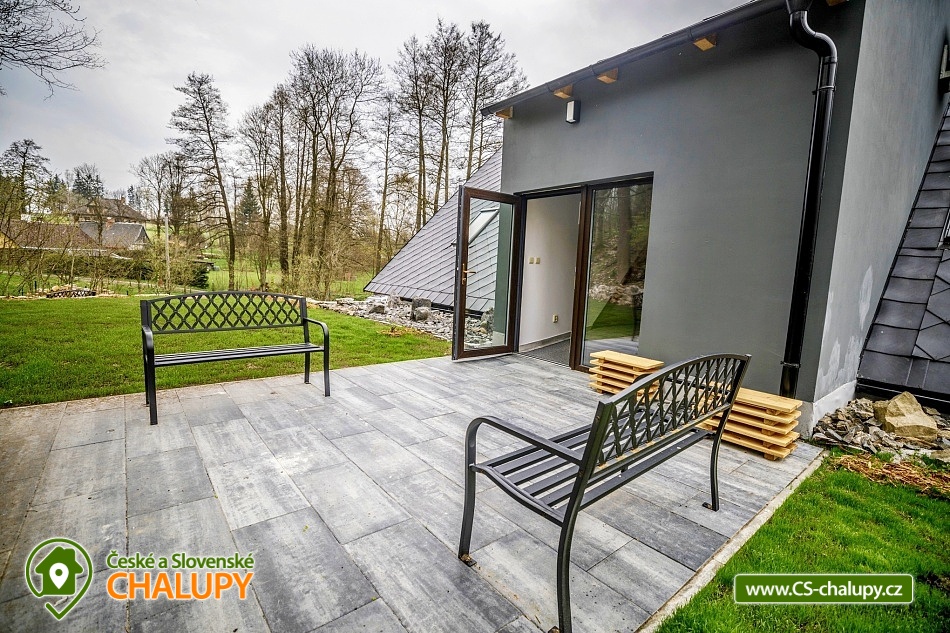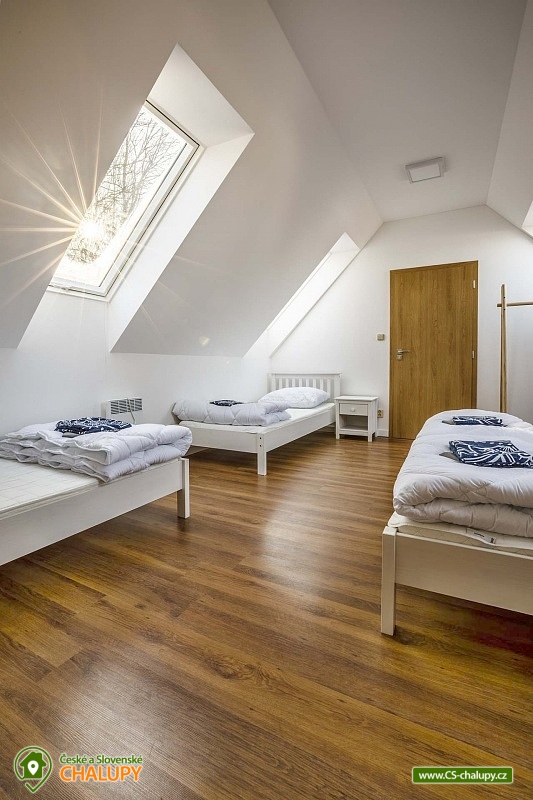The stylish Cottage near the stream is located in the village of Prostřední Lipka, near the town of Králíky, in the beautiful landscape below Králický Sněžník on the border of the Jeseníky and Orlické mountains. In close proximity you can visit the year-round Dolní Morava, Červená Voda, Říčky v Orlické Horách and Česká Petrovice sites. In this cottage from the 19th century, formerly used as a German bakery, you can now look forward to a very comfortable stay with the possibility of relaxing in the sauna or in the outdoor hot tub. The cottage near the stream offers accommodation for 28 people in 7 four-bed bedrooms. On the ground floor there is one four-bed bedroom with a double bed and two single beds and a private bathroom with a toilet and a shower. The ground floor also includes a common room with a large dining table, a kitchen, a living room with a sofa set and TV, two separate toilets, an entrance hall with shoe racks and a ski boot dryer, a gym (6x12 m) and a Finnish sauna with an adjacent terrace and a hot tub. The kitchen is fully equipped with everything needed for cooking, baking, dining and sitting for a large group of 28 people. There is a kettle, coffee machine, microwave oven, oven, hob, fridge, dishwasher and all dishes. You can also use the installed faucet with three taps and plenty of glass. By agreement and for an additional fee, beer can be provided from a large warehouse. On the second floor there are four more four-bed bedrooms, three with a double bed and two single beds and one with two double beds. Two bedrooms have their own bathroom with shower and toilet and two bedrooms have one shared bathroom, also with shower and toilet. There is one separate toilet in the corridor. On the third floor there are two more four-bed bedrooms, each with four single beds. Both bedrooms have their own bathroom with shower and toilet. WIFI internet connection is available throughout the building. Heating is provided by an electric boiler for floor heating on the ground floor. The second and third floors are heated by electric direct heaters. Air conditioning is available on the third floor and in the gym. A washing machine is available. Outside, a grassy garden extends around the cottage. The cottage has a front and back terrace with outdoor seating. It is also possible to enter the back terrace from the second floor. There is a grill and a fire pit. You can park directly at the building. In the vicinity of the building, hiking, cycling, swimming, mushroom picking, fishing, cross-country skiing and skiing are possible. There is also a riding stable nearby. Swimming options include, for example: Velké Losiny - thermal baths, Králíky swimming pool, Mezilesí pool, Hynčice pod Sušinou - Úžas pond, Jablonné nad Orlicí swimming pool, Pastviny dam, Štíty - Acrobat Park, Ruda nad Moravou swimming pool, Kunvald swimming pool, Letohrad swimming pool, aqua park Žamberk, etc. In winter, there are several top ski resorts available in the vicinity. Among the most famous are the Resort Dolní Morava with 8 groomed slopes of various levels of difficulty, with the children's ski park Amálka, with a fun track with flaps and 2 tunnels, a cross course or a course with obstacles. Nearby attractions include the Dolní Morava Cloud Trail, Hůrka Fortress, Králíky Military Museum, Pilgrimage Area Hora Matky Boží in Dolní Hedeč, Lookout Tower on Křížová hora, Suchý vrch, Nature Park Zemská brána in Klášterec nad Orlicí or Nature Reserve Králický Sněžník with spring the Morava River. We look forward to seeing you here.