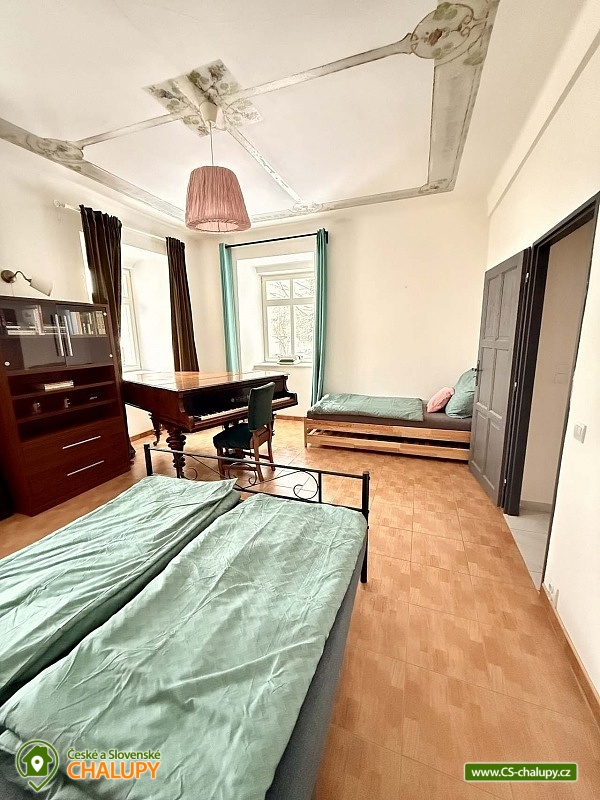 Chalupa Džbánsko se zahradou nabízí pohodlné zázemí pro víkendové pobyty, rodinné dovolené, oslavy, workshopy, svatby i rozlučky se svobodou. Chalupa s kapacitou až 16 osob v 6 ložnicích spojuje půvab historického stylu s moderním vybavením – nechybí útulné pokoje, prostorná kuchyně v italském stylu ani velký sál vhodný pro společenské akce, cvičení nebo přednášky. POPIS: Přízemí - kuchyň, obývací pokoj s rozkládacím gaučem (2 lůžka) a TV, ideální pro večerní posezení; Místnost s klavírem v historickém stylu, manželskou postelí a jedním jednolůžkem; Menší pokoj s palandou. Plně vybavená kuchyně v italském stylu s jídelním stolem, troubou, varnou deskou, myčkou, lednicí a veškerým potřebným nádobím. První patro: dvě ložnice – každá s manželskou postelí, jedna navíc s jednolůžkem. Velká společenská místnost vhodná pro oslavy, svatby, workshopy, taneční či jógové lekce. Prostor pojme až 40 osob a lze jej upravit podle potřeby (např. stoly, židle, jogamatky). Podkroví: otevřený prostor s dvěma dvojlůžky, ideální pro větší skupiny nebo rodiny s dětmi. Sociální zařízení - Koupelna s vanou a toaletou v přízemí, koupelna se sprchovým koutem a toaletou v 1. patře. Parkování u objektu. Chalupa leží v klidné krajině Džbánska. Okolí tvoří lesy a mírné kopečky, ideální pro procházky, výlety na kole, houbaření nebo sběr borůvek. Pokud máte rádi koně, v nedalekém okolí je možné domluvit projížďky nebo krátký jezdecký výcvik i pro začátečníky. V létě se můžete osvěžit na několika přírodních koupalištích v okolí – oblíbené je koupaliště u Rakovníka (asi 15 minut jízdy), dále koupaliště Krásný Dvůr (asi 20 minut) u krásného zámeckého parku nebo koupaliště v Jesenici (asi 30 minut). Pro menší děti je možné přivézt i nafukovací bazének – voda je v domě k dispozici bez omezení. Na koupání a relax se také hodí městské koupaliště v Žatci nebo přírodní areál Klůček, kde nechybí občerstvení a klidné prostředí. Dále: Zříceniny Džbán a Pravda. Za trochu delší cestu určitě stojí hrad Křivoklát, Karlštejn, Koněpruské jeskyně nebo Karlovy Vary, kde si můžete projít kolonádu a ochutnat lázeňské oplatky. V zimě můžete vyrazit na Klínovec nebo Boží Dar (asi 40 km), případně si jen užít sáňkování a běžkování na okolních loukách a lesních cestách. Těšíme se na Vás u nás.