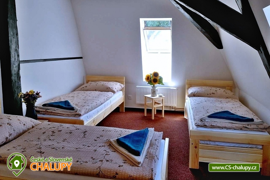Cottage after complete reconstruction - Fara Jítrava is located in the village of the same name Jítrava near Rynoltic with a location near the Ještěd Nature Park and Lužické hory PLA. Accommodation in a quiet environment in beautiful nature but close to the city of Liberec, which offers an abundance of entertainment. The cottage for rent provides accommodation for up to 25 people in 6 bedrooms. DESCRIPTION: Fully equipped modern kitchen. The kitchen units are designed so that everyone can use their kitchen unit. It includes a large dining table. ROOMS: FARÁŘO'S APARTMENT (5L+extra bed): Two-room apartment with a small kitchenette and its own bathroom. KAPLANKA (3L): Room with a single bed and a bunk bed, a sink with a mirror included in the room. ZDISLÁVKA (5L): Room with five single beds, sink with mirror included in the room. BISHOP'S ROOM (4L): Room with two bunk beds, sink with mirror included in the room. PANKRÁC (3L): Family room with three single beds and its own bathroom. BONIFÁC (5L): Family room with three single beds and one bunk bed with its own bathroom. FRANTIŠEK AND KLÁRA: These are modified spaces in the attic, which are furnished in the style of these two names. Saint Francis and Saint Clare, who lived a life of absolute poverty. And so here, instead of overpaid scattered luxury, you will find austerity balanced by cosiness. These are two separate multifunctional rooms that are used for rest, relaxation, afternoon siesta, games for children or as a reading room or meditation room. There is also a large HALL available - a central common room and communal dining - the capacity of the hall is up to 40 people. Sanitary facilities: Common sanitary facilities on the ground floor: 1 x WC for men, 1 x WC for women. Common sanitary facilities on the floor: 1 x toilet for men, 1 x shower for men, 1 x toilet for women, 1 x shower for women. Free parking above the building - 6 parking spaces. Surroundings: The unique location on the border of the Lusatian and Jizera Mountains offers a number of destinations. Tourist routes - on foot to the Ještěd ridge or the Vraní skaly and the famous Elephant Stones. Another range of options is offered by nearby Liberec (e.g. IQ landia, Aquapark babylon, ZOO, Ještěd, etc.). Other destinations are, for example, the Lindava glassworks, the forest theater (Sloup v Čechá), Ralsko, Kryštofovo údolí. Swimming: the Kristýna and Hamr na Jezeře areas (refreshments, attractions, rope parks and several kilometers of groomed trails for in-line skates). We look forward to seeing you here.