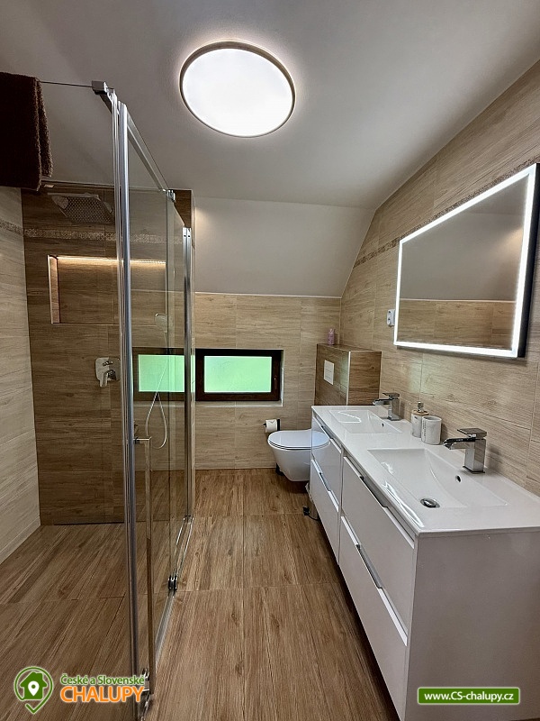 Chalupa u lokality Terasy Ještědu se nachází jižně od vrcholu Ještědu v Ještědsko-kozákovském hřbetu, osada Jiříčkov, obec Světlá pod Ještědem, okres Liberec. Okolí nabízí areál Ještěd s lanovkou, nádherné golfové hřiště, množství turistických a cyklistických tras a celkově klidnou, kouzelnou přírodu. Je to ideální místo pro rodiny, partu přátel i všechny, kteří chtějí spojit odpočinek s aktivním pobytem. Chalupa k pronájmu nabízí kapacitu až 12 osob ve 4 ložnicích. Chalupa má 4 prostorné ložnice, velký obývací pokoj propojený s jídelnou, plně vybavenou kuchyni a hernu plnou zábavy. K dispozici je koupelna s velkým sprchovým koutem, wc a pračkou, a také samostatné WC. Povlečení i ručníky jsou připravené, stejně jako TV a přehrávače. K chalupě patří velká terasa, kryté venkovní sezení a gril. Pro hosty je připravené i nasekané dříví do krbu. Uvnitř najdete mnoho knížek, dětské hračky, herní stůl, šipky a také dětskou cestovní postýlku. Chalupa je tak vybavena pro pohodlný pobyt v každém ročním období. V okolí můžete lyžovat, jezdit na kole, chodit na procházky, hrát golf nebo jen tak objevovat krásná místa Ještědského hřbetu. Po celém dni vám pak chalupa poskytne teplo, klid a příjemné zázemí pro společně strávené chvíle. VÝLETY: nepřeberné možnosti výletů do krásného okolí Jizerských hor, do Lázní Libverdy, na zámky Sychrov a Frýdlant. Liberec např. nejstarší ZOO v ČR, která byla založena již v roce 1904, botanickou zahradu, plavecký areál atd. Ještědský hřeben nabízí mnoho cyklotras a cílů pěších výletů s krásnými výhledy do kraje. Z Ještědu je to kousek do Českého Ráje cca 15 km, vodní nádrž Hamr na Jezeře a Máchovo jezero. ZIMNÍ AKTIVITY: několik lyžařských skiareálů například Ještěd, Světlá pod Ještědem, Dolní Pláně, Obří sud – Javorník, Vesec, Buřín – Hodkovice nad Mohelkou, sjezdové tratě pro začátečníky i zkušené lyžaře, je zde několik lyžařských vleků a visutá lanová dráha. Těšíme se na Vás u nás.