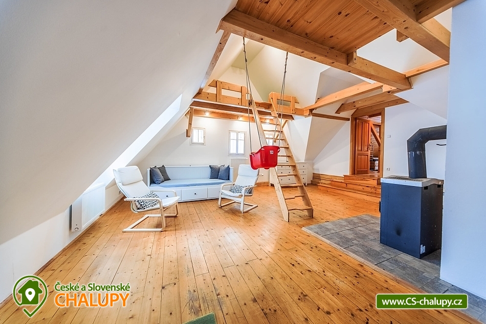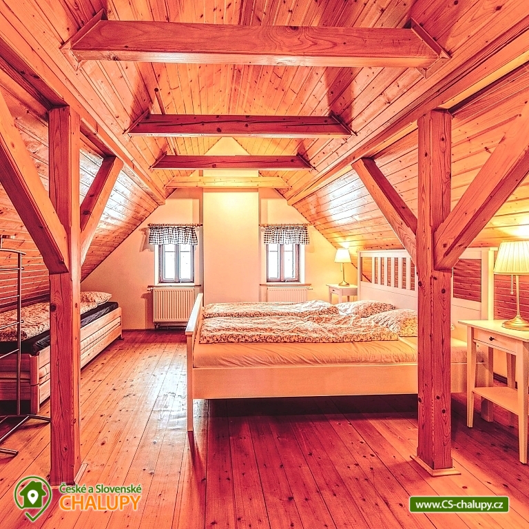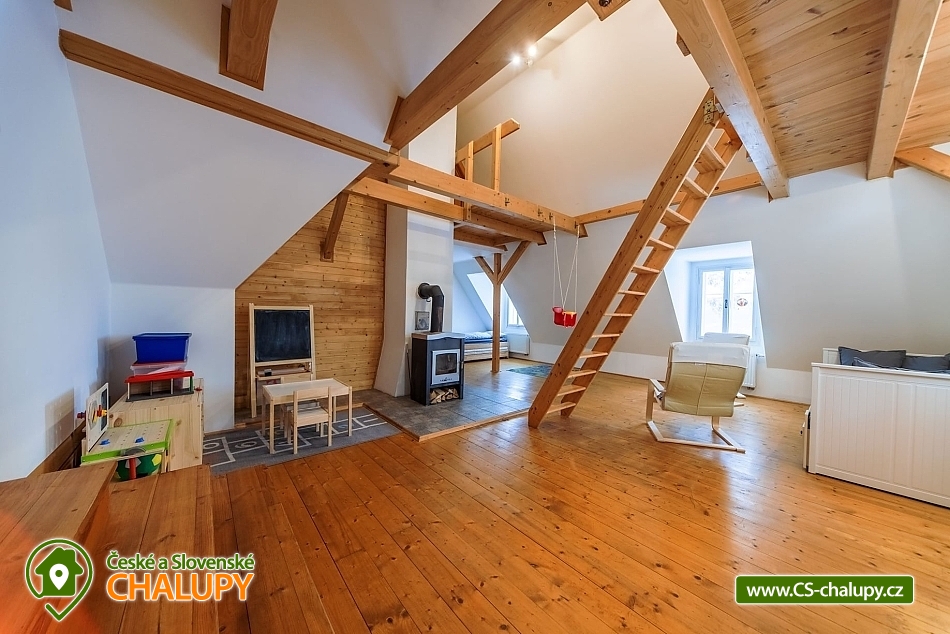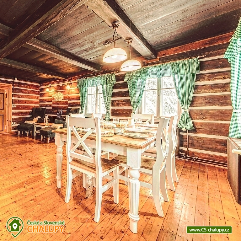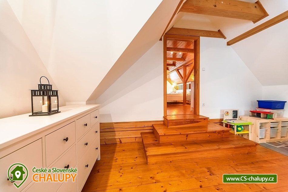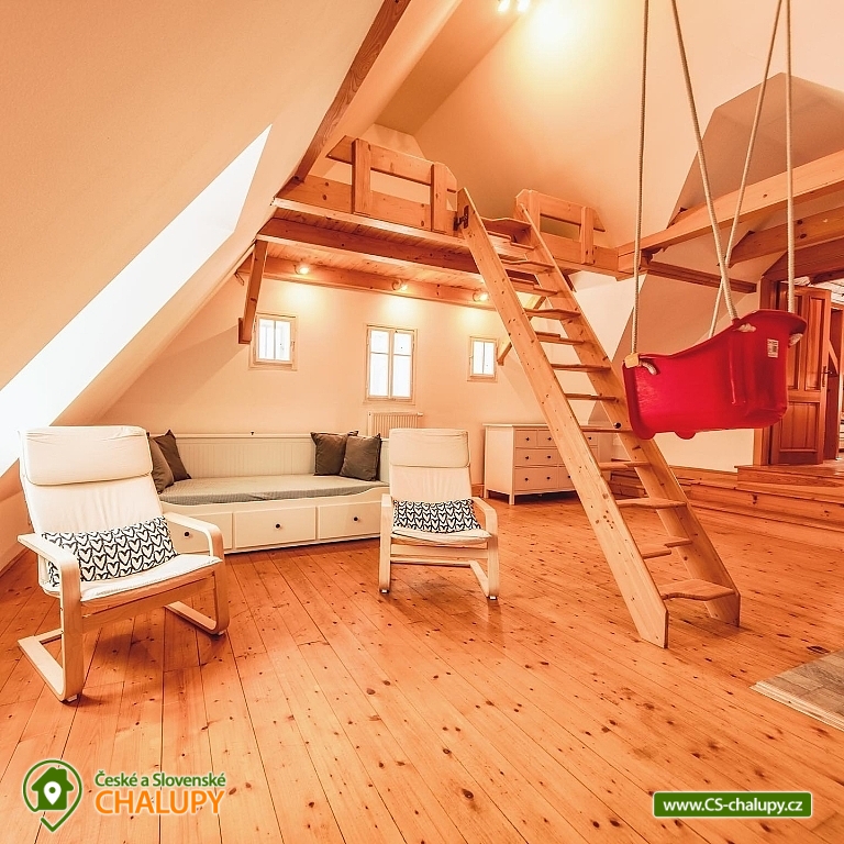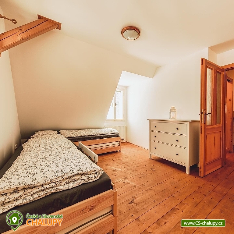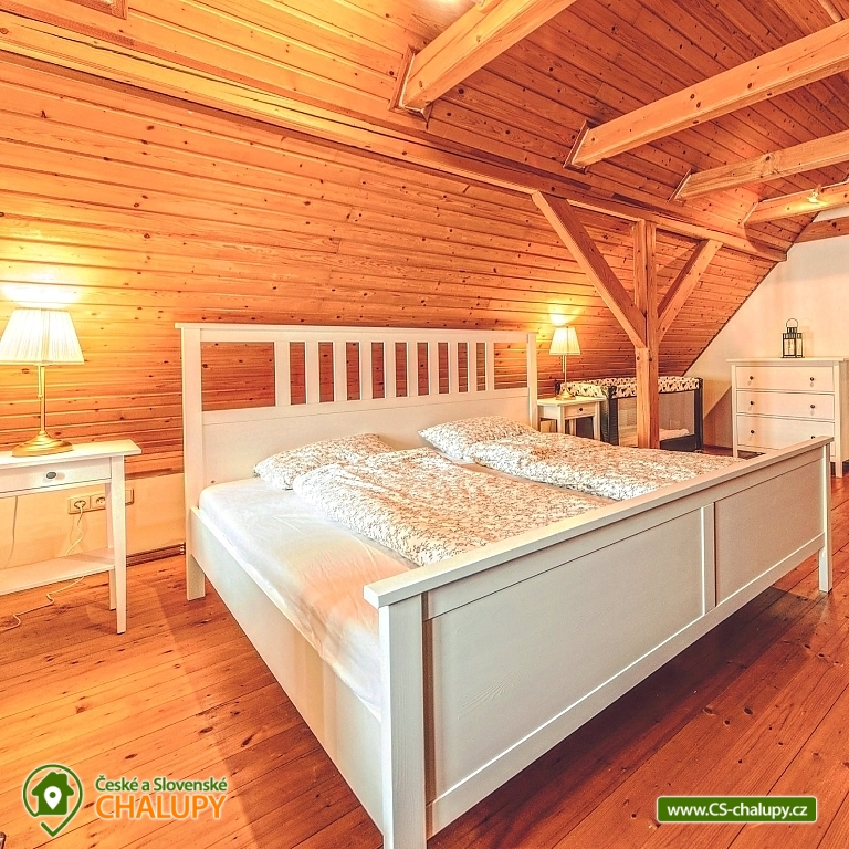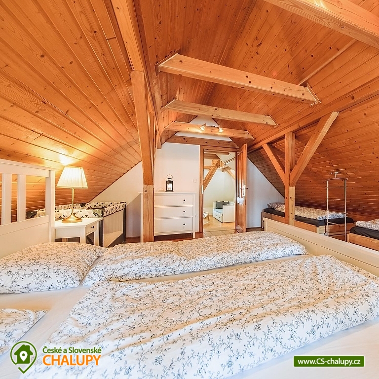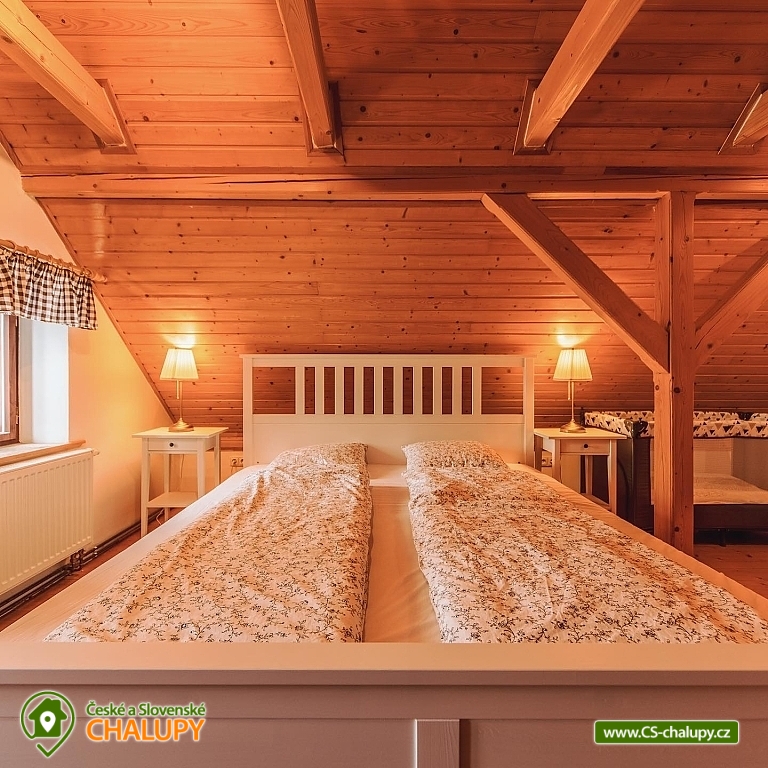 The best thing about vacationing in Roubenek Knoflík is that you can completely forget what time it is and not worry about anything at all. Sleep late, have a late breakfast, go to the forest for mushrooms and blueberries, just loiter, sunbathe in the garden, go to the water to cool off or explore the beauty of Lake Jizera. SŠVETNICE - The heart of the svetnice is a green tiled stove, a haven for children's games and adults' rest. There is nothing like the warm feeling of lying on them and resting. Once you climb them, you won't want to come down. Unless something smells from the kitchen... In addition to the period stove, the fully equipped kitchen also includes an electric stove, fridge with freezer, dishwasher, Nespresso coffee machine, and a washing machine, dryer and hair dryer in the bathroom. In addition to the fully functional tiled stove in the living room, there is also modern central heating in every room. I don't miss WiFi either. BEDROOM - accommodation for up to 16 people in 3 bedrooms. On the upper floor you will find 2 large double beds, 8 stackable single beds, a fold-out daybed and 2 more places in the mezzanine. There is also 1 baby cot. BATHROOMS - on each floor you will find a bathroom with bath/shower and toilet. Parents don't have to worry about their little ones. Do not look for any main roads near the cottage. The semi-seclusion guarantees you peace and privacy. For children, there is a children's corner with toys, trains, painting supplies and several other small things. Use your time in the cabin to explore the near and far surroundings and enjoy the nature of the Jizera Mountains. We have prepared several tips for trips that you can use to inspire you. In the summer, you can go on walks and hikes, bike rides, go swimming, play golf or take the children to entertainment areas. In winter, you will appreciate the proximity of several ski areas, the Jizerské magistrály and many other nice corners of the Jizerské mountains. In case of worse weather or as a rest day between skiing, tips on museums or other year-round indoor entertainment options for adults and children will definitely come in handy. Everything is within driving distance. In addition, we have also added some tips for great restaurants. And if you would like to give your body a good rest with massages, you don't have to go anywhere. Our masseuse Daniela will come directly to the log house for you. We look forward to seeing you here.