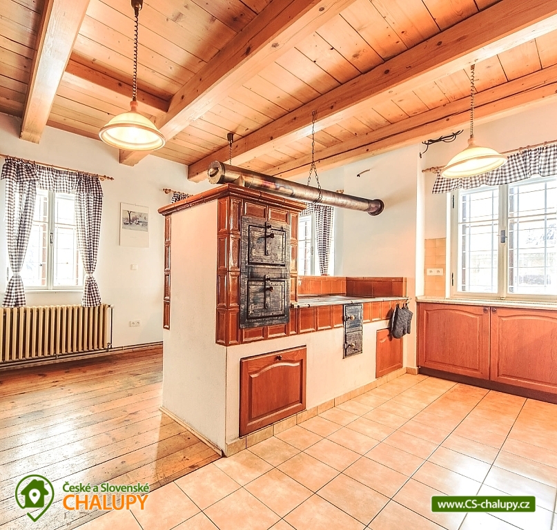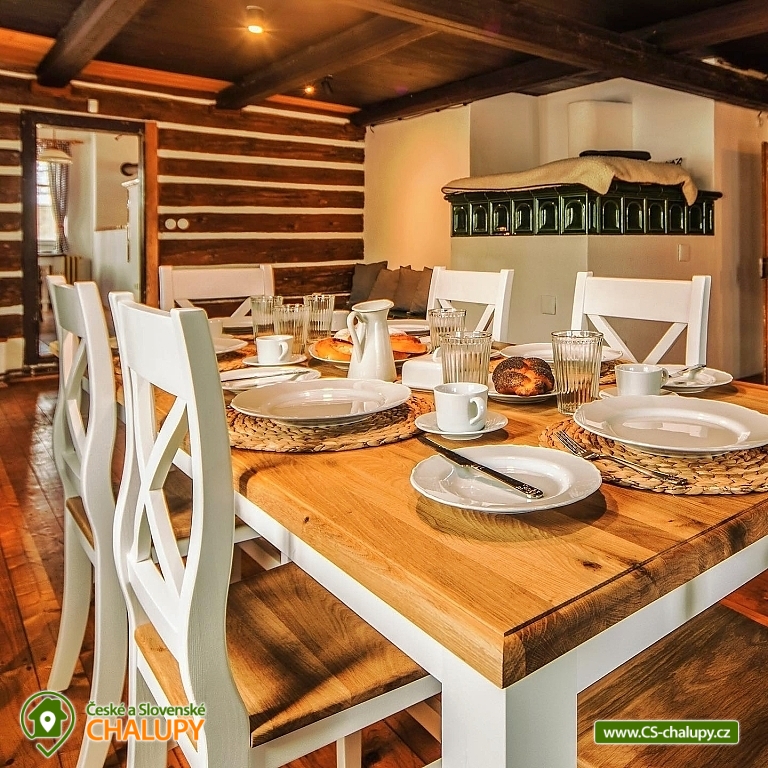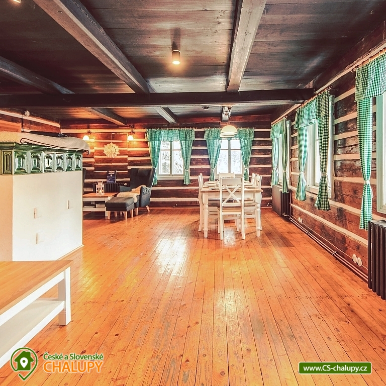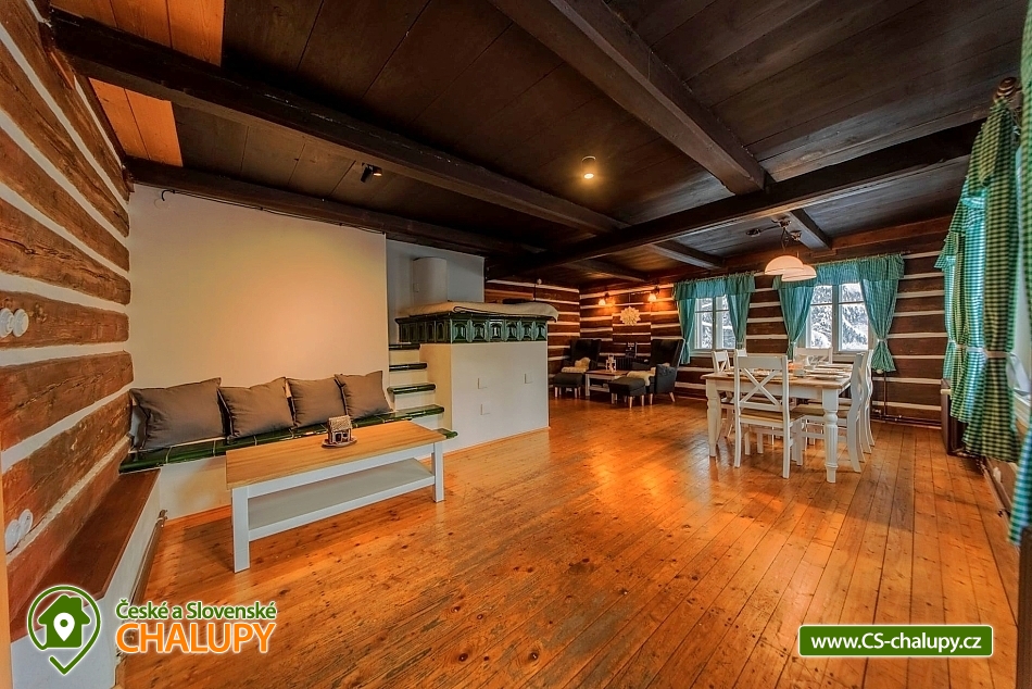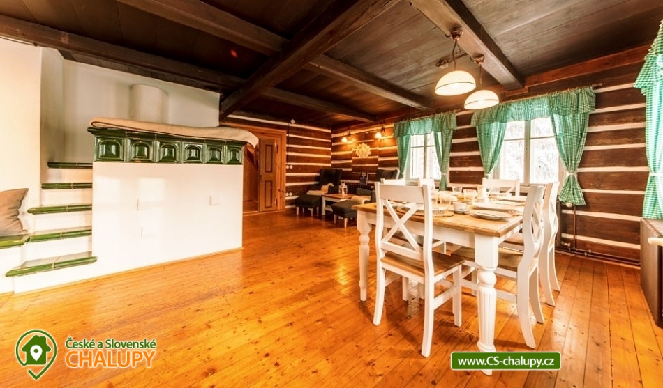 „Roubenka Knoflík - tiled stove with lying - Jizerské hory.“