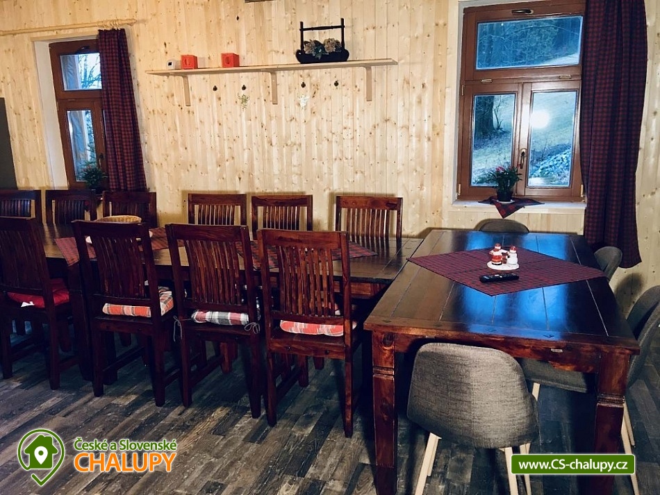 Vítejte v Jizerských horách! Chalupa je situována v klidném prostředí nad obcí mimo silnice na konci cesty na louce u lesa. Do dnešní doby si zachovala původní romantický ráz a díky rekonstrukci nabízí pohodlné místo pro relaxaci a odpočinek. Ve svém interiéru nabízí 20 lůžek v 5 ložnicích, jídelnu s vybavenou kuchyní s lednicí, sporákem, myčkou na nádobí, mikrovlnkou, varnou konvicí, topinkovačem a vším potřebným vybavením. Posedět můžete u krbu či ve společenské místnosti, kde naleznete také dětský koutek. WiFi v celé chalupě. Po náročném dni můžete své tělo zrelaxovat ve finské sauně. Využívat můžete též velkou zahradu s dětským hřištěm s houpačkami, klouzačkou, horolezeckou stěnou, trampolínou, pískovištěm a dřevěným domečkem či rovnou travnatou plochu s brankami na fotbal. Pro společné chvíle s přáteli slouží posezení ve stínu smrku, ohniště s lavičkami nebo terasa s grilem a výhledy na hory a okolní louky. Cyklisté mohou vyrazit na kole přímo od chalupy, na značené cyklotrasy vedoucí po hřebenech Jizerských hor se napojíte po 1km. Cyklistické stezky jsou v Jizerských horách perfektně udržovány, vedou po zpevněných lesních cestách a dostanete se po nich na krásná turistická místa, k potůčkům a přehradám na koupání. Svá kola můžete uschovat v garáži. V létě se můžete osvěžit ve venkovním bazénu se slanou vodou. Pokud plánujete pobyt v zimě, chalupa svojí polohou nabízí vše, co od zimy očekáváte. Leží na strategickém místě přímo u sjezdovky Bukovka, na louce vhodné na bobování, 500m od nástupu na Jizerskou magistrálu. Před domem tak můžete nazout lyže a sjet rovnou k vleku, vybrat si můžete kotvu nebo pomu. Kdo dává přednost běžkám, jistě ocení Jizerskou magistrálu (nástup je 500m nad domem), která vede přes chráněnou krajinnou oblast přes krásné lesy a přehrady. A kdo má rád sáňkování, může zůstat na dlouhém svahu u chaty, kde je všude jen bílý sníh a žádná posypaná cesta. Pro Váš komfort je v pokojích instalováno elektrické podlahové vytápění a v lyžárně vysoušeč obuvi. Pro váš klid není v chalupě přítomen majitel, ani jiné osoby, chalupa je pouze pro vás. Parkování v létě možné přímo u chaty, v zimě 130m od ní na soukromém parkovišti. Domácí mazlíčci jsou vítáni. Těšíme se na Vaši návštěvu!