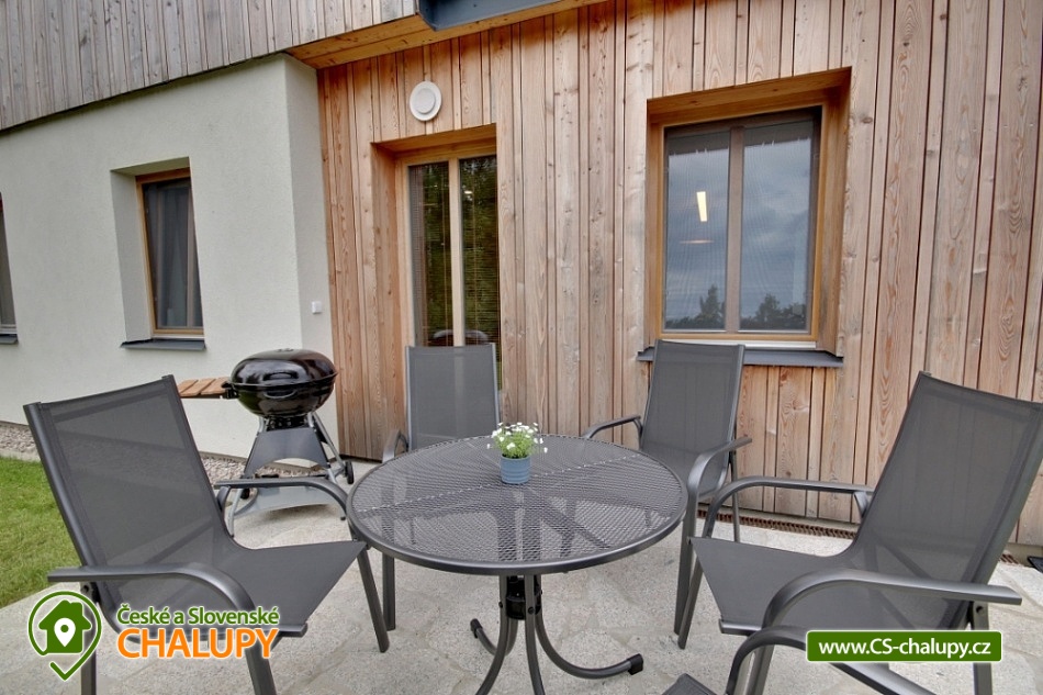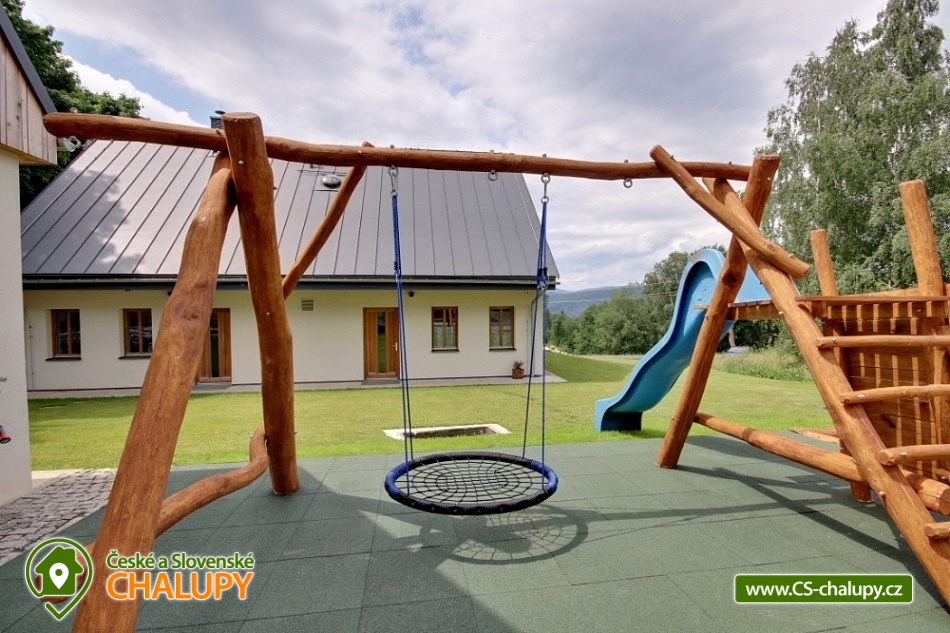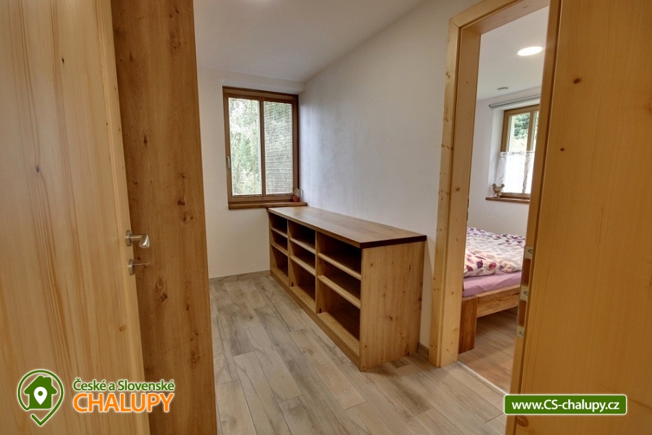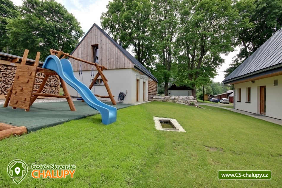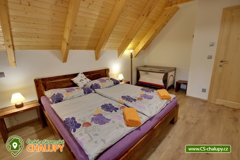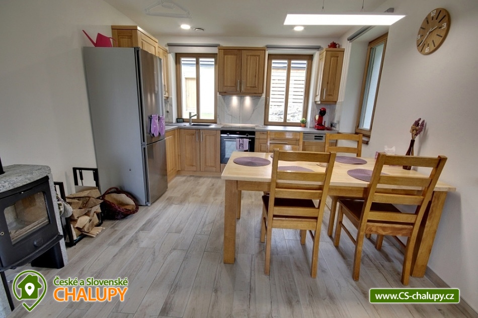 Chalupa v CHKO Jizerské hory - Vyhlídková cesta u obce Kořenov a Příchovice na místě, kde stála původní stará chalupa z filmu Obsluhoval jsem anglického krále. Jedná se o zděnou novostavbu v nadmořské výšce cca 700 m na krásném klidném místě. Uvnitř chalupy jsou dva nadstandardně vybavené apartmány, jeden o kapacitě 4 + 1 osoby a druhý o kapacitě 8+1 osob. V menším apartmánu č.1 je obývák s krbovými kamny, výstupem na terasu a plně vybavenou kuchyní (myčka, elektrická trouba, mikrovlnná trouba, varná deska, rychlovarná konvice, lednice s mrazákem, kávovar, topinkovač...), koupelna se sprchovým koutem a samostatná toaleta. V patře dva prostorné dvoulůžkové pokoje, šatna a toaleta. Ve větším apartmánu č.2 je v přízemí prostorný obývací pokoj s krbem, jídelním koutem a opět plně vybavenou kuchyní , koupelna, samostatná toaleta, šatna a jeden dvoulůžkový pokoj. Z obývacího pokoje jsou přístupné dvě terasy s možností grilování /mimo zimní období/. V patře se nachází čtyřlůžkový pokoj a dvoulůžkový, s možností kvalitní přistýlky a koupelna s toaletou. Každý apartmán má svůj vlastní vchod a jsou plně oddělený. V případě pronájmu celé chalupy lze apartmány propojit jinak uzamčenými dvojitými dveřmi. Je zde příjemné venkovní posezení na terase s možností grilování (mimo zimní období). Ohniště pro milovníky opékání špekáčků se nachází na zahradě. V letních měsících je možnost přespat v Téépéé, které má dřevěnou podlážku. V celém objektu využijete Wifi připojení (omezené) , televize je vždy v obývacích pokojích. Objekt lze vytápět elektrickými přímotopy nebo krbovými kamny. U domu je parkovací stání pro několik aut. Pro bezpečné uložení kol, lyží, kočárků atd. je uzamykatelná místnost. Kolem chalupy je prostorný udržovaný trávník a okrasné jezírko se skalkou. Chalupa se nachází na polosamotě u lesa, kde si odpočinete od ruchu města pod korunami stromů, za zpěvu ptáků, šumění vody u jezírka a lze pozorovat hvězdnou oblohu nezkreslenou světly měst. Okolí Vám dává možnost výběru různých sportovních aktivit, ať už se jedná o turistiku, jízdu na kole (jsou zde i bikeparky), běžecké lyžování (blízký nástup na Jizerskou magistrálu) a sjezdové lyžování za "rohem" (Příchovice U Čápa, Tanvaldský Špičák, Harrachov). Pokud milujete klid, přírodu, pohodu u jezírka, turistiku, kolo, běžecké lyžování a sjezdovky, jste na správném místě!!!! Těšíme se na Vás u nás.