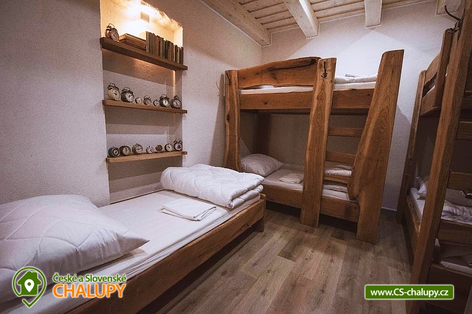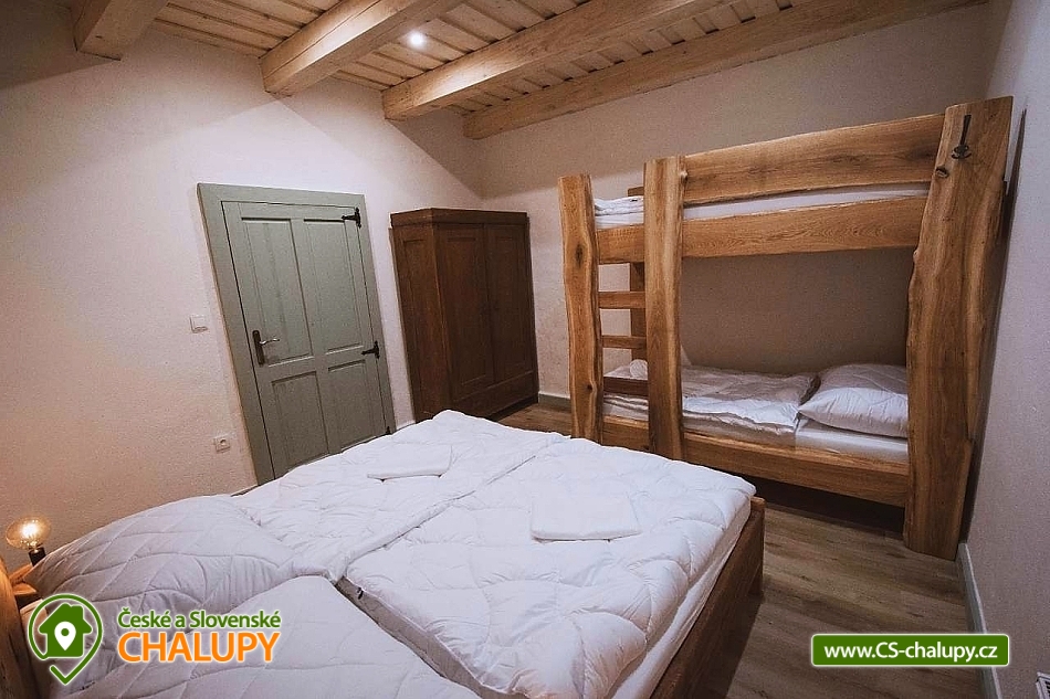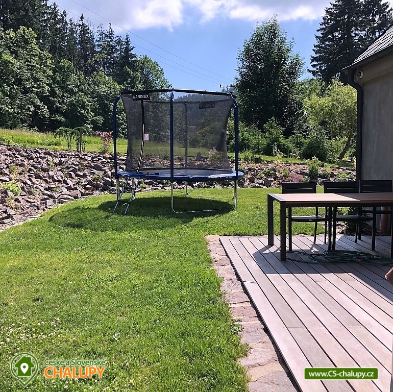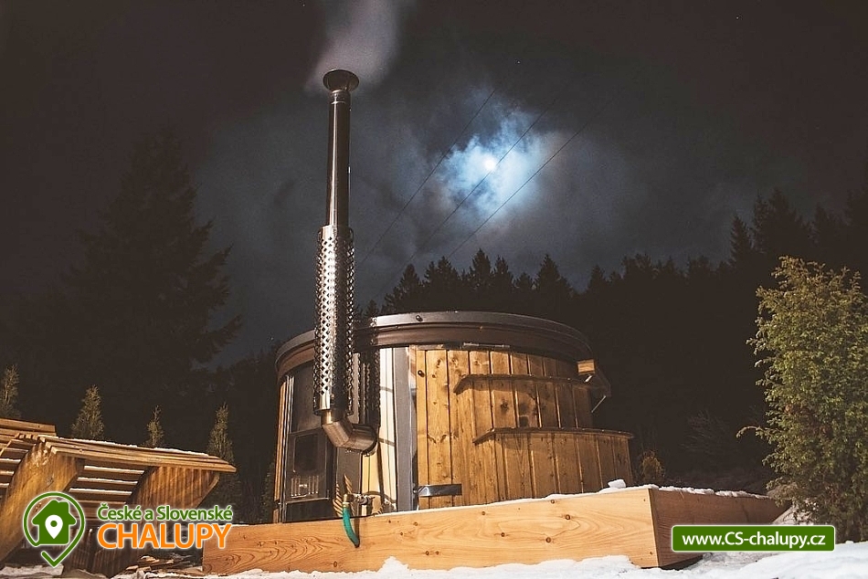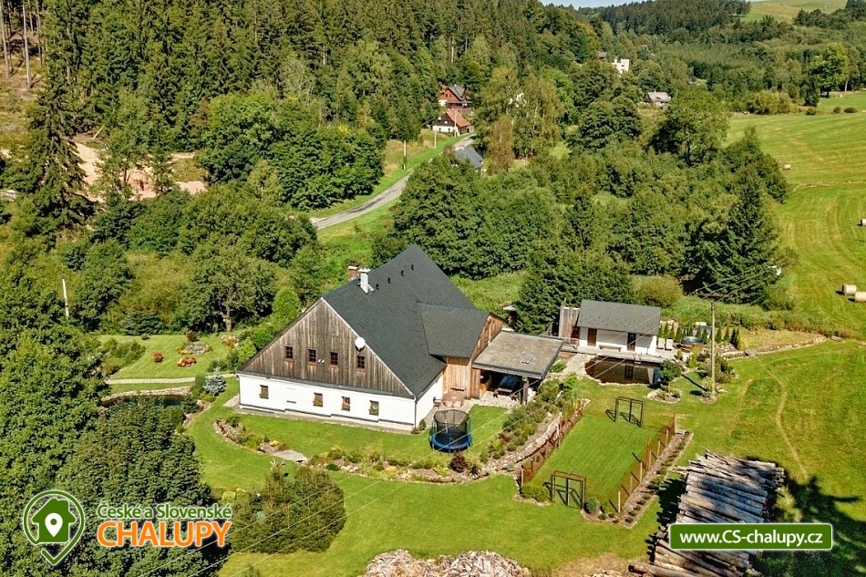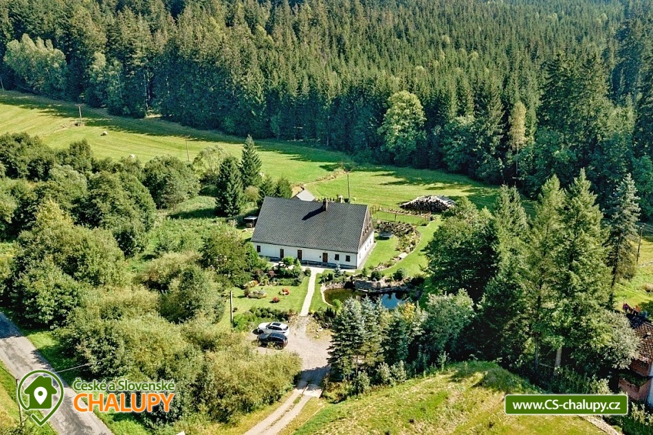 Chalupa Králický Sněžník s wellness a koupacím jezírkem se nachází na pomezí Orlických hor a Jeseníků v srdci přírody Králického Sněžníku. Chalupa k pronájmu poskytuje ubytování pro až 15 osob ve 4 ložnicích. Dominantou chalupy je krásná zastřešená venkovní terasa s posezením, keramickým grilem, venkovním ohništěm s výhledem přímo do lesů a přírody. Součástí objektu jsou dvě koupací neoplocená jezírka, luxusní finská sauna s relaxační místností, vířivkou Whirlpool a vytápěným koupacím sudem. POPIS: Ložnice 1: manželská postel 1x, Ložnice 2: manželská postel 1x (možnost dětské postýlky), Ložnice 3: manželská postel 1x + 1x patrová postel (možnost dětské postýlky), Ložnice 4: samostatná postel 1x + 2x patrová postel. Společenská místnost je vybavena prostornou sedačkou, dominantním jídelním koutem, plně vybavenou kuchyní, vnitřním krbem, kulečníkem, stolním fotbalem, šipkami. Kuchyně je plně vybavená s elektrickou troubou, rychlovarnou konvicí, lednicí, mrazákem, kávovarem, myčkou a mikrovlnnou troubou. Venkovní terasa nabízí zastřešené posezení, keramický gril, venkovní ohniště. K dispozici je finská sauna, relaxační místnost, koupací jezírka, vířivka Whirlpool, vyhřívaný koupací sud a Wifi připojení. Pro děti nabízíme dětské hřiště se skluzavkou, houpačkami, pískoviště, trampolínu a hřiště pro společenské hry. Sociální zařízení: Koupelna se sprchovým koutem, 2x WC. Vytápění: Tuhá paliva a elektrický centrální kotel, v objektu je velký krb ve společenské místnosti. Parkování u chalupy. Okolí - Léto: Nádherná okolní příroda, les u chalupy. Spousta zábavného vyžití v dojezdu pár km, atrakce na Dolní Moravě: Sky bridge 721 - nejdelší visutý most v Evropě, Stezka v oblacích, Mamutí bobová dráha, Menší bobová dráha, Adrenalinová věž + lezecký park, Dětské zážitkové zábavní parky, Stamichmanova štola - interaktivní hra v prostorách jeskyně, Tubbing dráhy a Cyklotraily. Zima: Bobování u chalupy nebo na velkém protějším kopci, lyže - Ski Bukovka/Čenkovice, Horský resort Dolní Morava, Ski Šanov. Běžky: spoustu tras, jedna přímo pár metrů nad chalupou v lese. Výlety: Klášter, Suchák, Bukovka, Dolní Morava, Hraběcí. U nás se prostě nudit nestihnete :-) Těšíme se na Vás u nás.