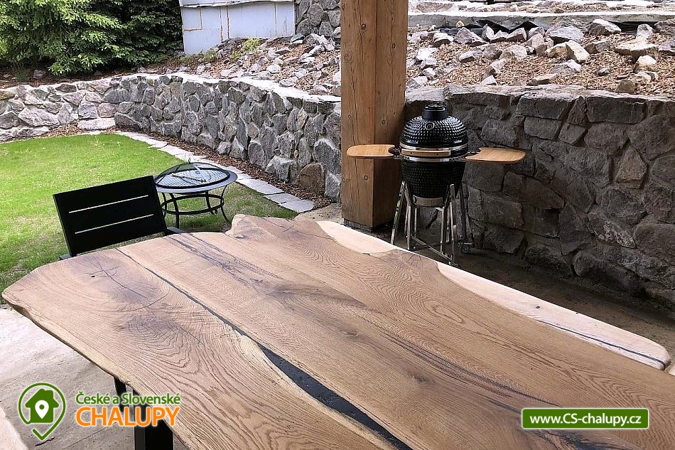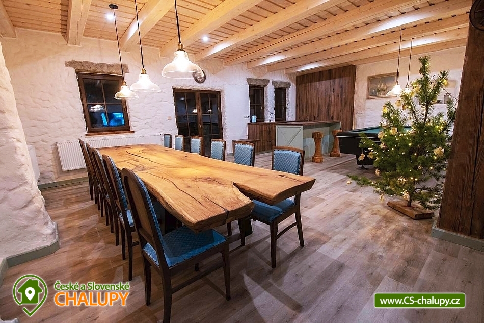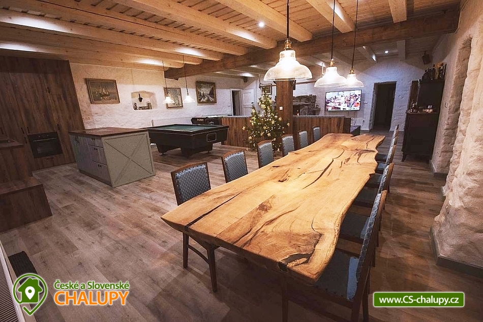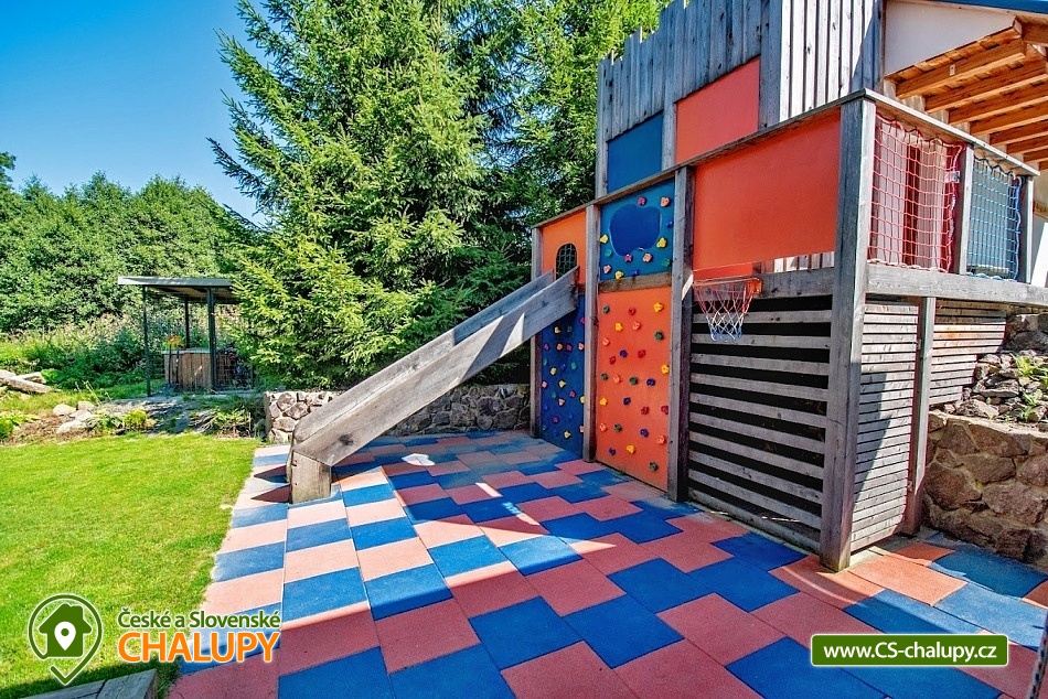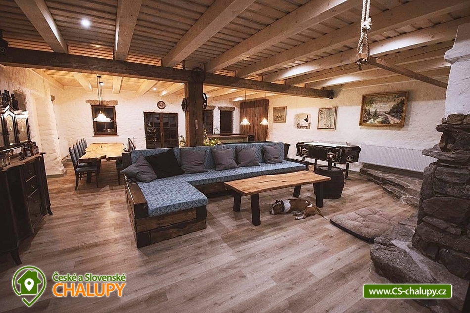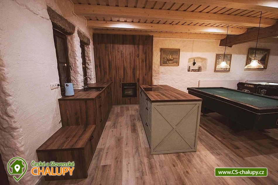 Chalupa Králický Sněžník s wellness a koupacím jezírkem se nachází na pomezí Orlických hor a Jeseníků v srdci přírody Králického Sněžníku. Chalupa k pronájmu poskytuje ubytování pro až 15 osob ve 4 ložnicích. Dominantou chalupy je krásná zastřešená venkovní terasa s posezením, keramickým grilem, venkovním ohništěm s výhledem přímo do lesů a přírody. Součástí objektu jsou dvě koupací neoplocená jezírka, luxusní finská sauna s relaxační místností, vířivkou Whirlpool a vytápěným koupacím sudem. POPIS: Ložnice 1: manželská postel 1x, Ložnice 2: manželská postel 1x (možnost dětské postýlky), Ložnice 3: manželská postel 1x + 1x patrová postel (možnost dětské postýlky), Ložnice 4: samostatná postel 1x + 2x patrová postel. Společenská místnost je vybavena prostornou sedačkou, dominantním jídelním koutem, plně vybavenou kuchyní, vnitřním krbem, kulečníkem, stolním fotbalem, šipkami. Kuchyně je plně vybavená s elektrickou troubou, rychlovarnou konvicí, lednicí, mrazákem, kávovarem, myčkou a mikrovlnnou troubou. Venkovní terasa nabízí zastřešené posezení, keramický gril, venkovní ohniště. K dispozici je finská sauna, relaxační místnost, koupací jezírka, vířivka Whirlpool, vyhřívaný koupací sud a Wifi připojení. Pro děti nabízíme dětské hřiště se skluzavkou, houpačkami, pískoviště, trampolínu a hřiště pro společenské hry. Sociální zařízení: Koupelna se sprchovým koutem, 2x WC. Vytápění: Tuhá paliva a elektrický centrální kotel, v objektu je velký krb ve společenské místnosti. Parkování u chalupy. Okolí - Léto: Nádherná okolní příroda, les u chalupy. Spousta zábavného vyžití v dojezdu pár km, atrakce na Dolní Moravě: Sky bridge 721 - nejdelší visutý most v Evropě, Stezka v oblacích, Mamutí bobová dráha, Menší bobová dráha, Adrenalinová věž + lezecký park, Dětské zážitkové zábavní parky, Stamichmanova štola - interaktivní hra v prostorách jeskyně, Tubbing dráhy a Cyklotraily. Zima: Bobování u chalupy nebo na velkém protějším kopci, lyže - Ski Bukovka/Čenkovice, Horský resort Dolní Morava, Ski Šanov. Běžky: spoustu tras, jedna přímo pár metrů nad chalupou v lese. Výlety: Klášter, Suchák, Bukovka, Dolní Morava, Hraběcí. U nás se prostě nudit nestihnete :-) Těšíme se na Vás u nás.
